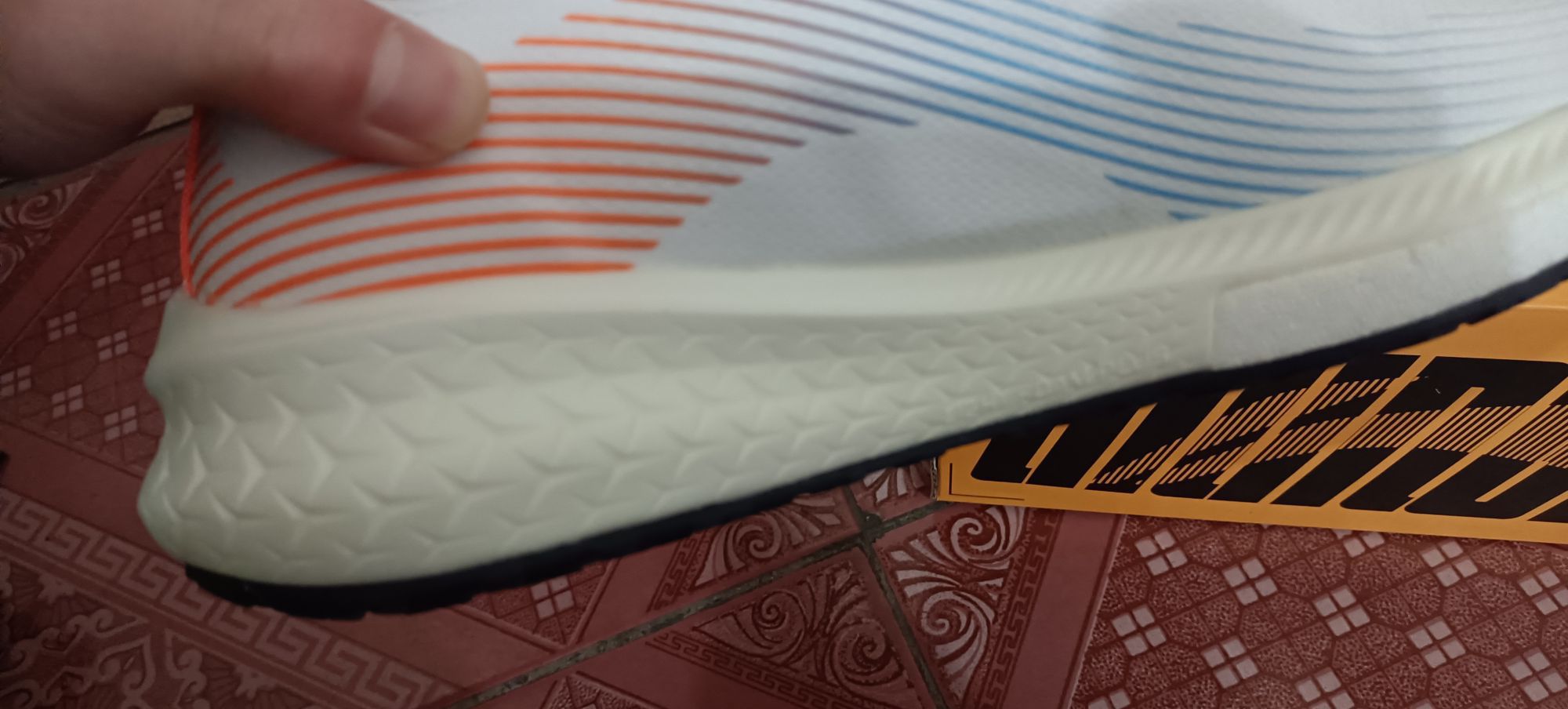 赤兔5pro与之前的赤兔4相比,赤兔5pro有了䨻的加持,接近前掌2/3大小的䨻对于前掌跑法的朋友来说是个很好消息 ★中底用到的LIGHTFOAM PLUS材质踩上去会比之前的LIGHTFOAM更有韧性,后掌跑法的朋友可能需要适应一下,鞋面的WATERSHELL PLUS科技除了防水功能外,还有防虹吸的作用,当然同样的也会牺牲一部分透气性。 ★外底的TUFF RB橡胶也是李宁当家的耐磨科技,在别的...
