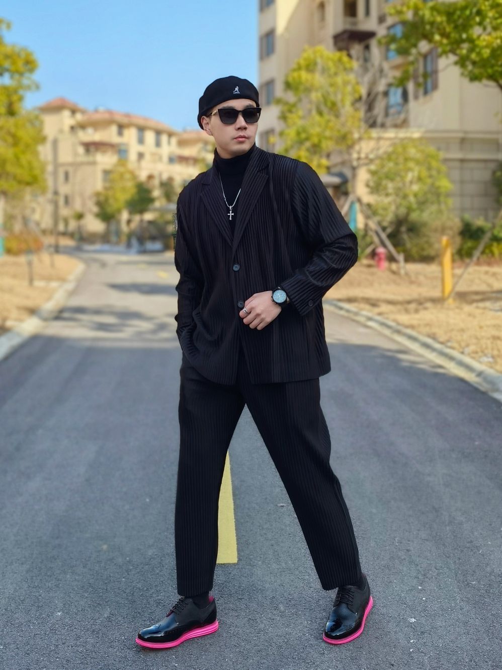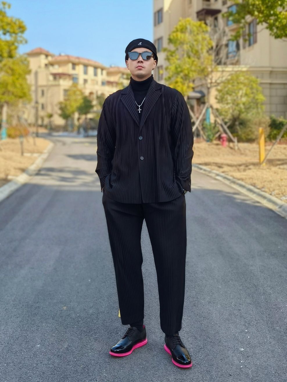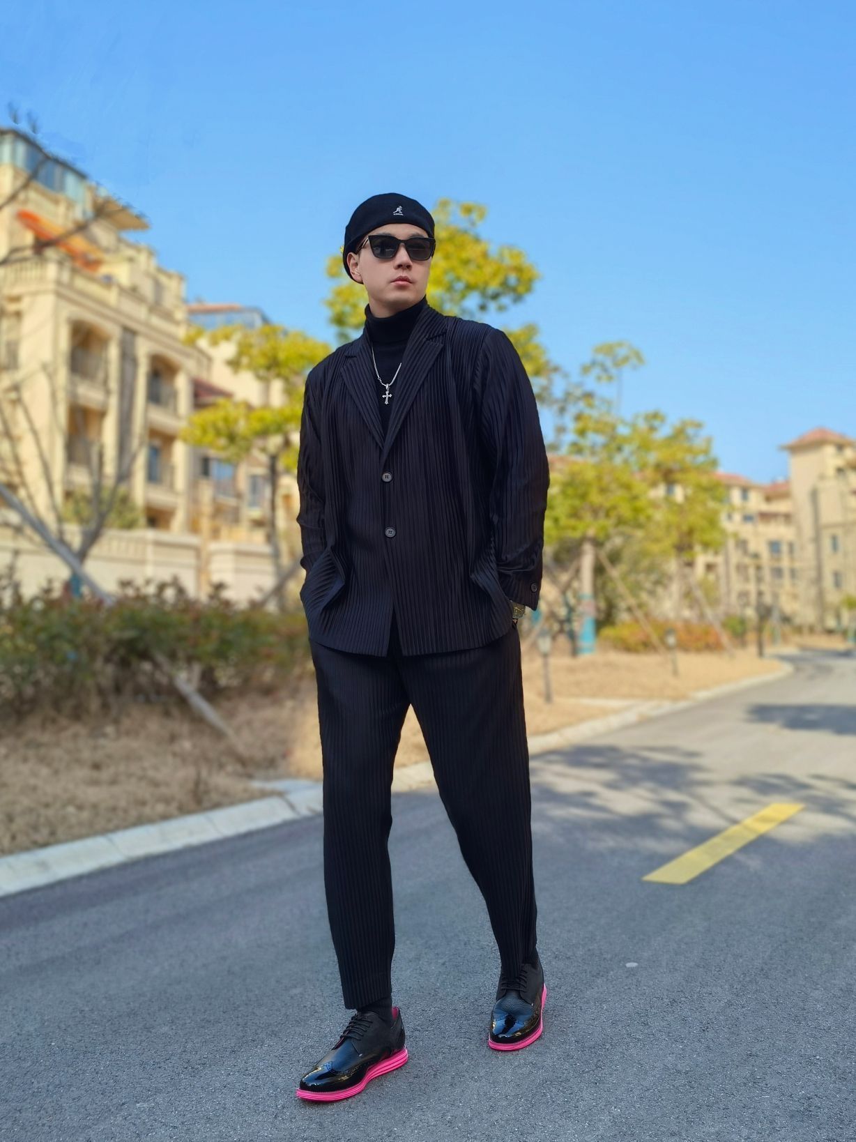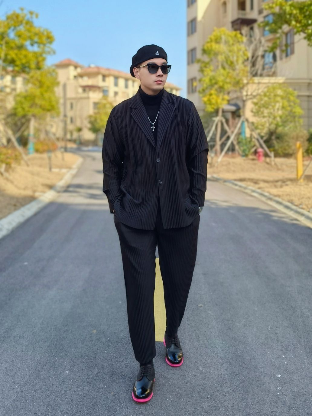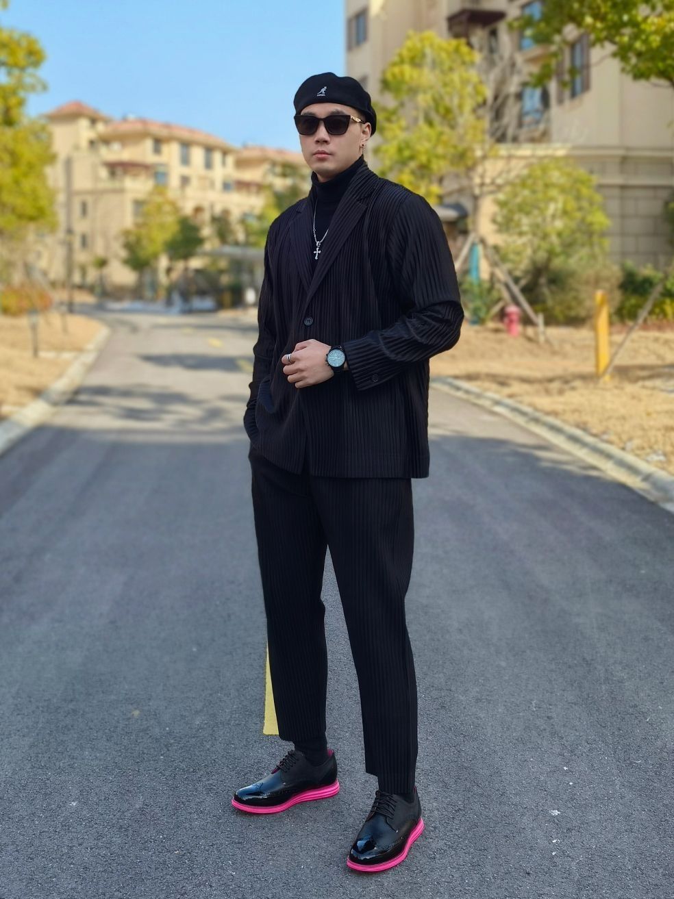 hello 大家好,这里是撒旦锅锅 💗179cm/80kg 🌞拜年当然要展现自己成熟自信的一面,不要再让家里人觉得是小孩子啦!所以今日穿搭为拜年轻熟男风格 搭配类型:西服+高领毛衣+西服裤+皮鞋 黑色西服搭配黑色高领毛衣,下身再搭配黑色西服裤,和上身做一个呼应。 鞋子是男人的面子,尤其是拜年的时候,一定要狠心给自己来双好鞋!所以我千辛万苦托人抢到了周杰伦同款的黑粉色雕花皮鞋,高级的ALL BL...