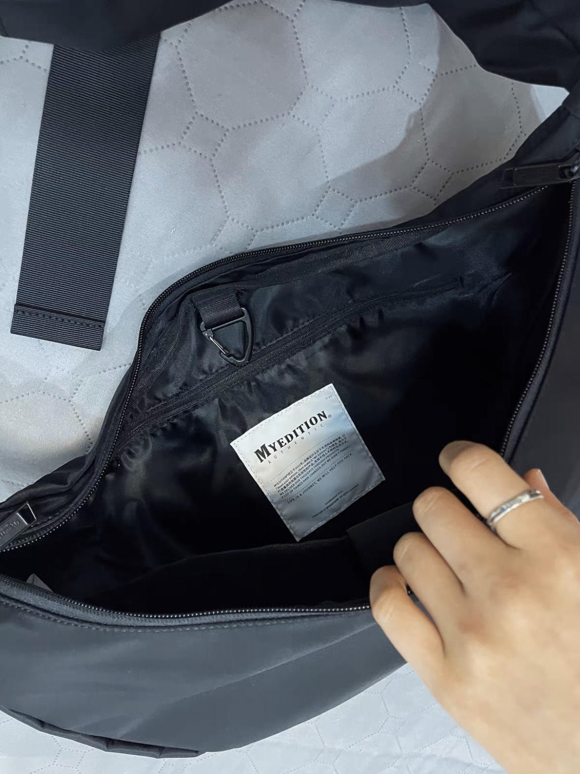 本篇笔记关联了MYEDITION 大号 日系饺子包单肩大容量健身工装街头尼龙邮差包 黑色 M20917-22-BLK等商品,为用户提供真实的使用体验和购买参考。