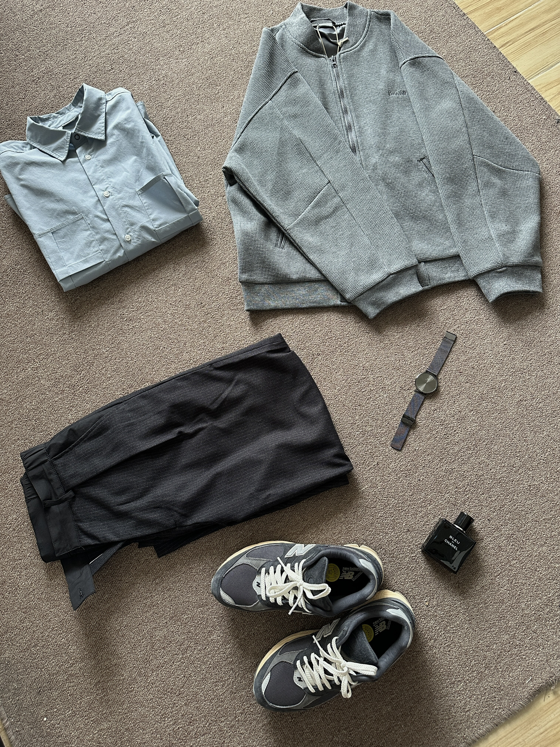 🧥- 中性、舒适的灰色调,很容易就穿出氛围感。 👖- 相对轻松自在的廓形西裤。 👟- 好走的NB ⌚- 手表,DW新品CLASSIC幻影系列,太空灰配色,格调拉满。