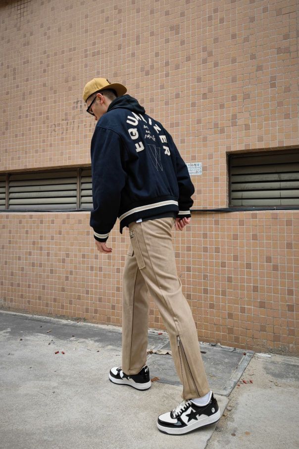 冬日这样穿,又暖又帅好嘛 猿人头的棒球帽保暖头部之余还可以装帅 草牌的棒球服十内搭安德玛卫衣,暖心又帅气。 质感滑绒长裤,宽松版型,不挑腿型,做帅气的仔。 Bape潮男鞋子单品之一就不多说了,谁穿谁帅。