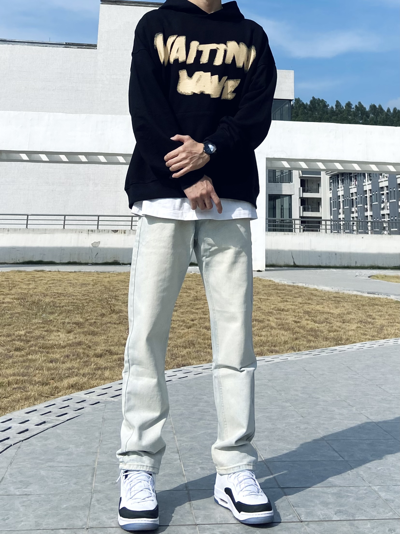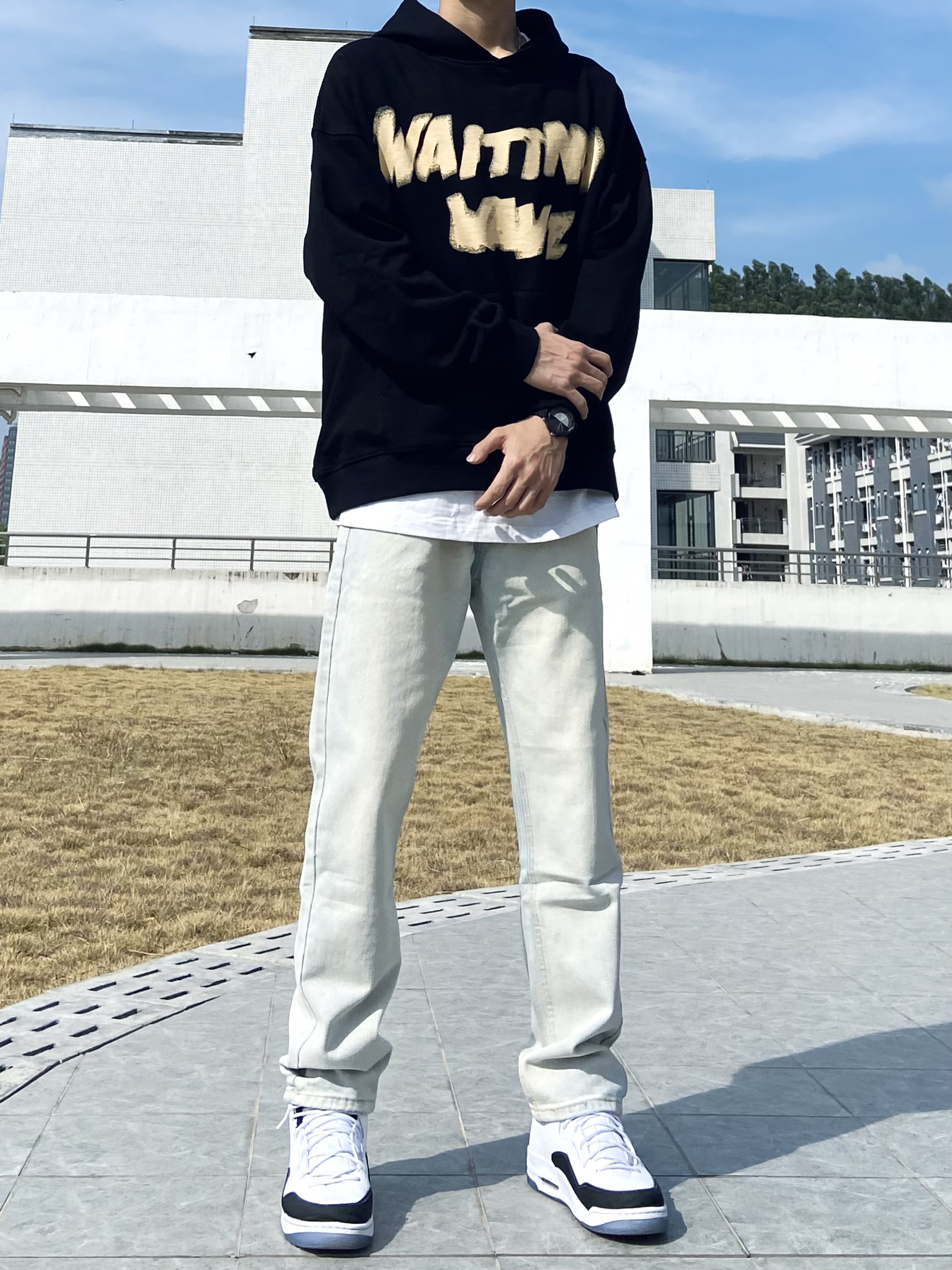 🙋♂️身高|体重:181|130 今日份Ootd: 👔黑色潮酷卫衣搭配浅色牛仔裤👖,这一套是真的帅 深浅搭配凸显层次感|氛围感直接拉满