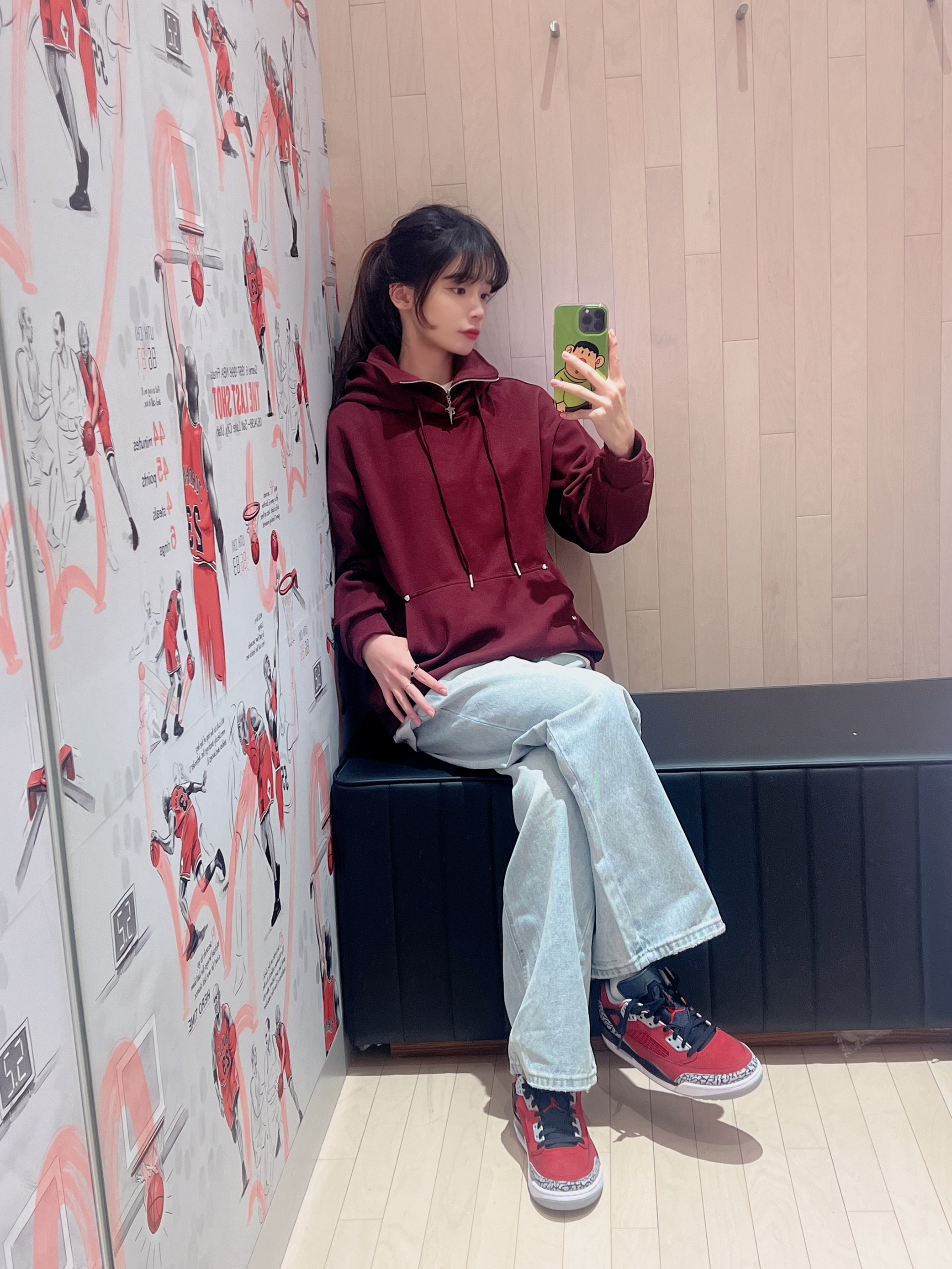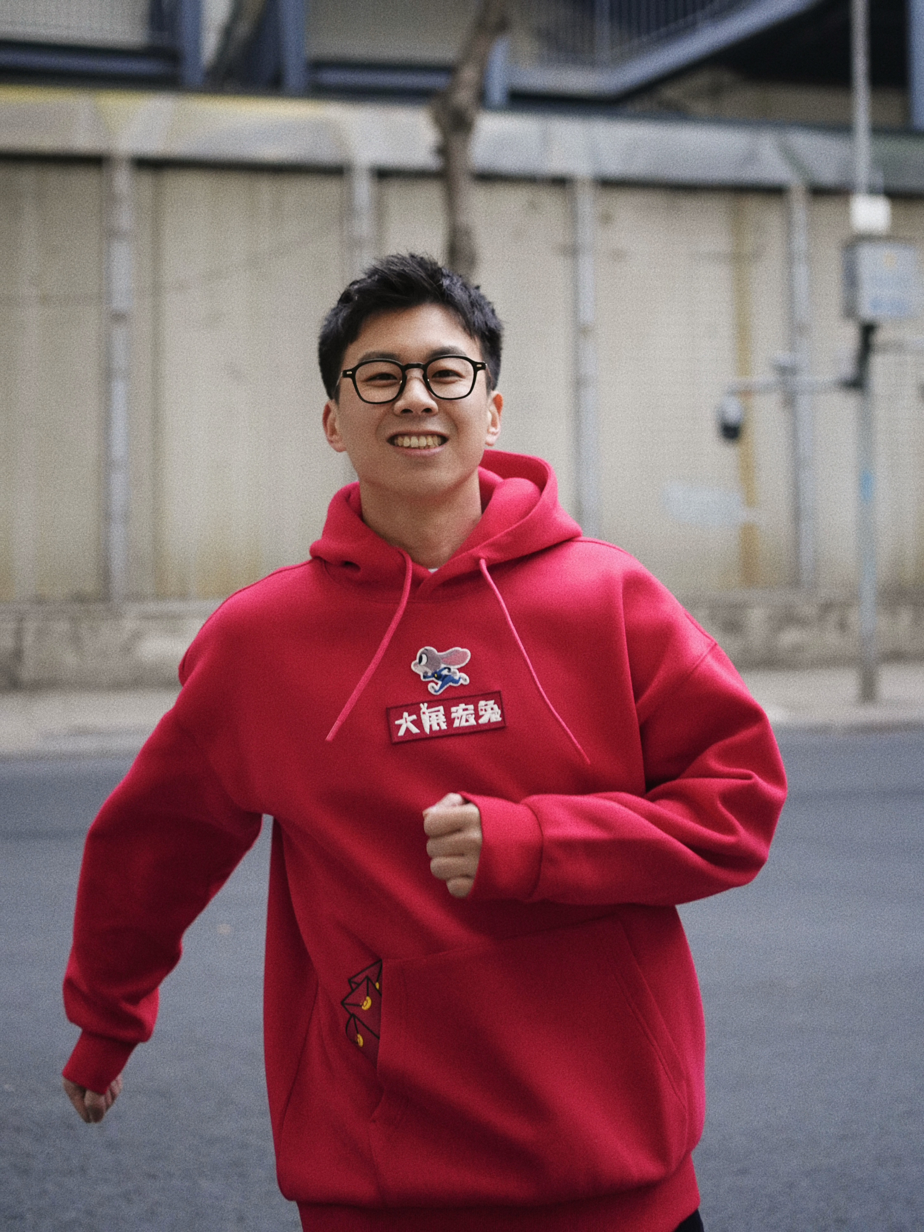新的一年快到啦,来一身跨年红色穿搭吧 红色的卫衣看起来喜庆又年轻,黑红配色YYDS 鞋子上脚舒服,还有增高的小心机 卫衣上小兔子的刺绣,元气又可爱哦