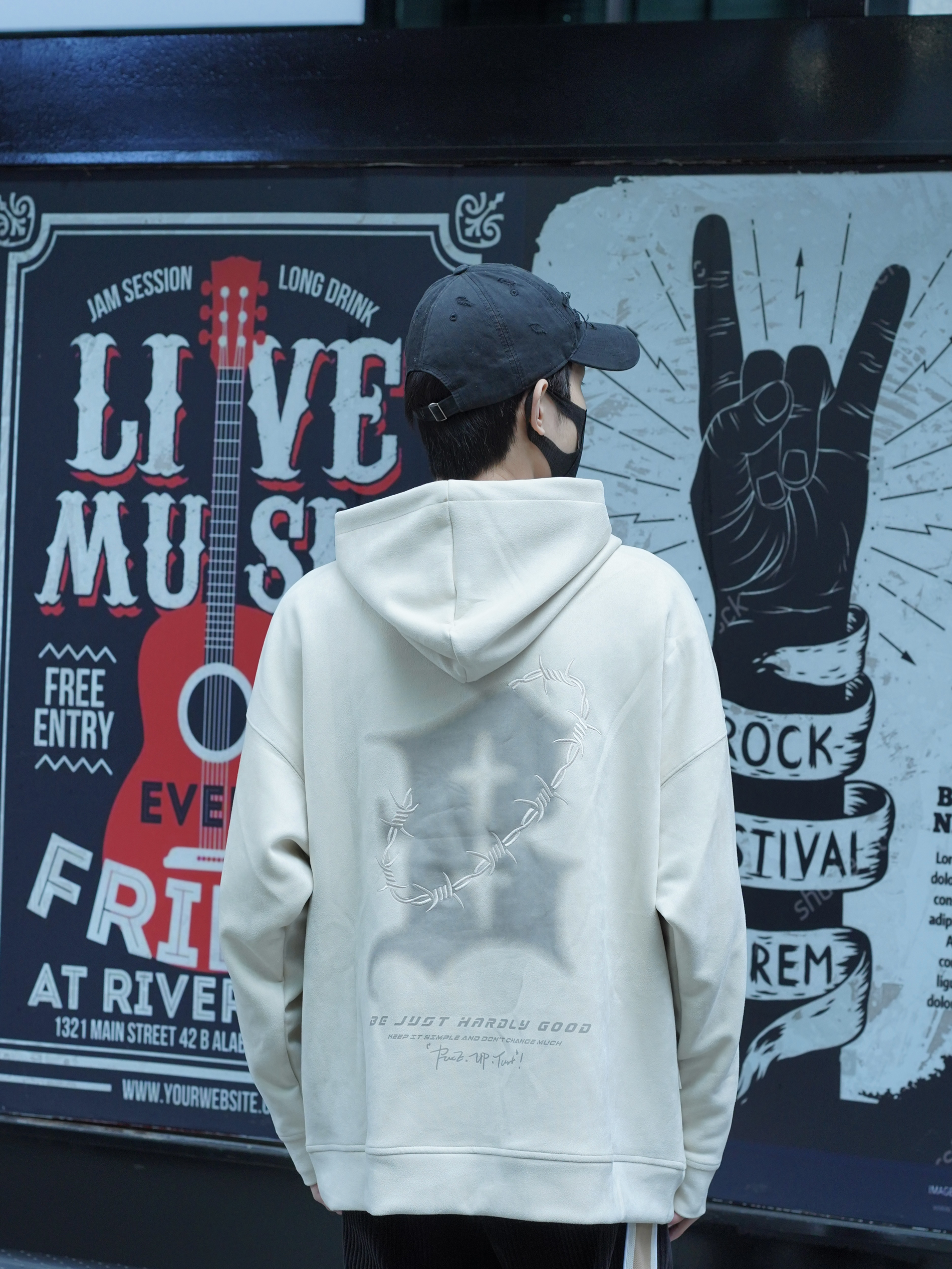 嗨喽啊 这里是阿克~ 冬季穿搭推荐大家尝试浅色系搭配 不仅有新意 出街也会让人眼前一亮 我选择的是这款休闲百搭的杏色连帽卫衣 穿上显得整个人都很温柔🥰 前后重工荆棘刺绣和LOGO 印花满满的复古风潮 软糯的麂皮绒面料 很舒服也很耐穿 不会皱皱巴巴的也不起球 版型很宽松 百搭不挑✊ 下半身搭配黑色休闲长裤 日常又帅气 👔:BJHG