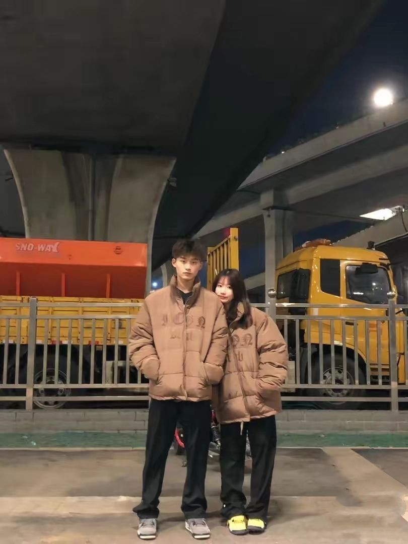 穿搭公式:短款羽绒服+黑色卫裤+休闲鞋 虽然这款羽绒服是短款的,但是它的长度也是可以遮住屁屁的,所以还是很暖和的 这款卡其色的棉袄比较偏中性风格,所以男生女生都能穿,我们的情侣棉袄也很好看😊