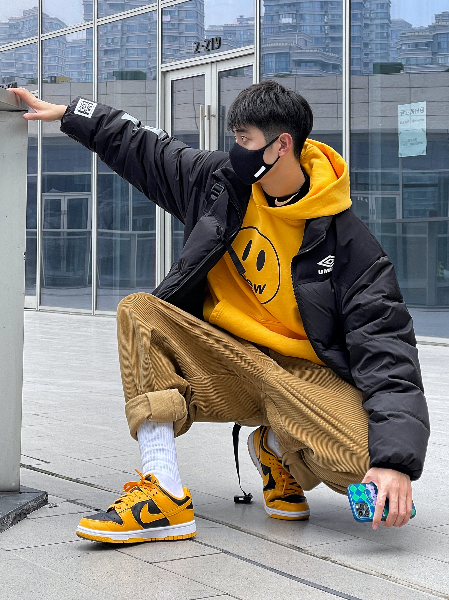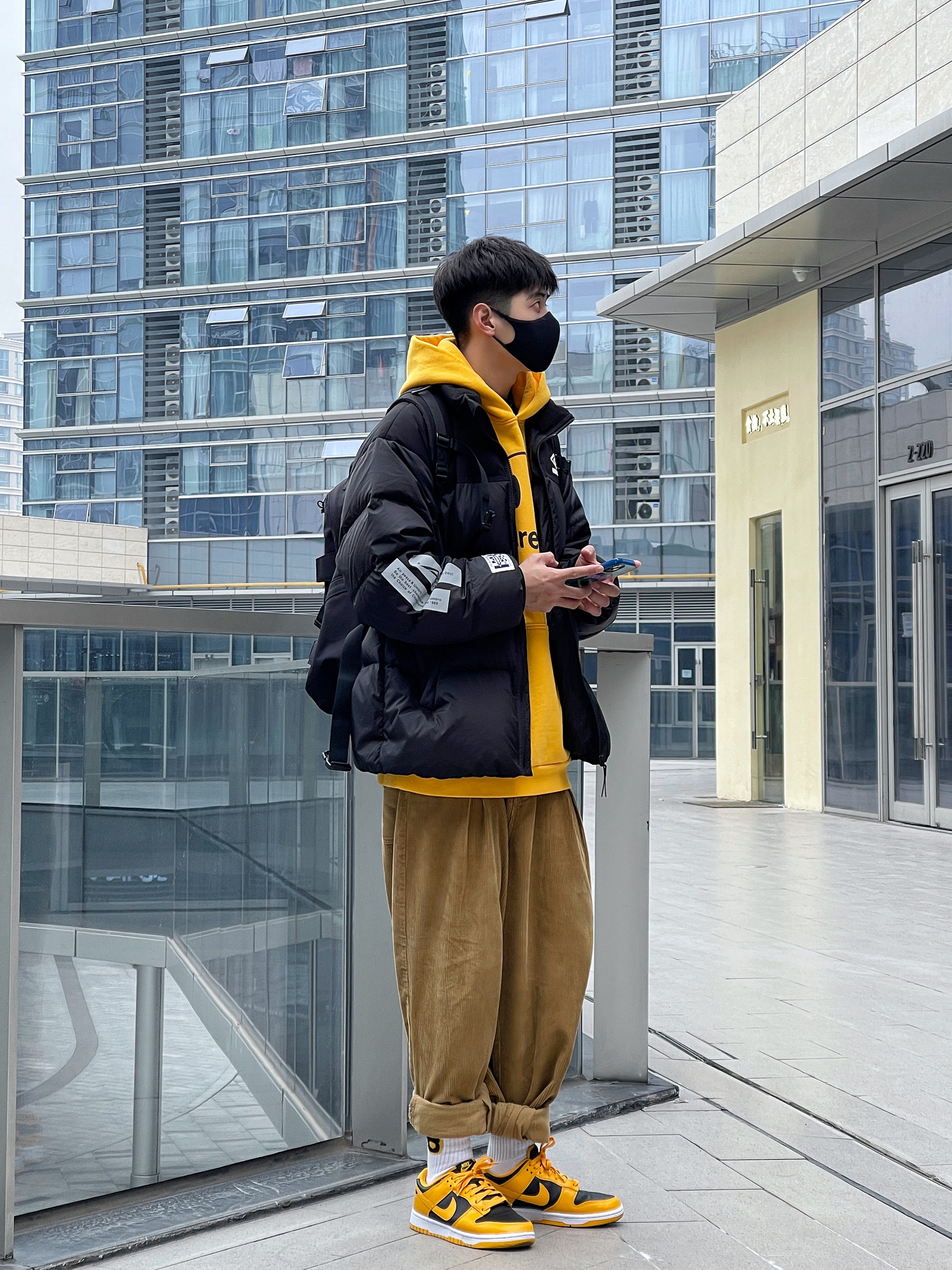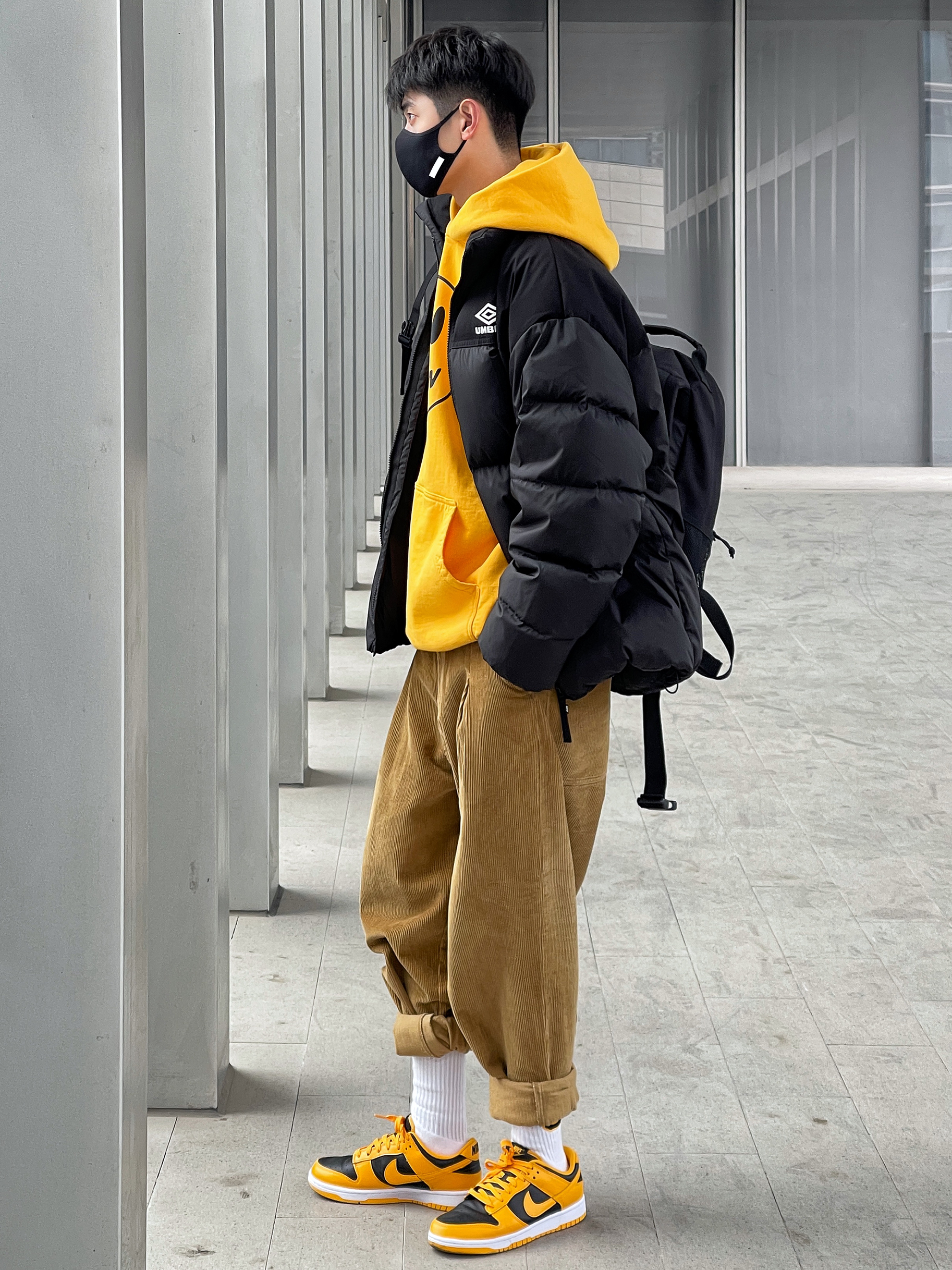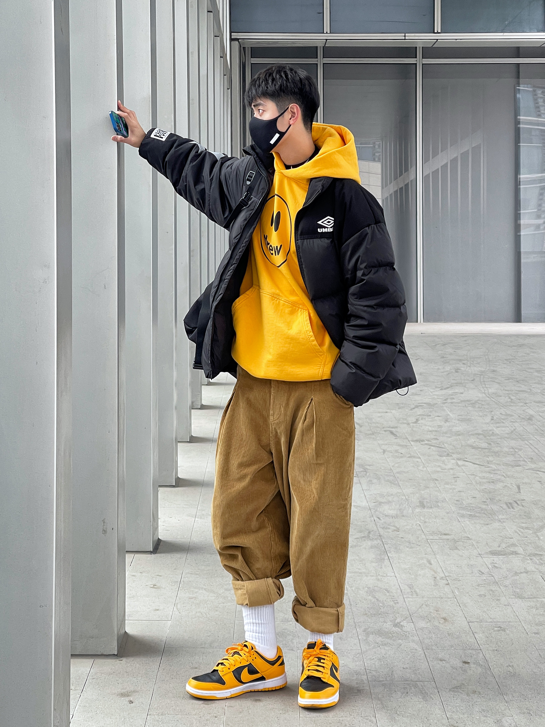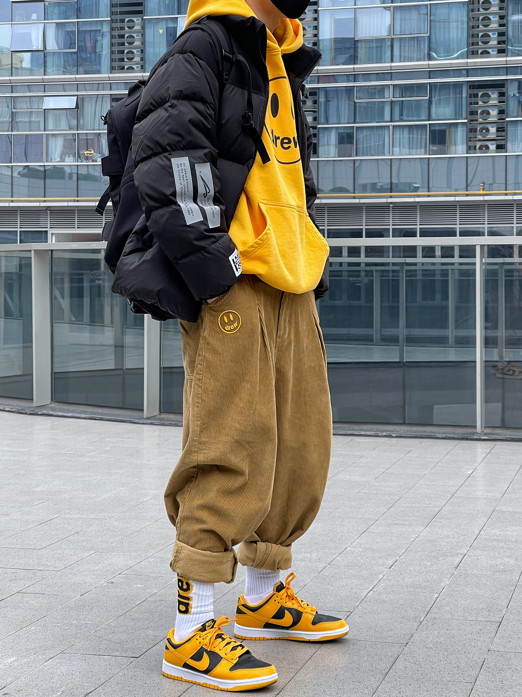 ▪️假如你也喜欢drew的笑脸卫衣,这个“皮卡丘闪电黄”的颜色真的要入! — ▪️今天这套“新年穿搭”—“黑黄”撞色搭配,一整个活力少年感穿搭,上衣的选择了“黑黄”叠穿,和我的“黑黄”Dunk上下色彩呼应,有点喜欢! — ▪️关于这条drew的灯芯绒裤子,买太大了,但是懒得退,所以多卷几下裤脚,也还行,裤子这么穿也算是体育生少林寺穿搭了吧!😂…… —
