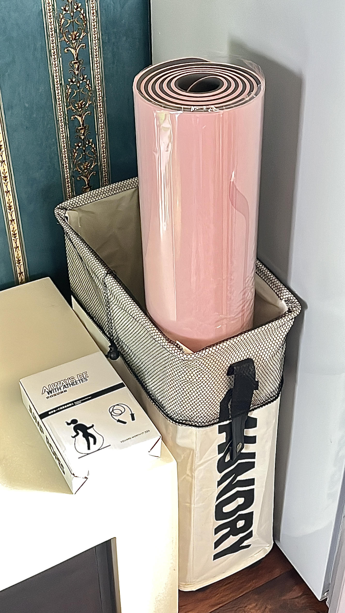 🎀✨在家里拥有一个粉嫩的迷你健身房是什么体验?! 健身房里必不可少的就是瑜伽垫和跳绳机械啦 这个瑜伽垫颜色真的好好看~粉粉嫩嫩的,还带体位线 而且很厚超防滑,一点也不担心会摔倒 跳绳也是两用的 无绳和有绳 上面还有智能计数器 颜色也是粉粉嫩嫩的 瑜伽垫卷起来收纳也很方便呀