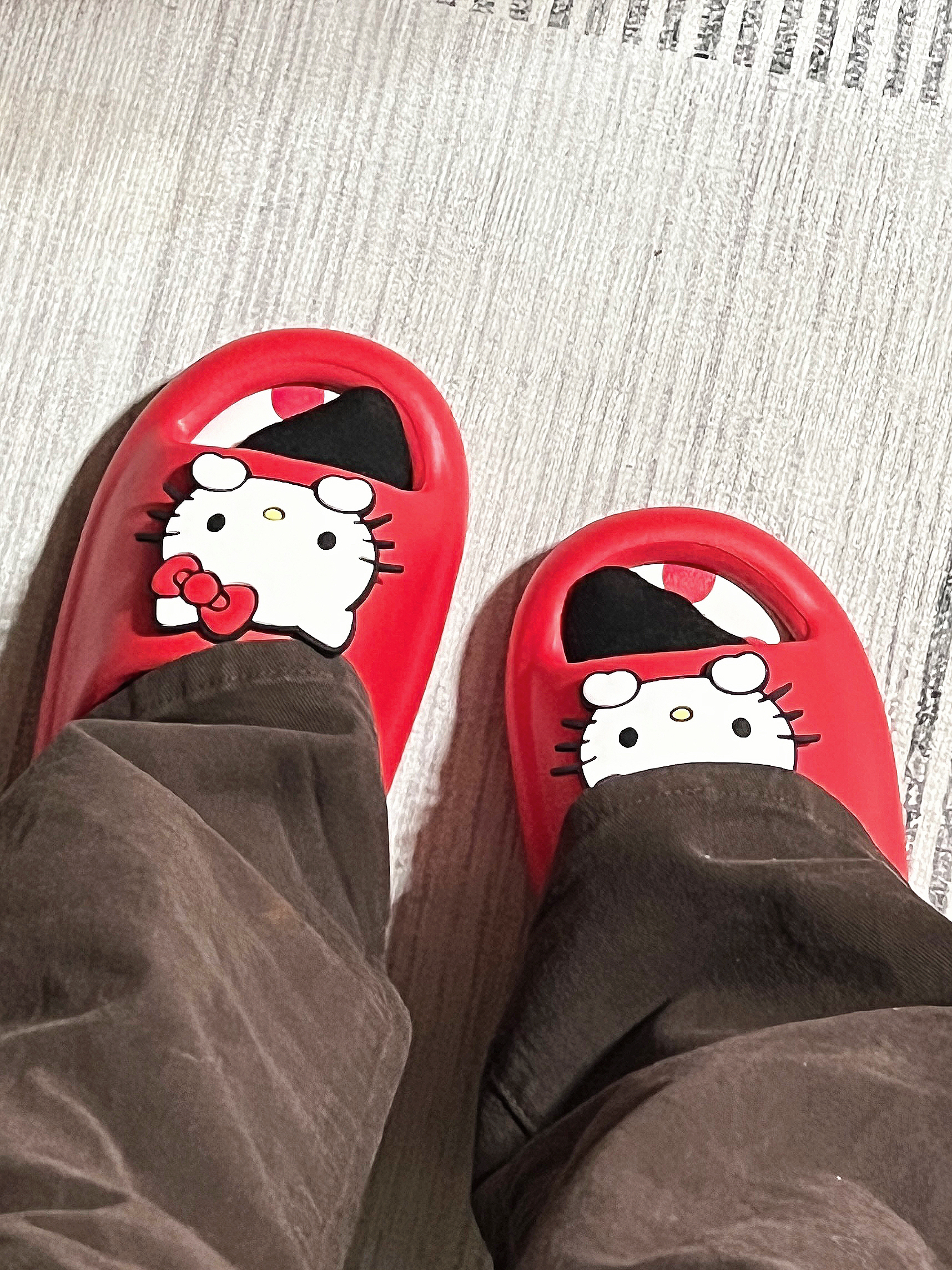 库洛米和HelloKitty真的无法做选择 两双凉拖都拿下啦✌🏻️尊滴好可爱 胖乎乎的踩上去好软啊家人们 紫色和红色都很好搭🩰 因为太美都舍不得穿出去啦