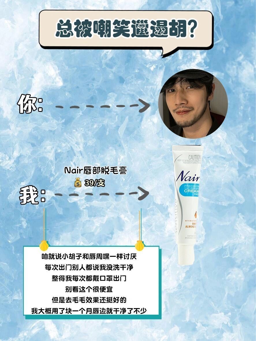 本篇笔记关联了【唇部脱毛】Nair 唇部腋下脱毛膏 20g(面部款)等商品,为用户提供真实的使用体验和购买参考。