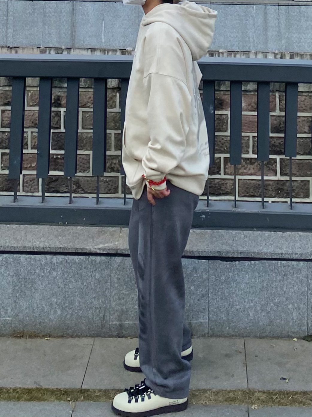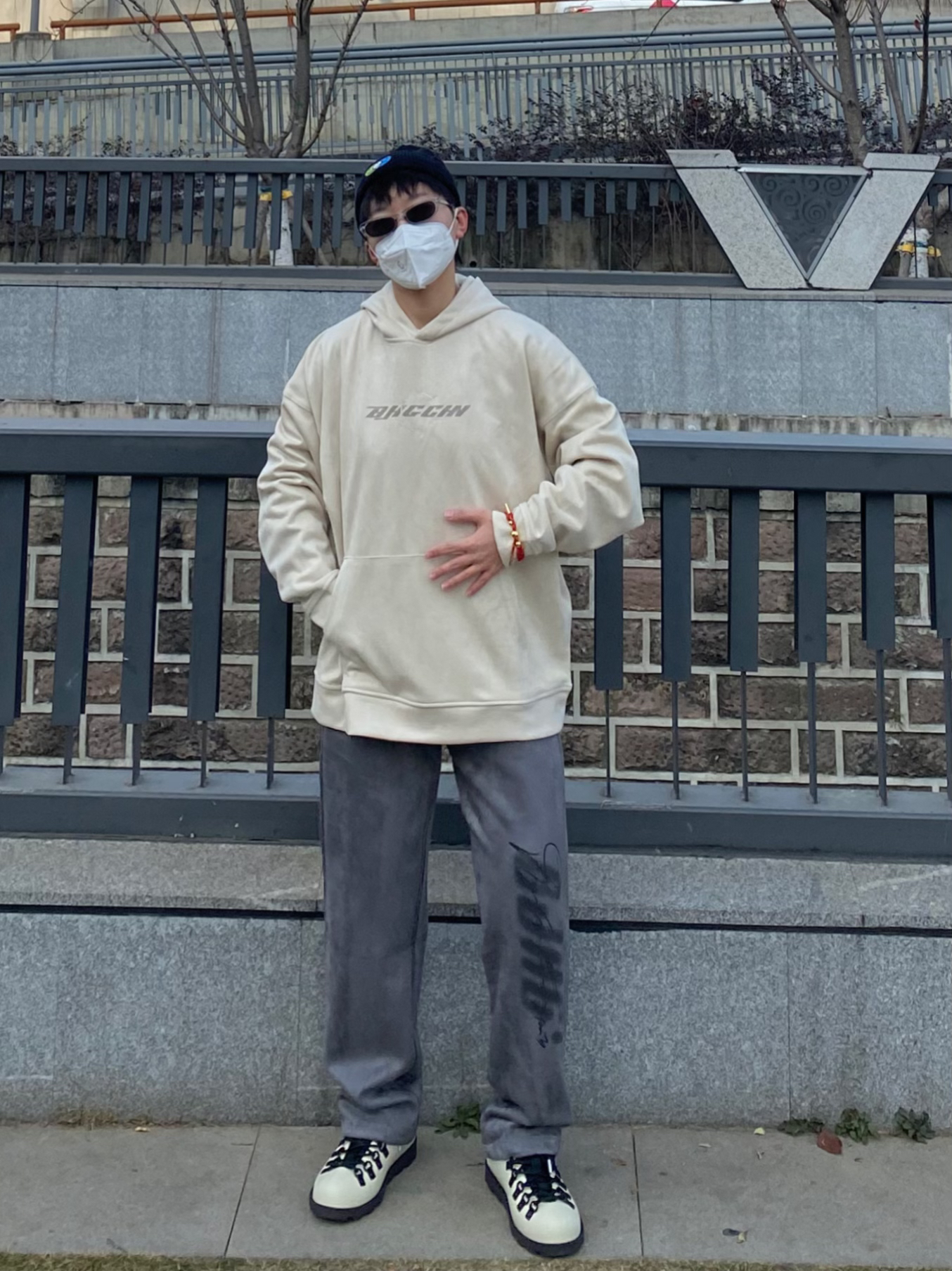 早春浅色系🏻搭配 浅卡其色的连帽卫衣很百搭 麂皮绒面料 摸起来超舒服 搭配一条深灰色的直筒休闲卫裤 宽松版型可修饰腿型 收到了女朋友送的新年礼物 RASTACLAT小狮子的生肖限定款兔年手链 红色很有新年气息 可以配情侣款哦 👔👖BJHG