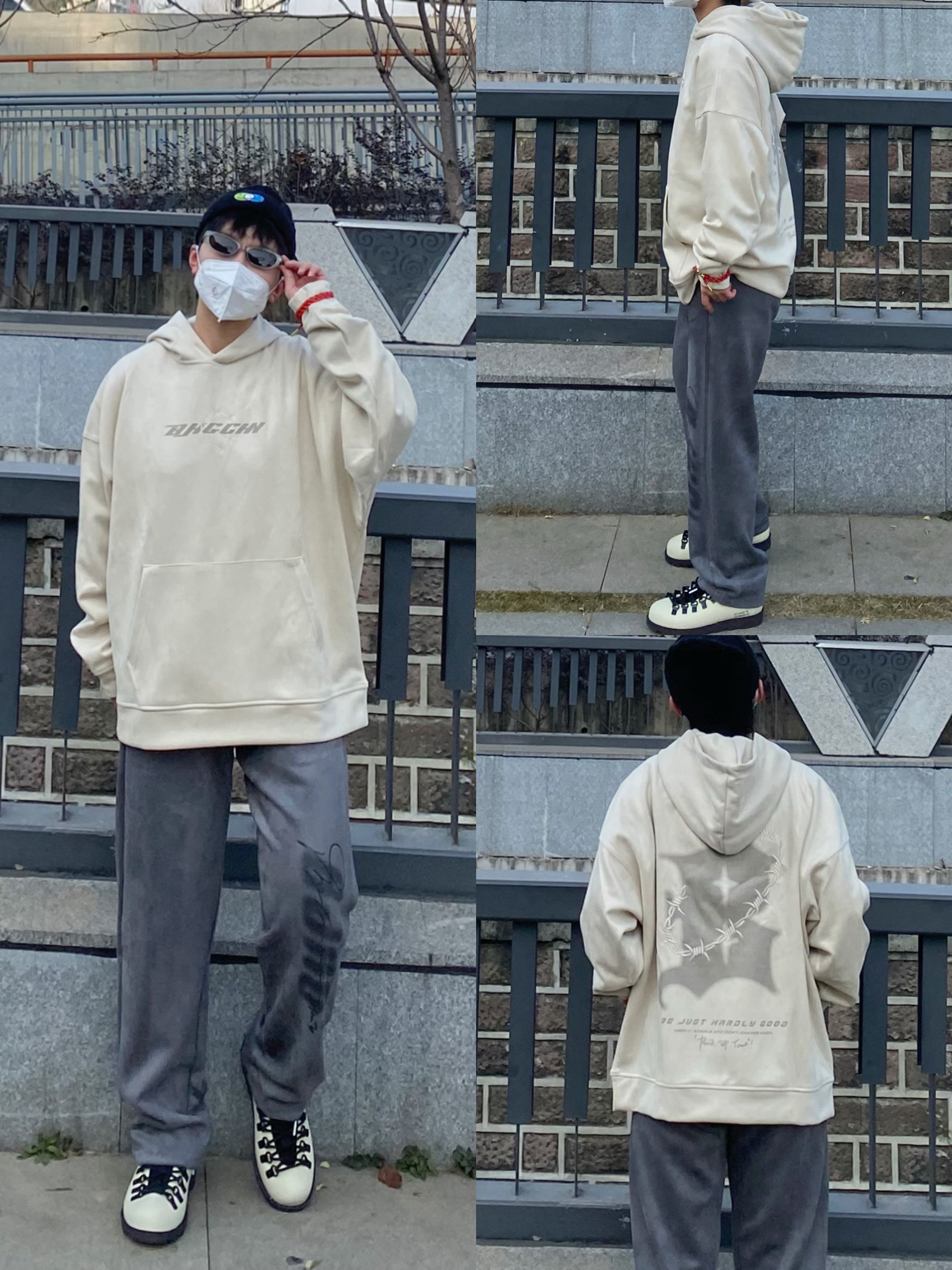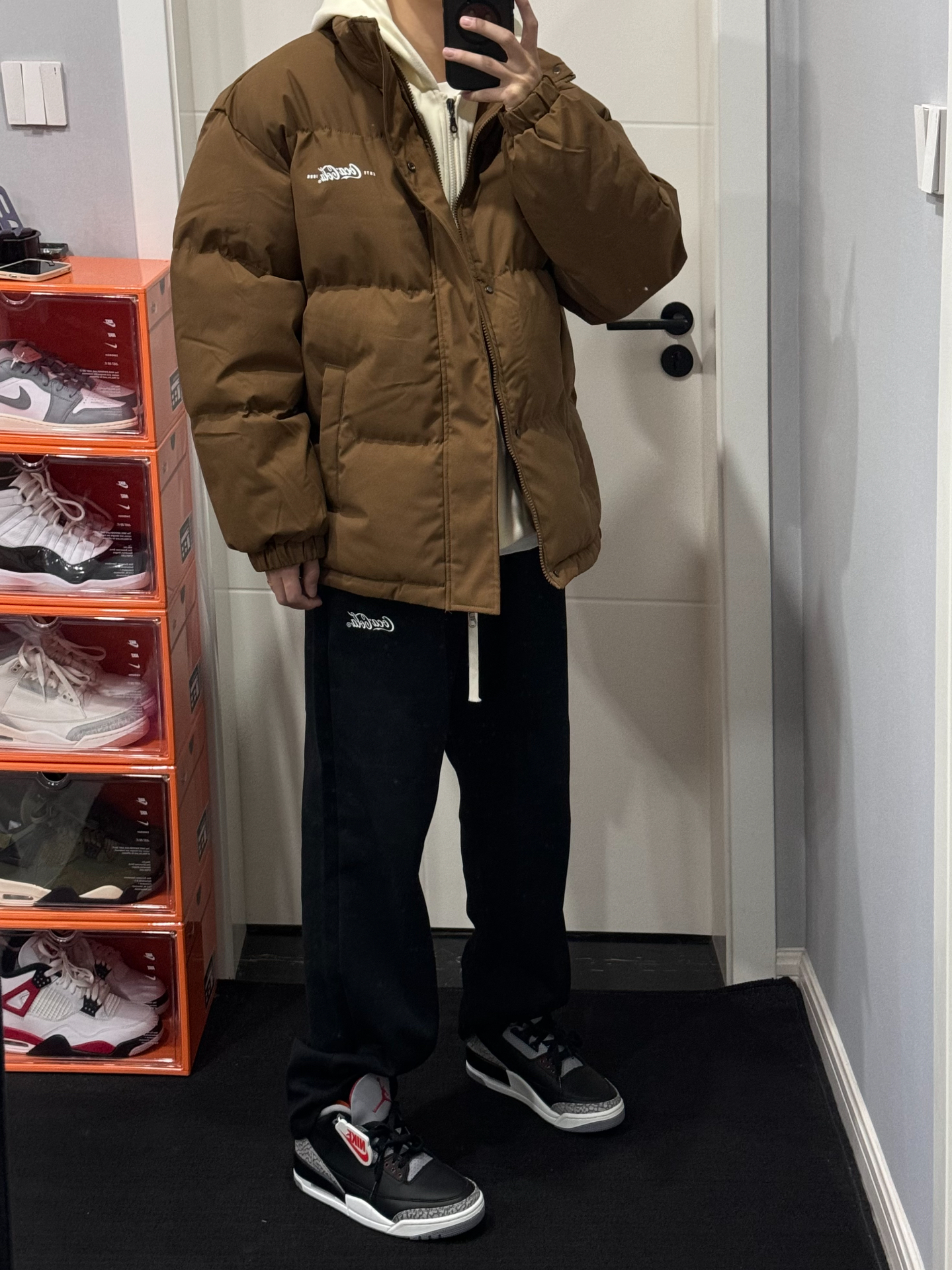 hello 兄弟们新年快乐呀 新年第一周的不重复搭配来啦~ 1⃣️ 浅卡其色麂皮绒连帽卫衣+灰色麂皮绒直筒卫裤 2⃣️ 深灰色加绒卫衣+米色束脚卫裤 3⃣️ 老花印花棕色大棉服+黑色直筒卫裤 4⃣️ 奶茶色皮质羽绒服蓝色直筒牛仔裤 5⃣️ 黑色皮质羽绒服+深灰色麂皮绒卫裤 6⃣️ 黑色字母印花羽绒服+蓝色直筒百搭牛仔裤