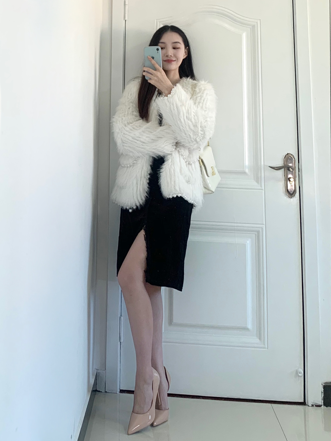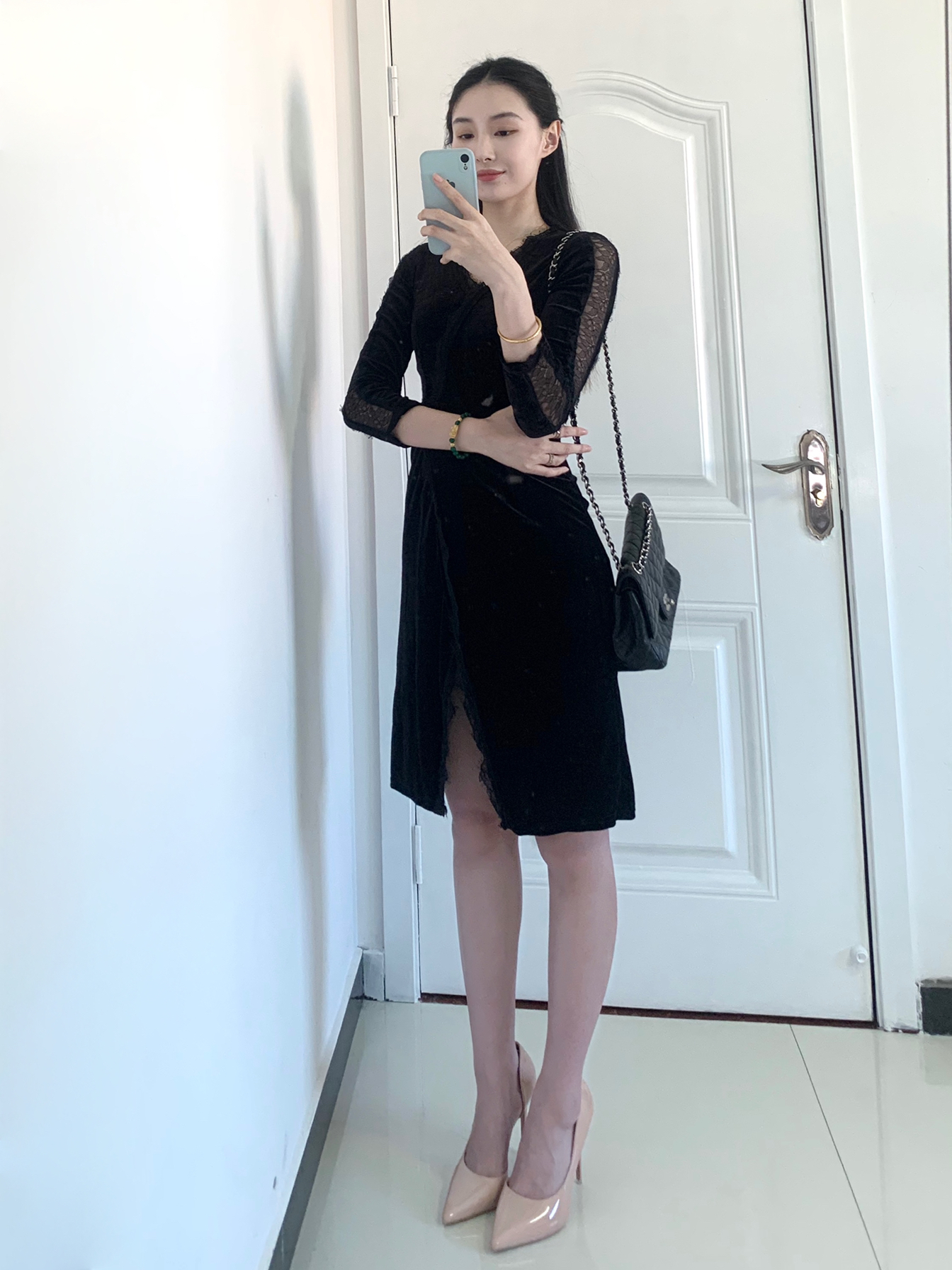 ❣️当然要穿小黑裙搭配金首饰了❣️ 🔎今天是丝绒蕾丝裙又是一件修身显瘦女装 搭配白色环保皮草 永远的经典搭配 黑白永不过时 🔎白色环保皮草价格很低 带有珍珠设计 没那么不好驾驭 整体很年轻时尚 居然还是正肩的设计 非常潮流 我很喜欢 不用心疼 随便造! 🔎搭配黑色链条包 包型挺阔 菱格纹设计 真皮的制作 可以用个5 6年没问题 👜:黑色链条包 🧥:环保皮草 👗:黑色丝绒连衣裙 👠:裸色...