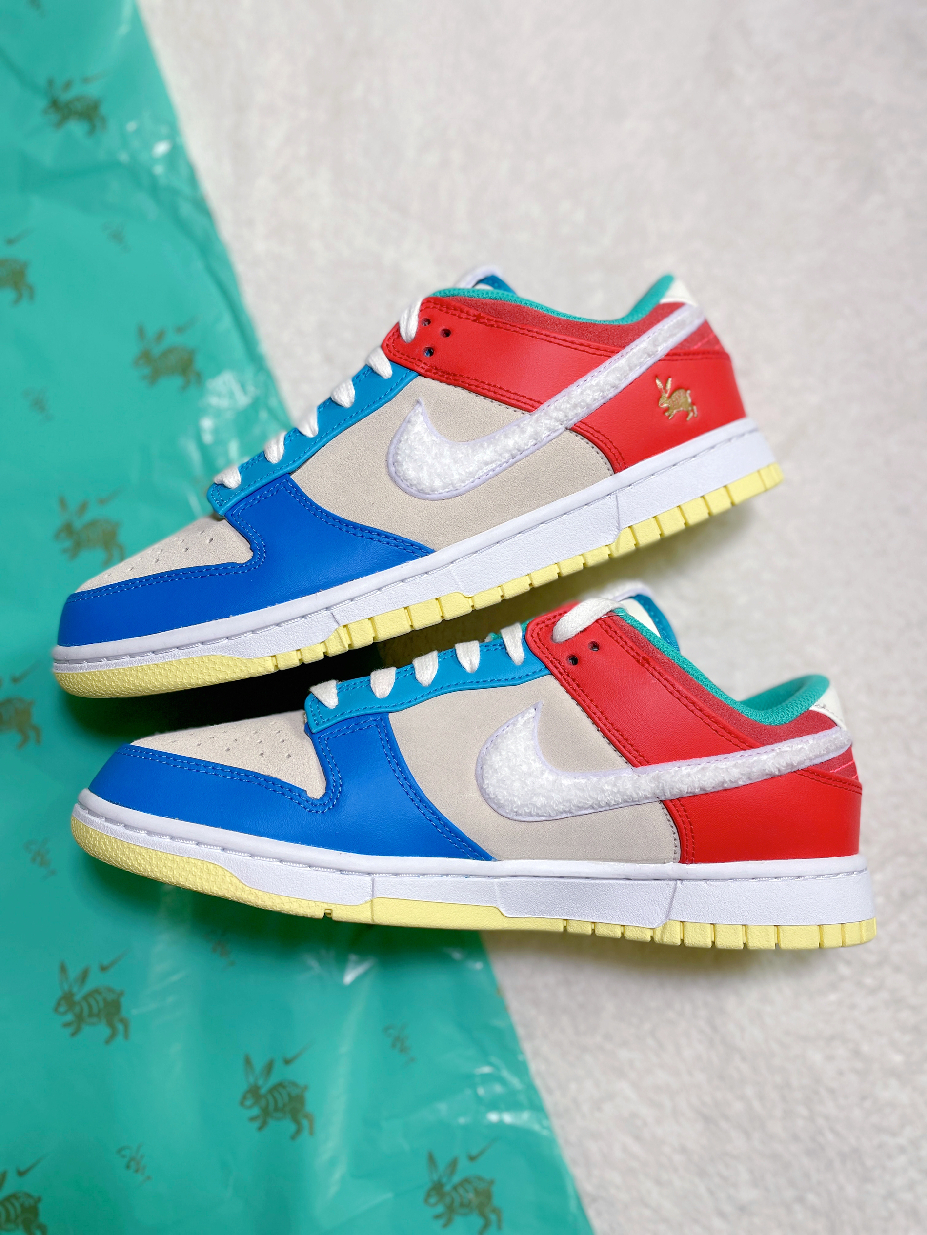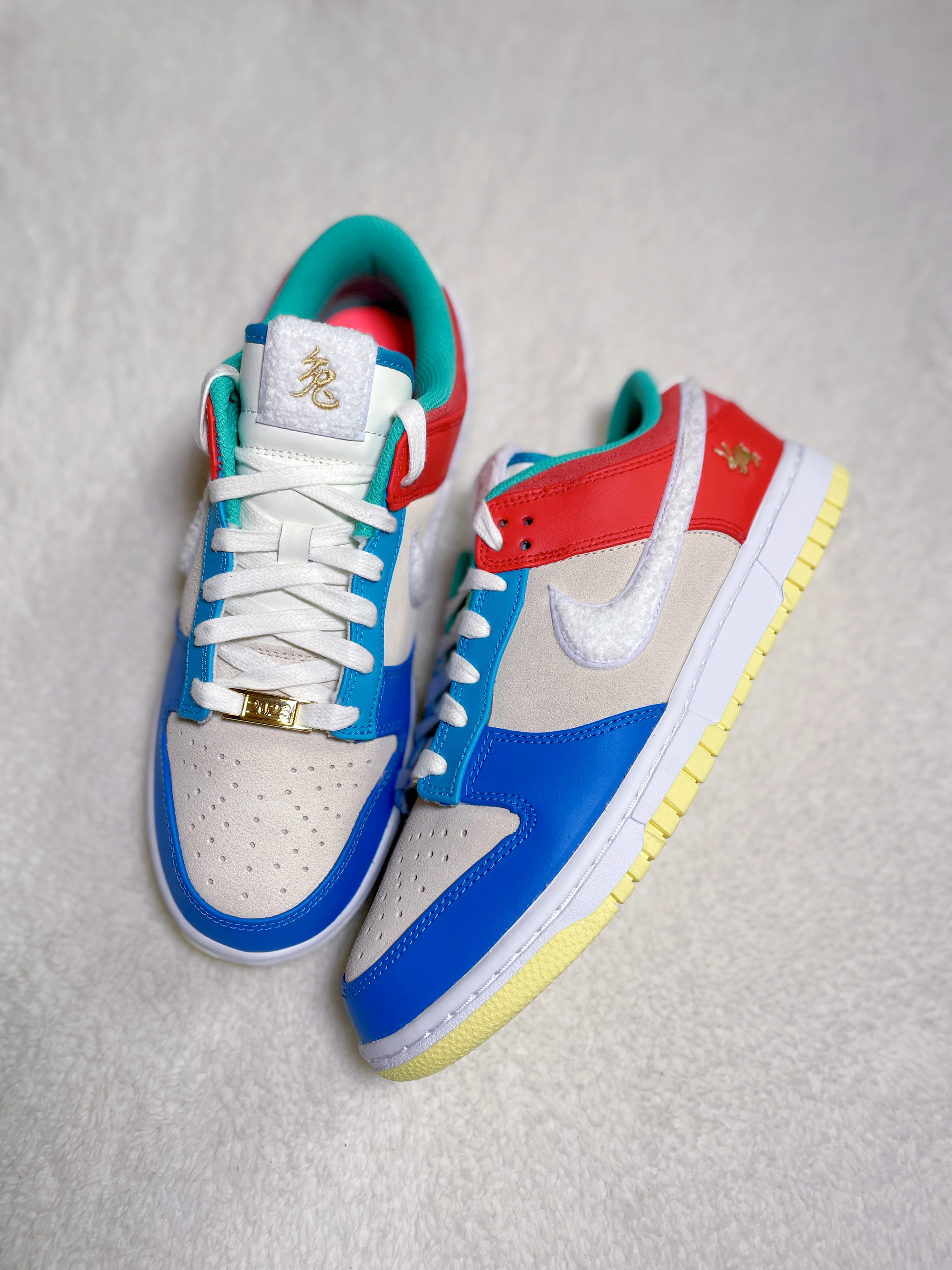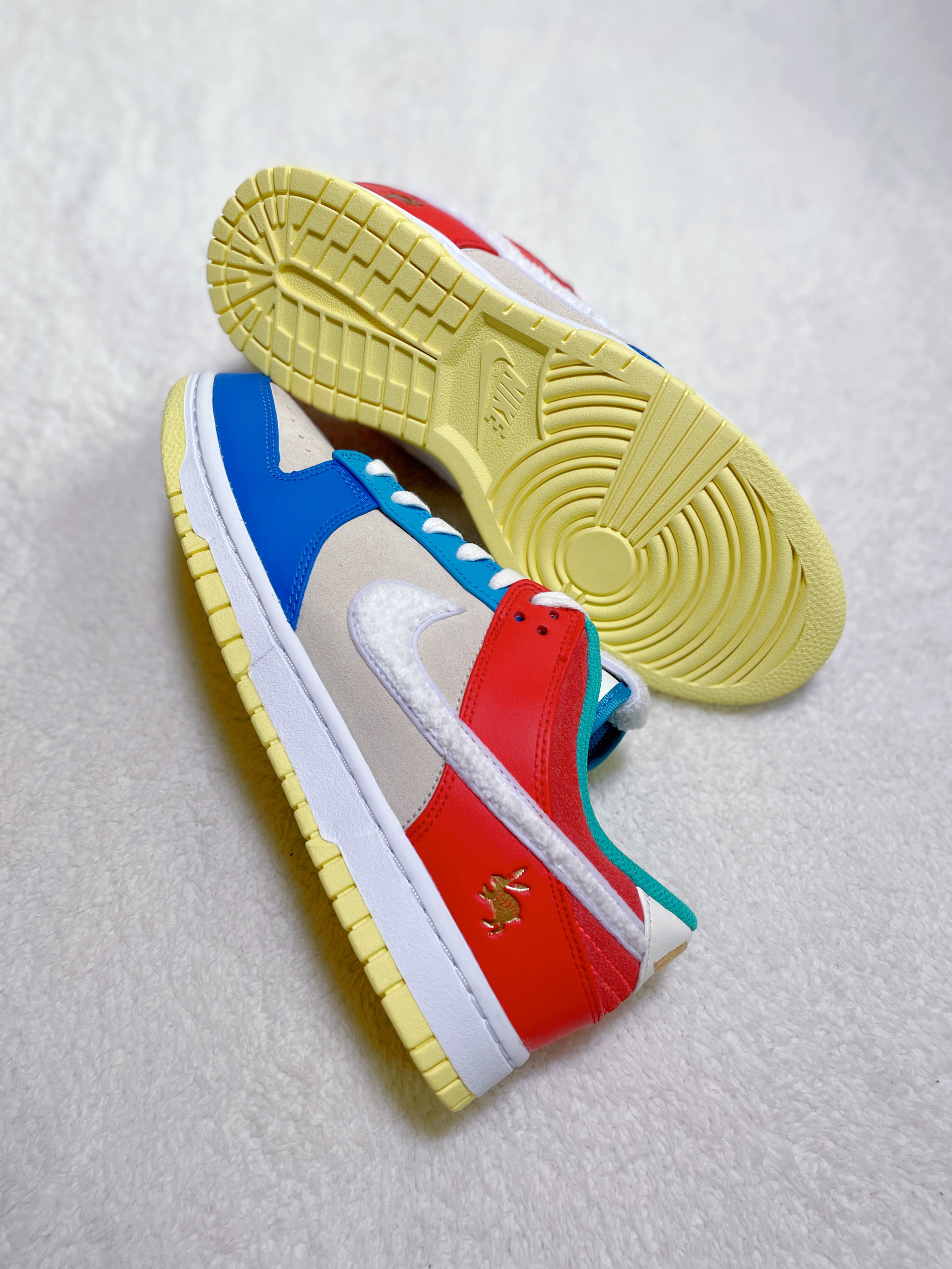今年Nike推出了兔年Dunk城市系列 分别以“北上广成”四大城市为灵感设计!之前入手的上海限定让我回想起当年的AF1兔年神作 今天分享一双里面配色最绚丽多彩的“北京兔”🐰 鞋子整体采用多种颜色撞色搭配 营造出五彩缤纷的氛围 也符合过年的节日气氛!鞋面依然由皮革与麂皮拼接打造 质感不错!鞋身swoosh依旧是毛绒绒的材质呈现 鞋舌上的中文“兔”字 以及鞋后跟的小兔子剪纸图案等细节 完美呼应兔年主...