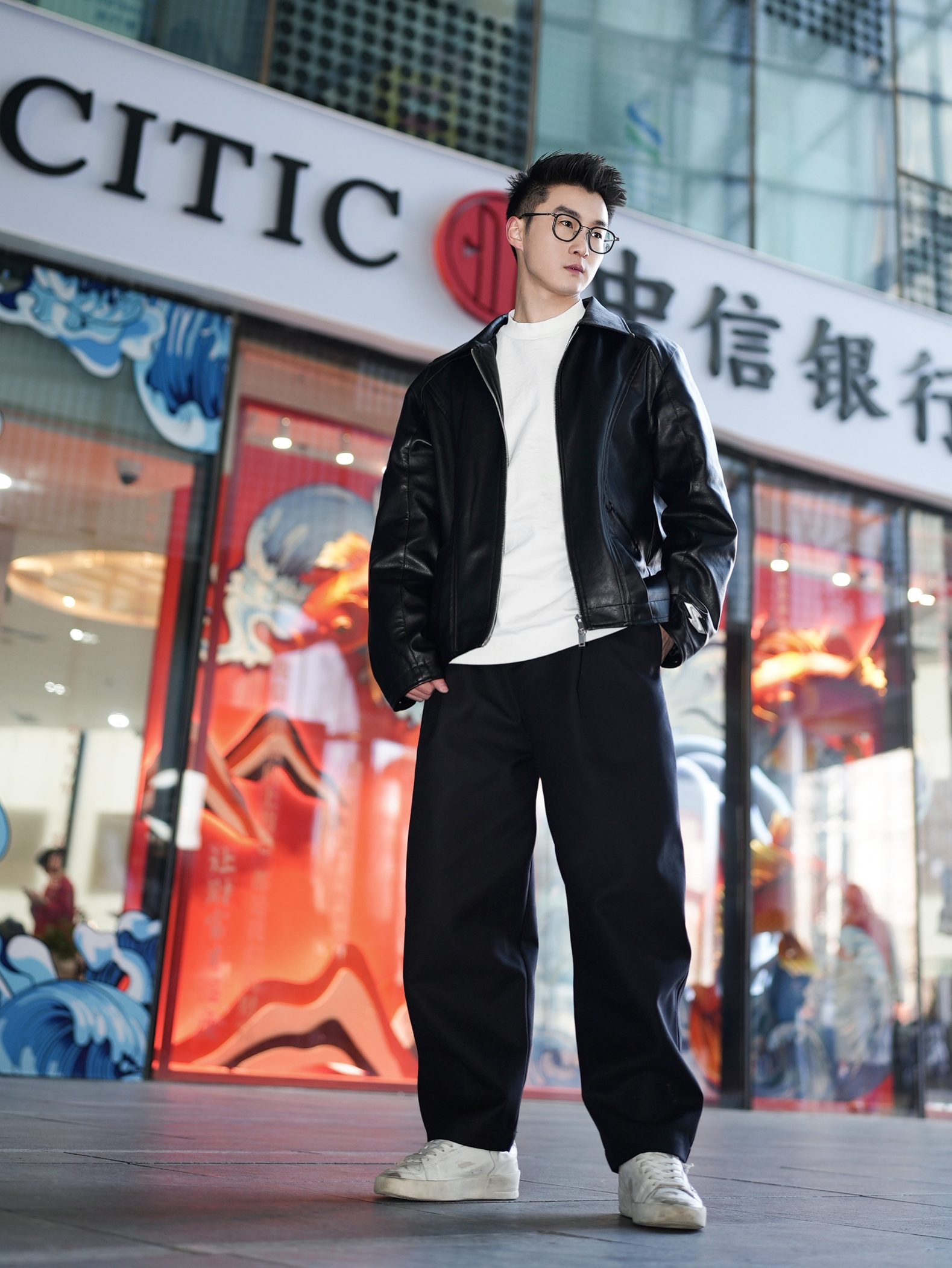 秋冬季节的深色系穿搭,尝试不同的材质不同的look。当然不同材质结合起来,尽显高级随性风。 皮衣作为新年聚会穿搭也是极好的。 复古有型的皮衣,白色内搭是不是干净利落,搭配同色系黑色宽松阔腿裤。 锥形版型拉长腿部比例,保暖且有质感。 - OOTD👇 🧥外套:Standby 👔内搭:单农 👖裤子:速写 👟鞋子:goldengoose