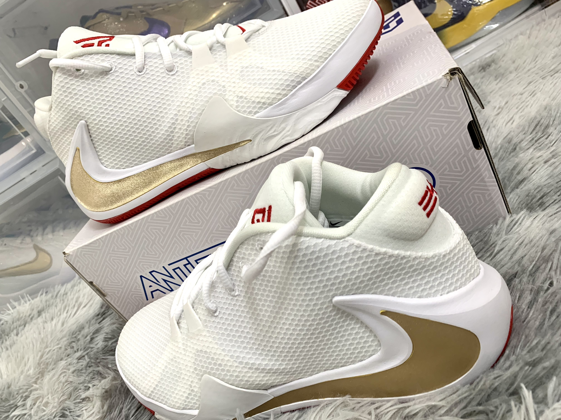 今天分享的球鞋是 字母哥「Zoom Freak I」白红玫瑰🌹 Giannis Antetokounmpo字母哥的logo正是缩写GA 整体看起来像个“A” 字母说看见这个logo,就想起整个家族 所以仅这个logo就能看出字母哥对家庭的爱👍 看过「Zoom Freak I」设计故事的朋友应该知道 整双鞋都蕴含着这位球场野兽的满满柔情❤️ 🌟特意放大的Swoosh并且逆向放置 就如字母哥在球场上...