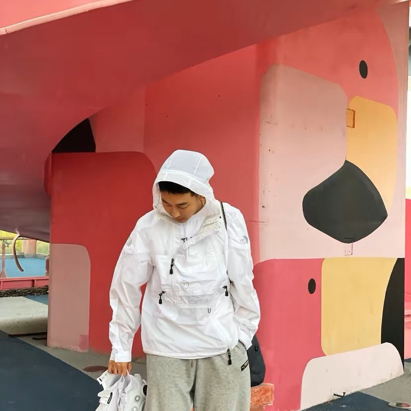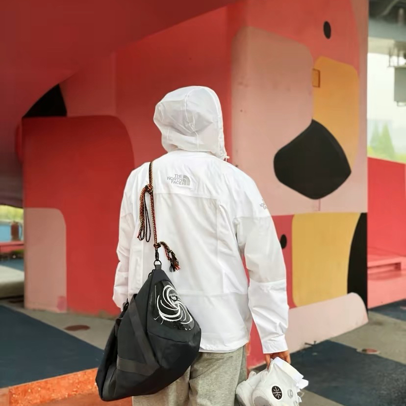 🌪北面UE系列 户外防泼水防风连帽夹克外套 男女同款白色 常规衣长 宽松版型 适用于春秋防风防水又不怕闷热 🌈户外 运动 青春活力的风格简约时尚不挑人 搭配穿出运动男孩的飒爽 你的衣柜就缺这样一件北面UE冲锋衣 (图来源于网络)