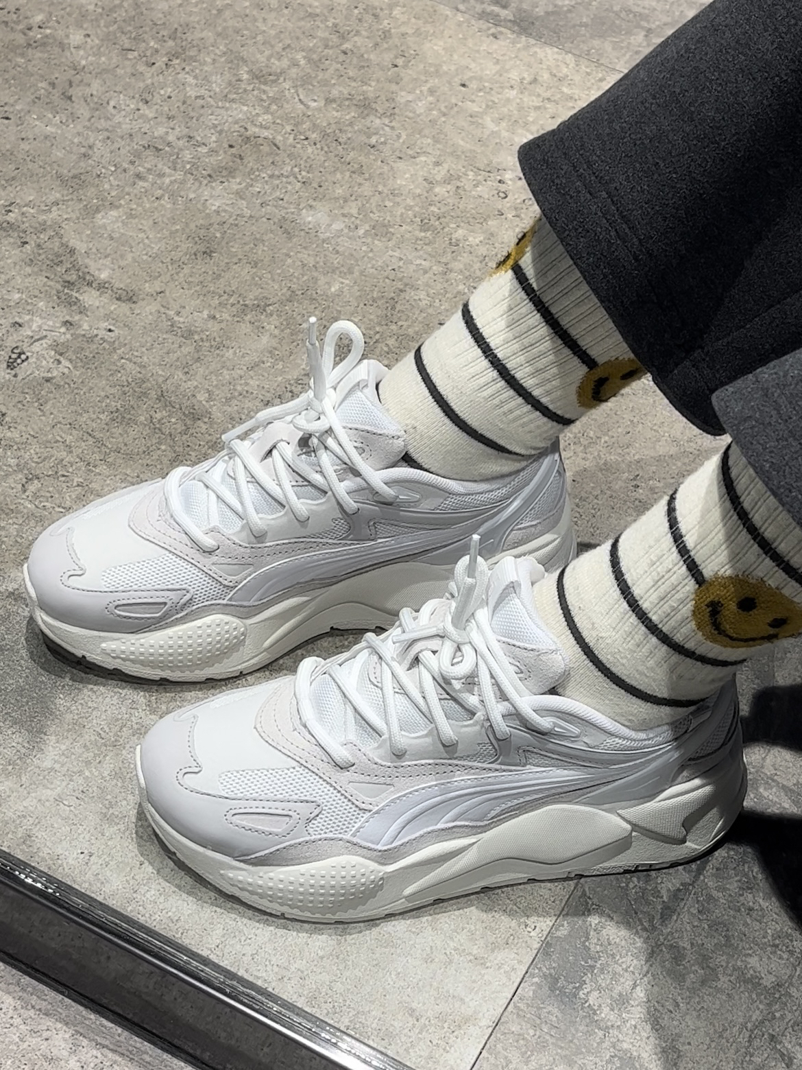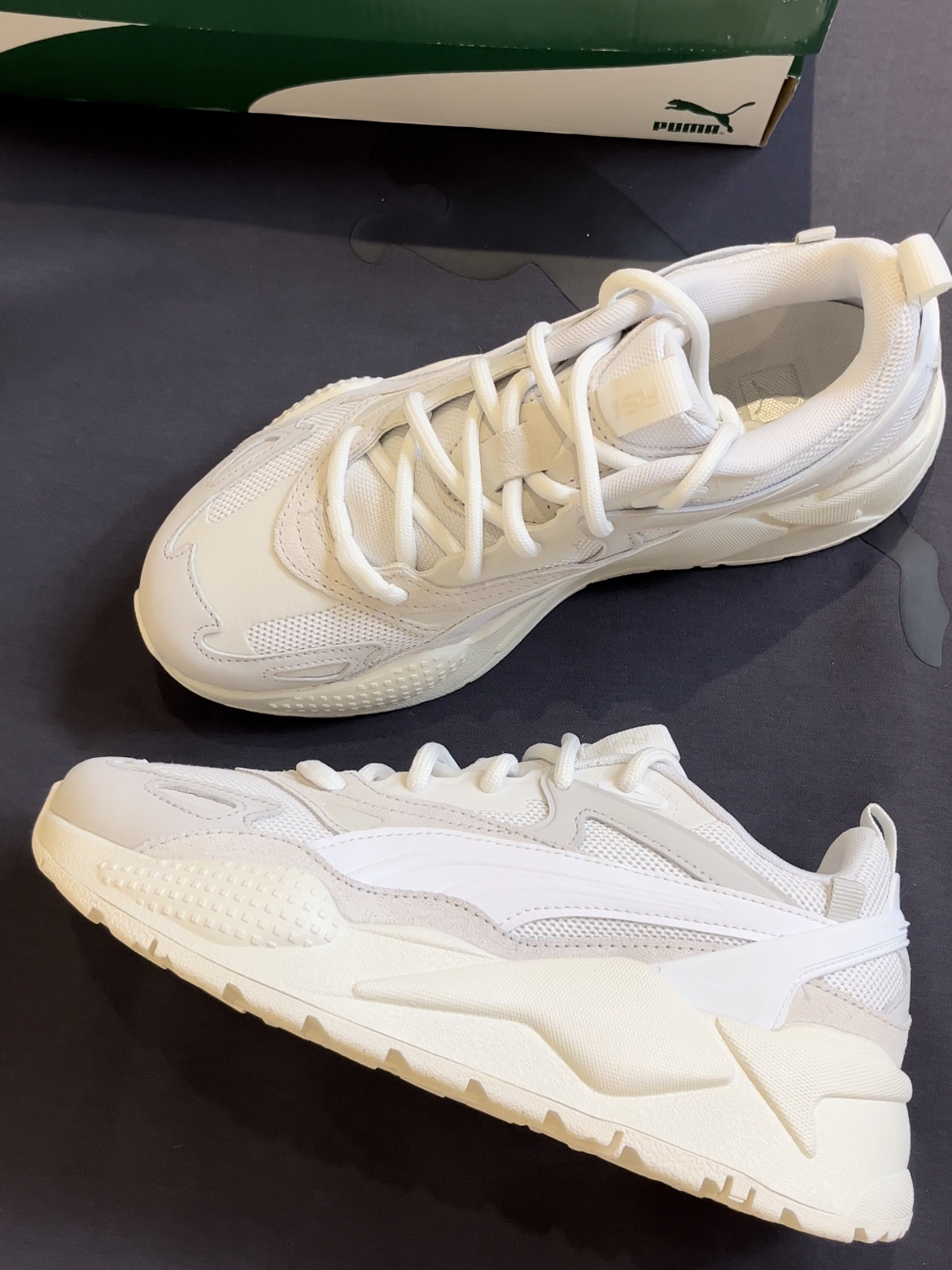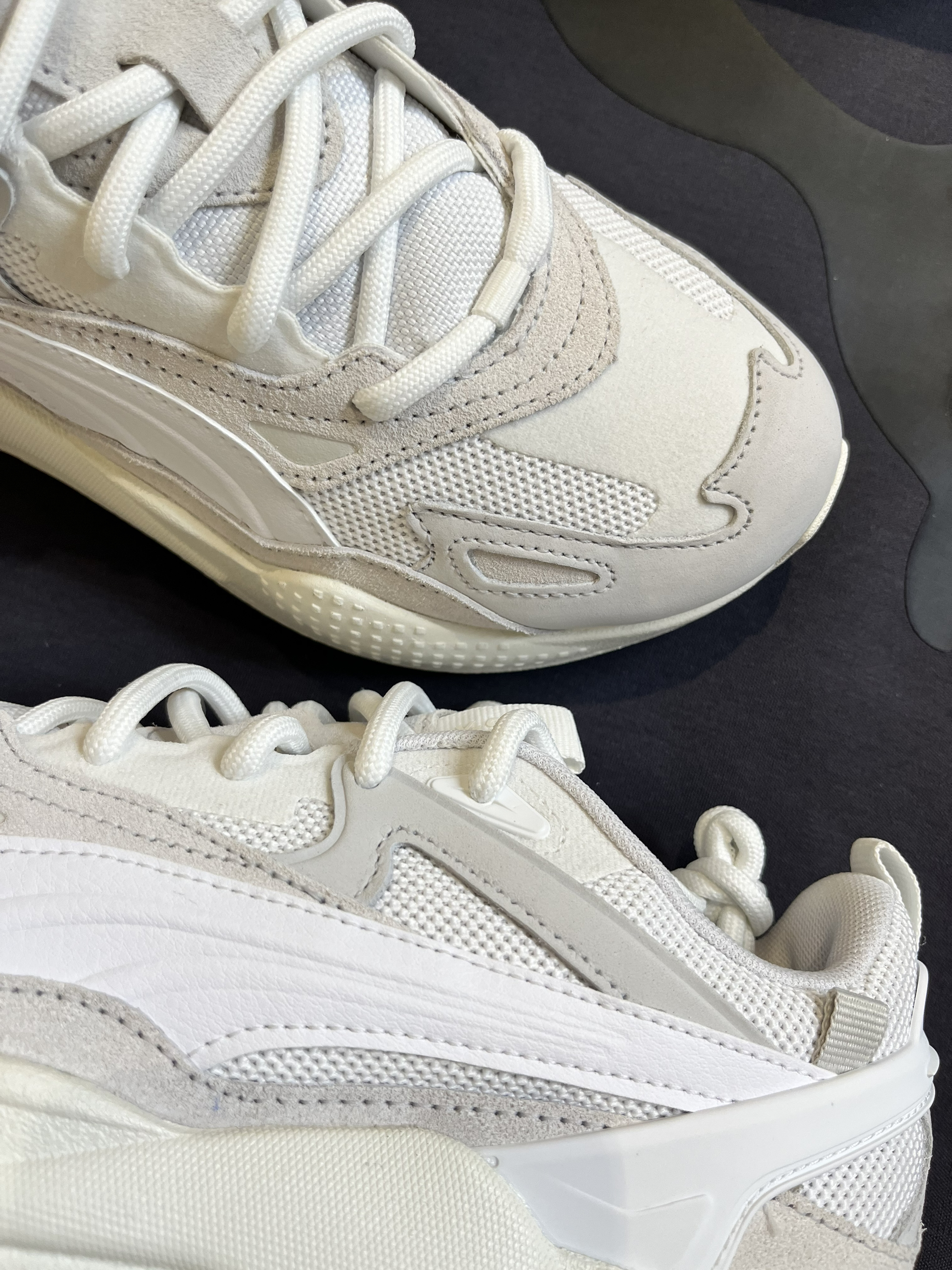 👟球鞋名称: Puma RS-X Efekt 白灰色 黑色之前拍过黑武士帅的一批 白色会不会更惊艳呢 🔍设计亮点:后跟采用老爹鞋一贯的风格 高达5cm!不用踩增高鞋垫也能稳定增高的鞋子! 男女同款的 可搭配情侣鞋 男生穿黑色 女生穿白的 要帅一起帅要高一起高 谁也不拉下 ⛹️实战感受(缓震/包裹/抓地力):包裹感紧贴脚步 中底有回弹力 📃总结评价:性能感十足的细节设计 适用于任何场景户外活动 ...