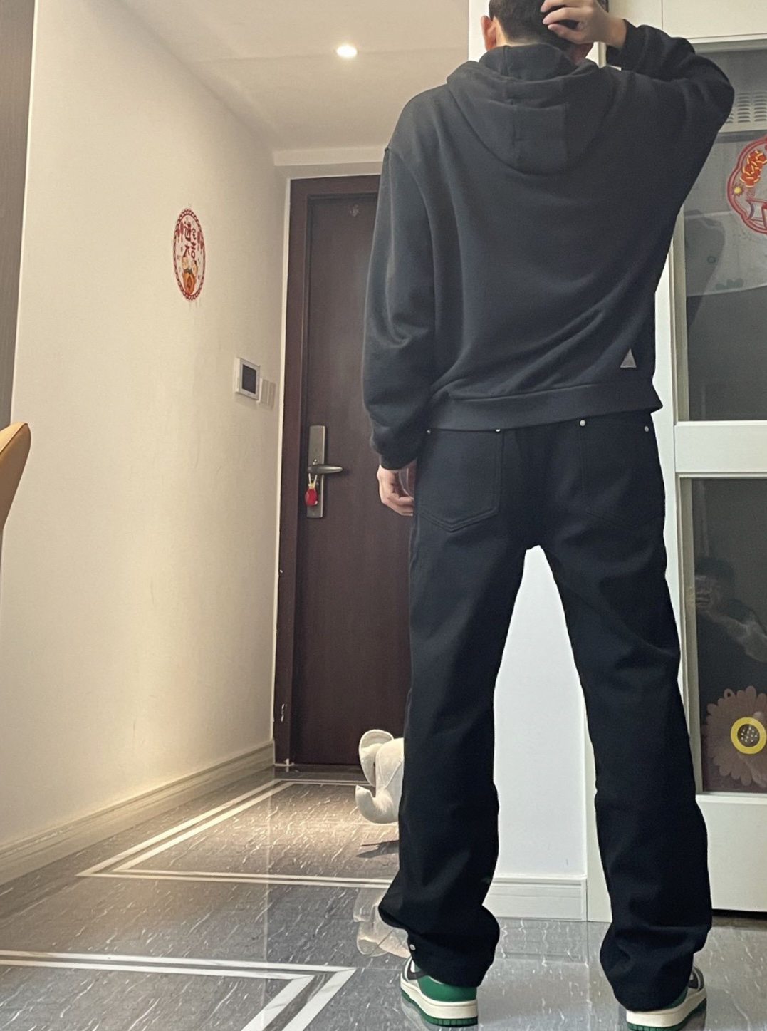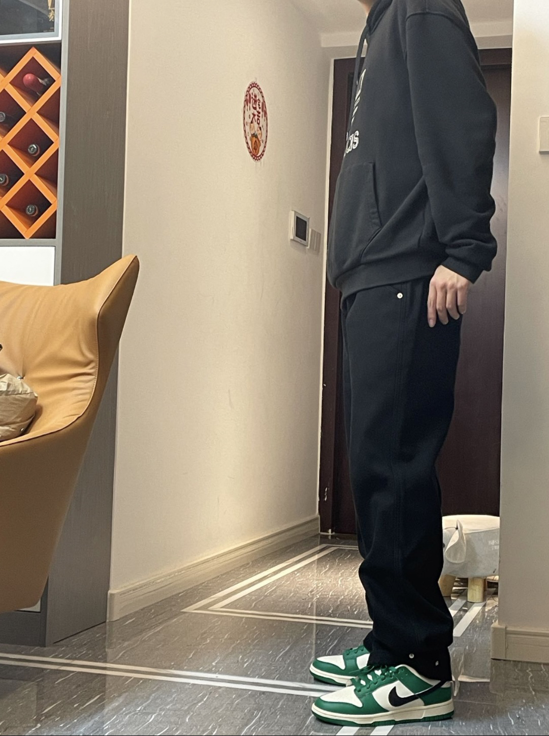 👕:上衣是adidas的一款连帽卫衣,衣卫衣挺厚的,适合冬天穿,基本上在套个外套或者马甲就不会冷了 👖:这款的话买的是加绒的一款,穿上是真的舒服,搭配着板鞋是真的挺好看,很不错 👟:鞋子是dunk的一款,平常穿搭的话是真的挺好搭配,很不错