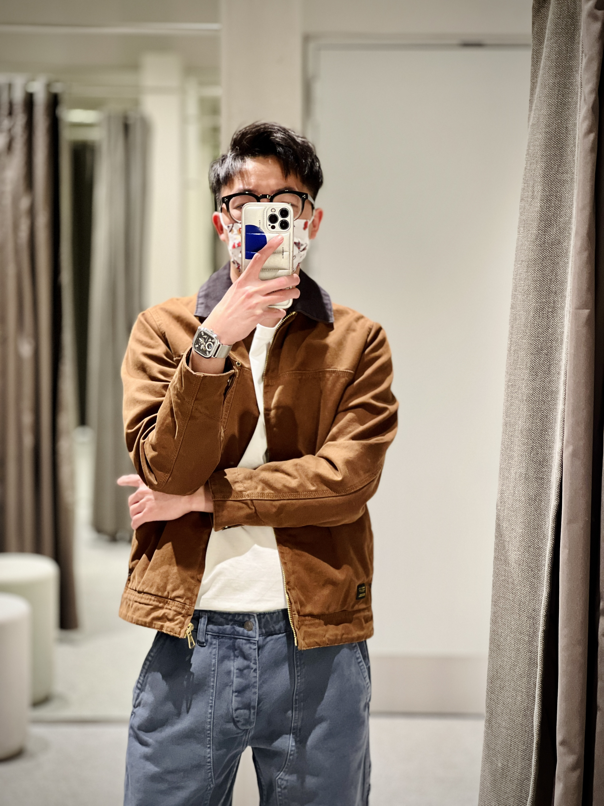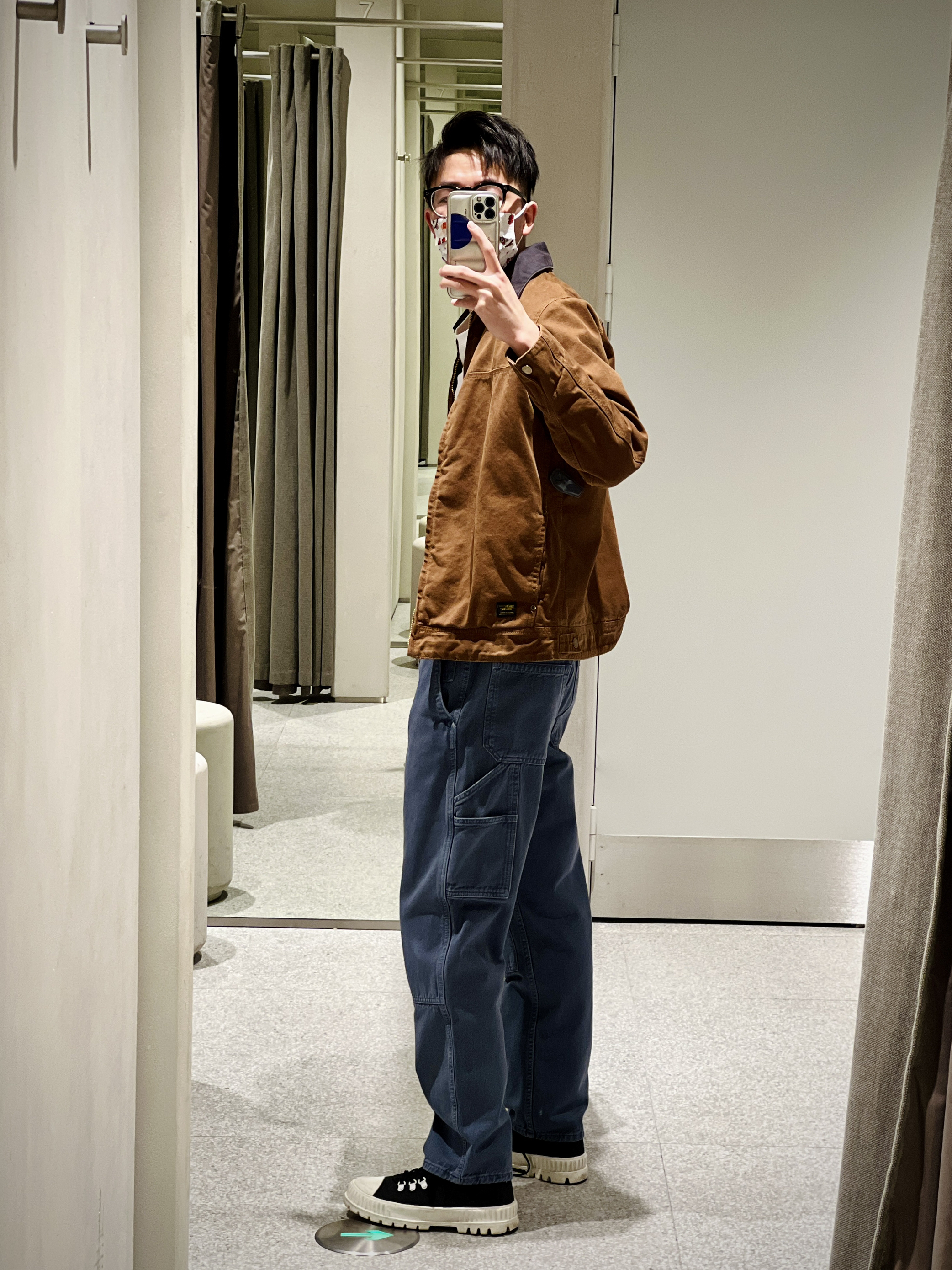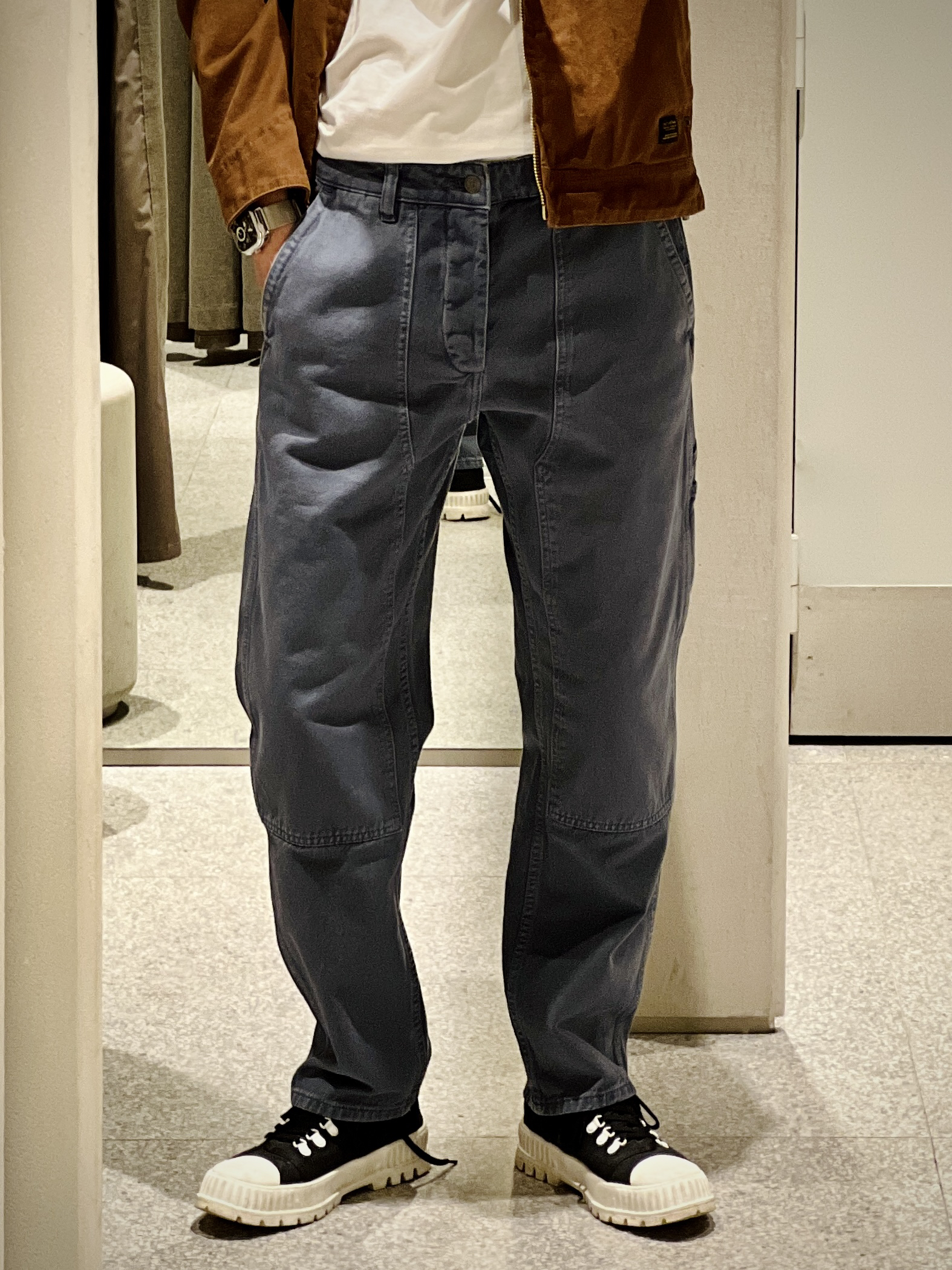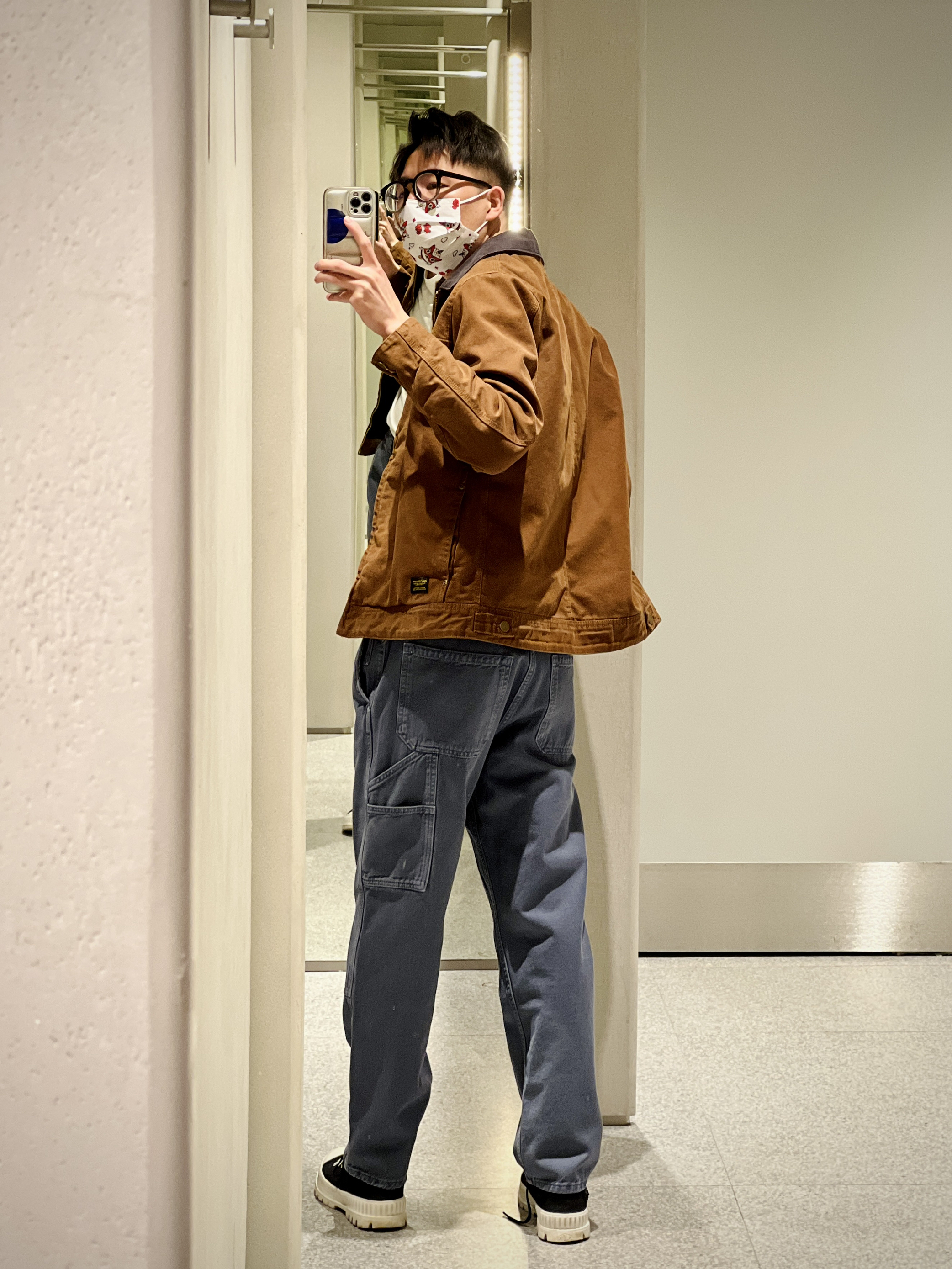 拼接棉服夹克外套 7446/400 棉服衬里 撞色拼接灯芯绒翻领 水洗做旧的效果 有carhartt的味儿 口袋饰工装裤 5862/401 前后侧都有贴袋的设计 水洗做旧的灰蓝色 相对修身的锥形版型 显高且精神 内搭白T干净清算 妥妥的美式复古穿搭