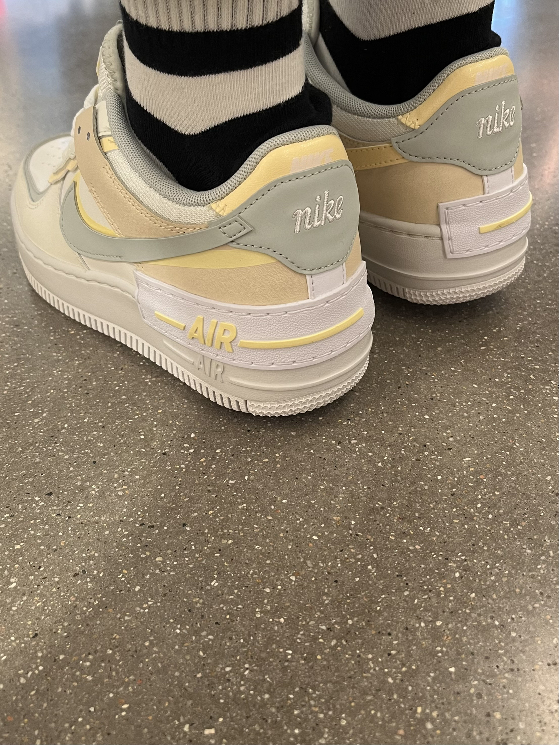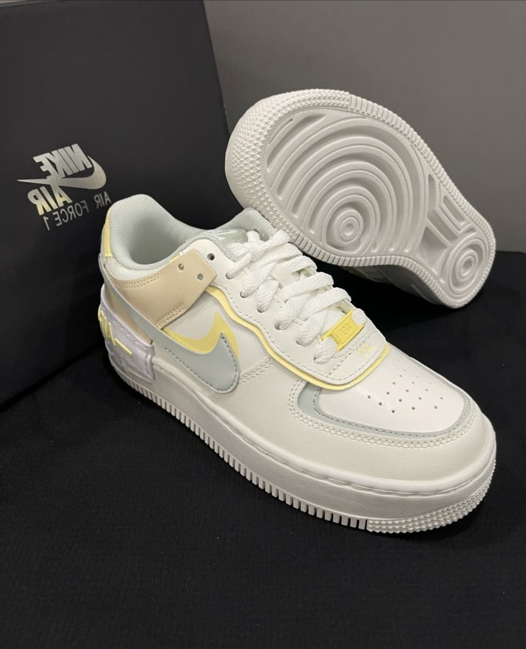 🤩海盐马卡龙AF1,上脚效果很哇塞呀,毕竟是青春有活力的配色,而且新款还有折扣很香呢‼️ 👟Nike Air Force 1 Low Shadow“Citron Tint”低帮 板鞋 女款 白色 ✔️重叠解构设计的空军,豆沙灰绿和淡黄色组成的双钩,柔和的冰淇淋奶油色调,,整体配色方案很小清新,一年四季都很适合~ ➕加厚增高的中底,很显腿长,比纯白空军重量上轻很多,而且脚感很柔软舒适!!! ✅214...