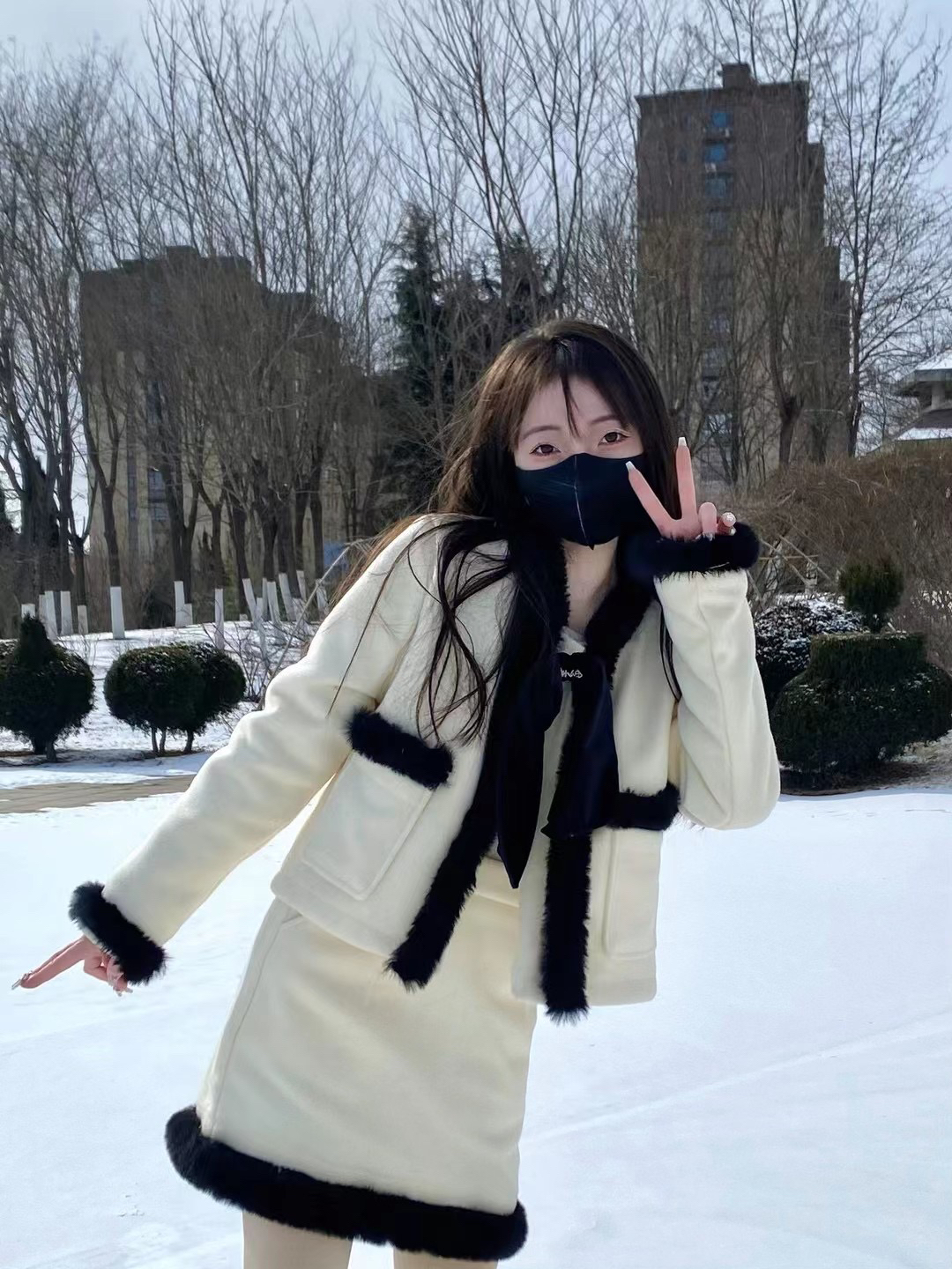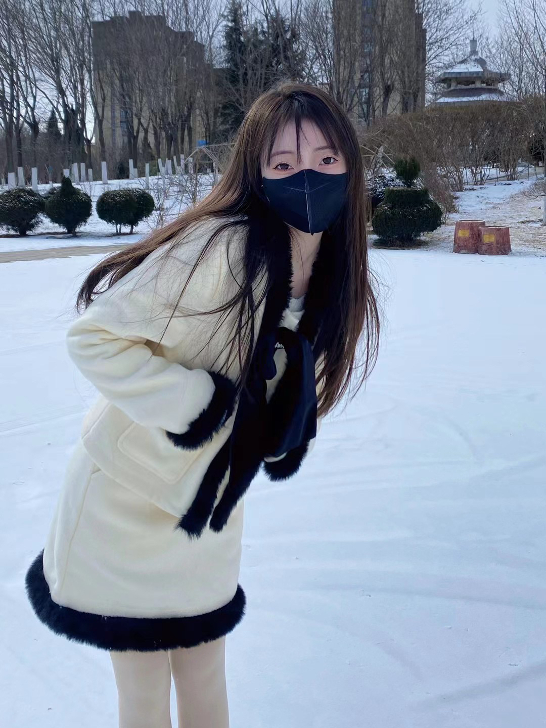 套装永远是最省心的搭配 完全不需要为穿搭费头脑 冬天只需要搭一件外套就OK啦 脱下外套依然是大美女一个