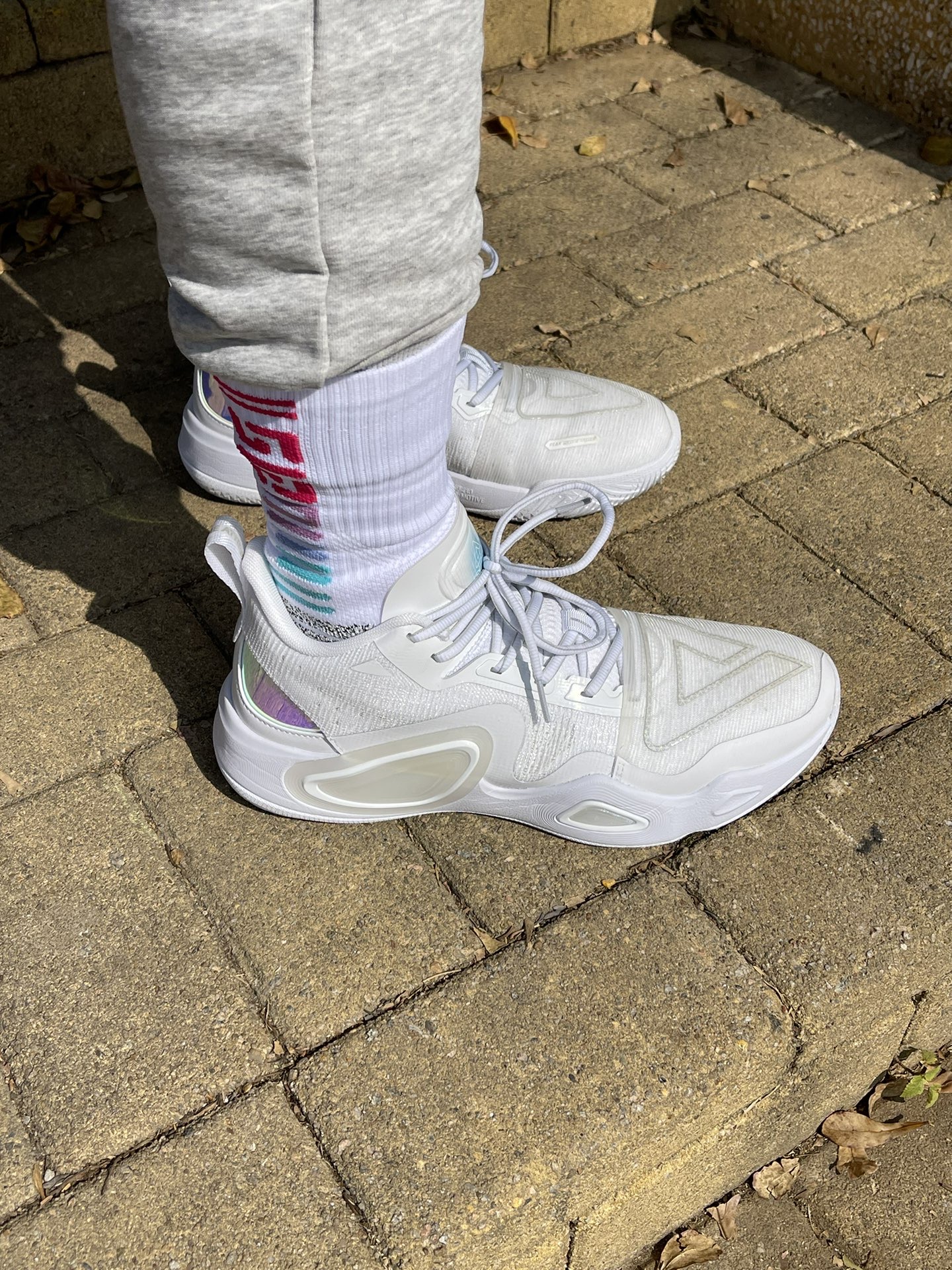 有一说一真的没想到那么好看!尤其是第一视角看下去,颜值真的很高!纯白配色yyds 上脚体验绝对能感受到与1代的差距,我的脚型穿1代码数不好选择,这回鞋楦终于适合了,比一代进步了很多!#维金斯天赋玩家 #少林寺穿搭