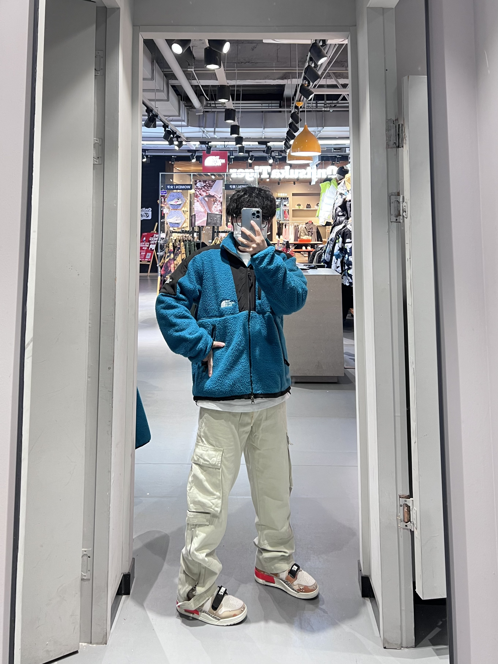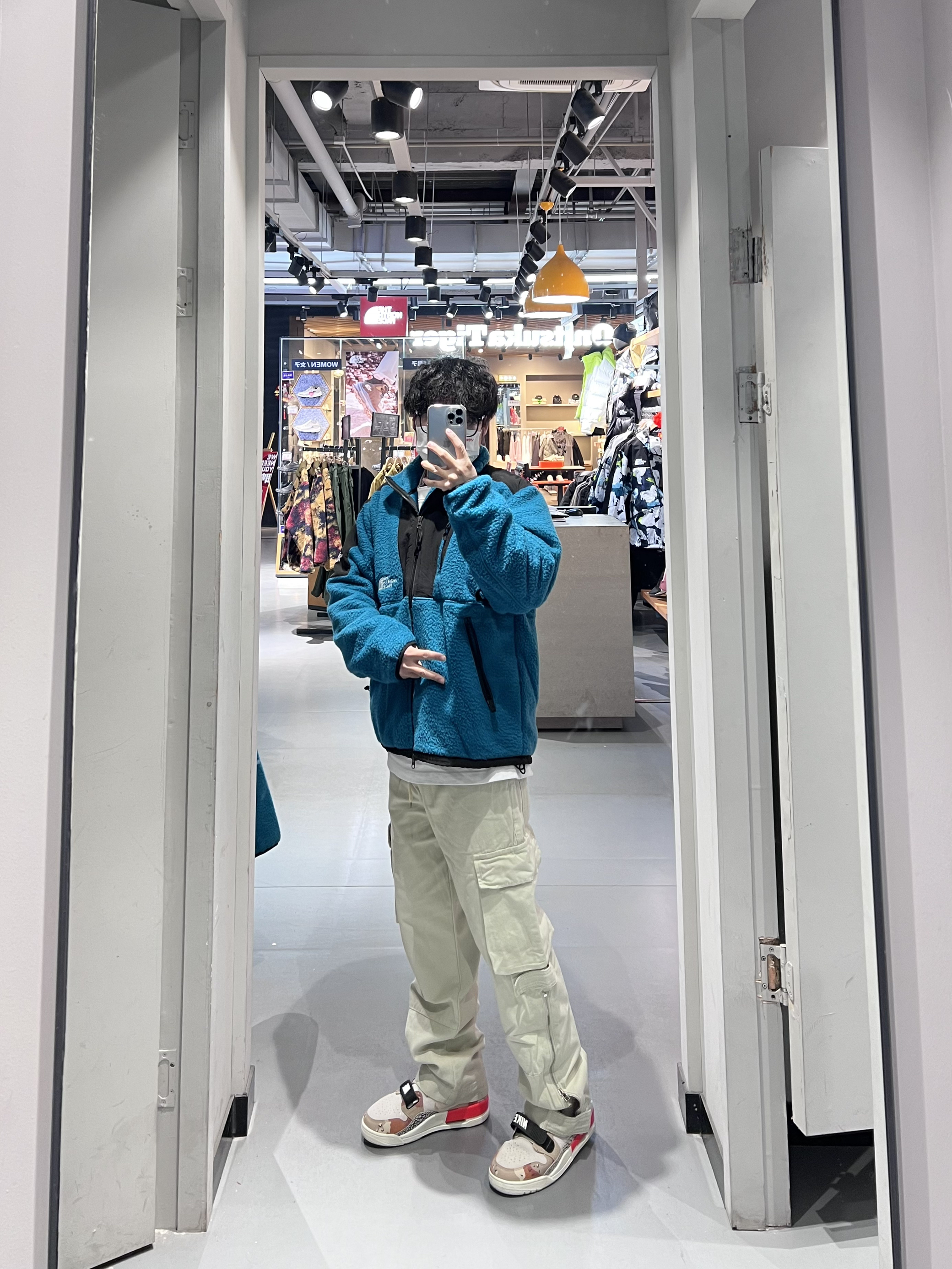 今日穿搭分享🎉 THE NORTH FACE 蓝色抓绒外套 水湖蓝色真的超显白啊❗️快来狠狠的爱它 北面惯用的拼接设计简单的裁剪早就帅气的它 主色调水湖蓝色超显白显气质,少量黑色点缀 主要这款抓绒穿着很舒服哦,也可当内胆穿着 早春穿搭💯内搭一件白Tee帅气的呢❗️ 搭配一条宾狮诺白色工装裤尽显腿长哈哈哈🤩 裤脚的开衩拉链真的很百搭各种鞋子哦 最最最后来一双显高显瘦的AJ312沙漠迷彩 在新年必是最...