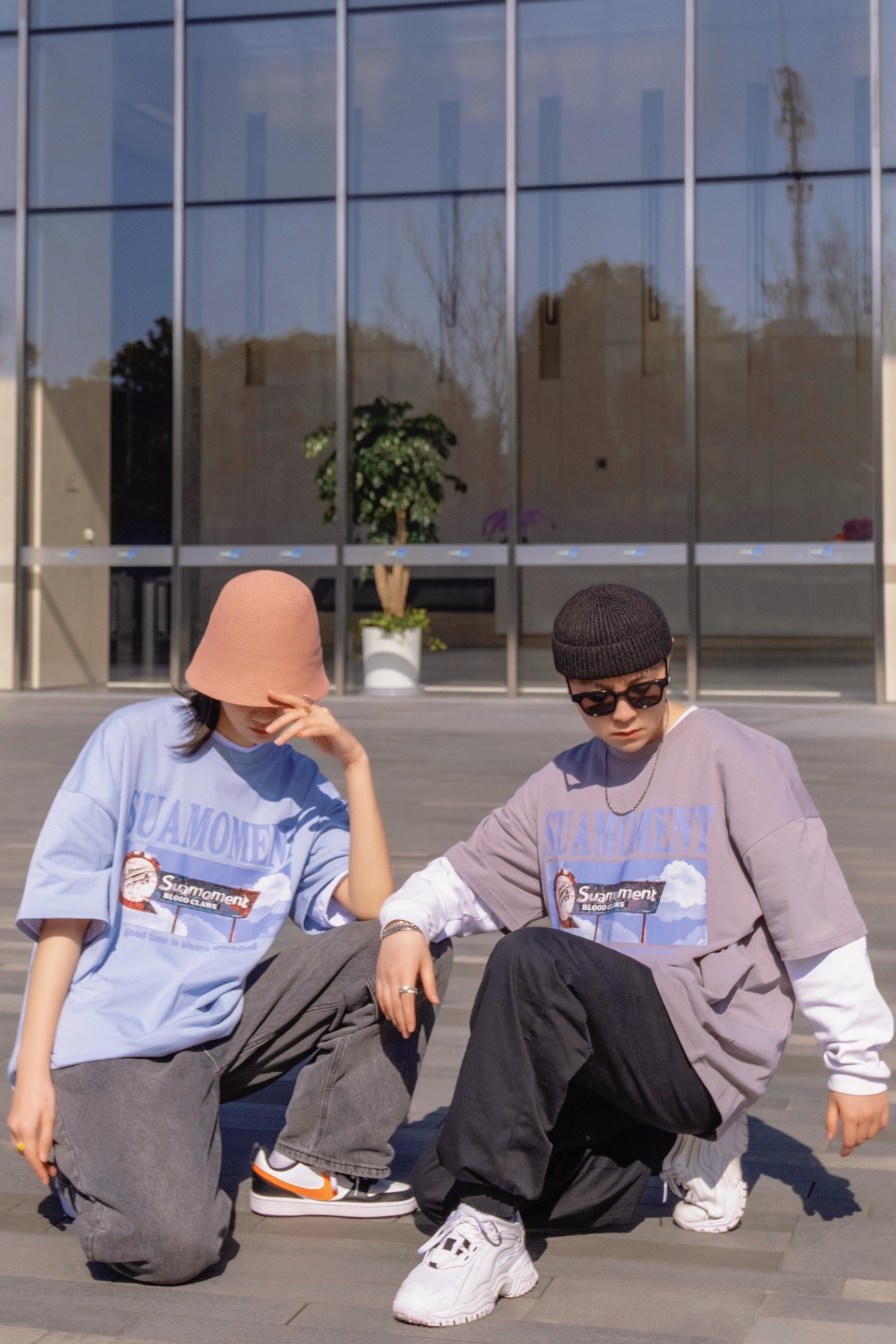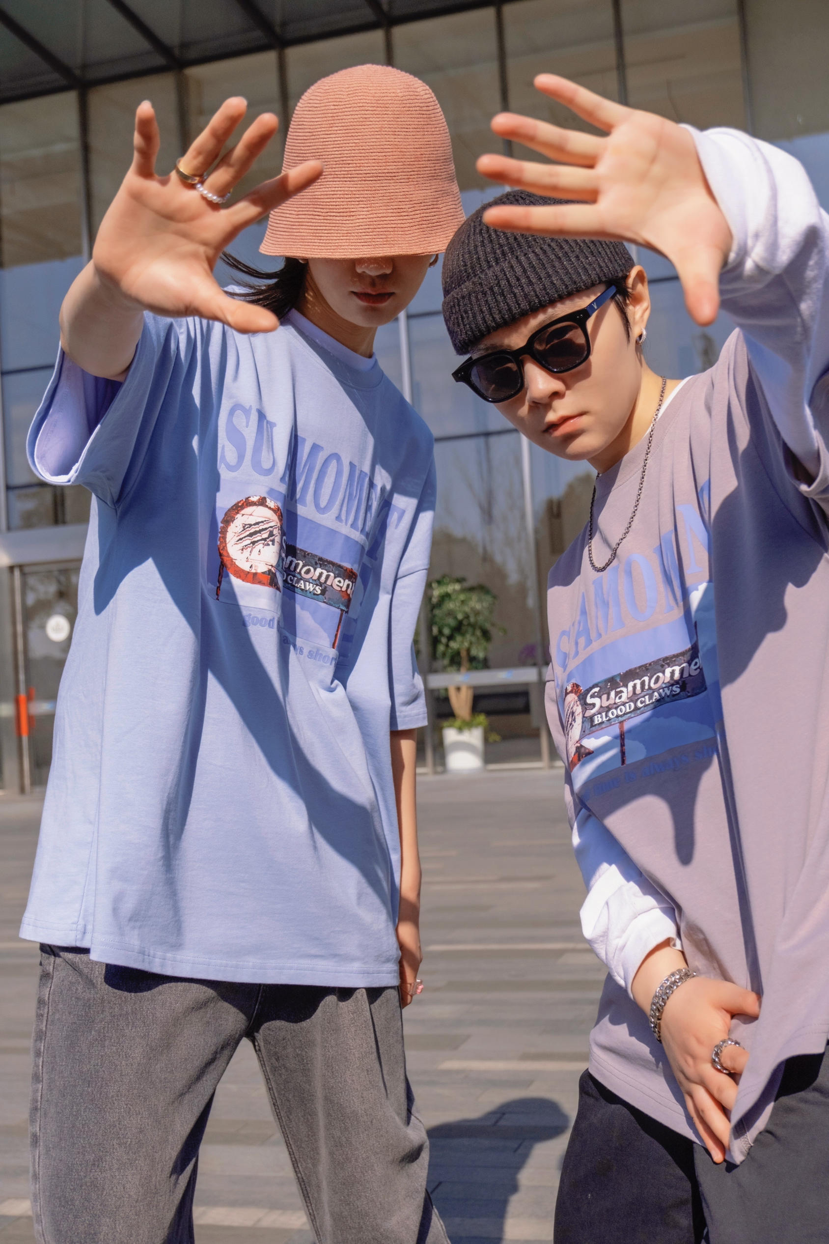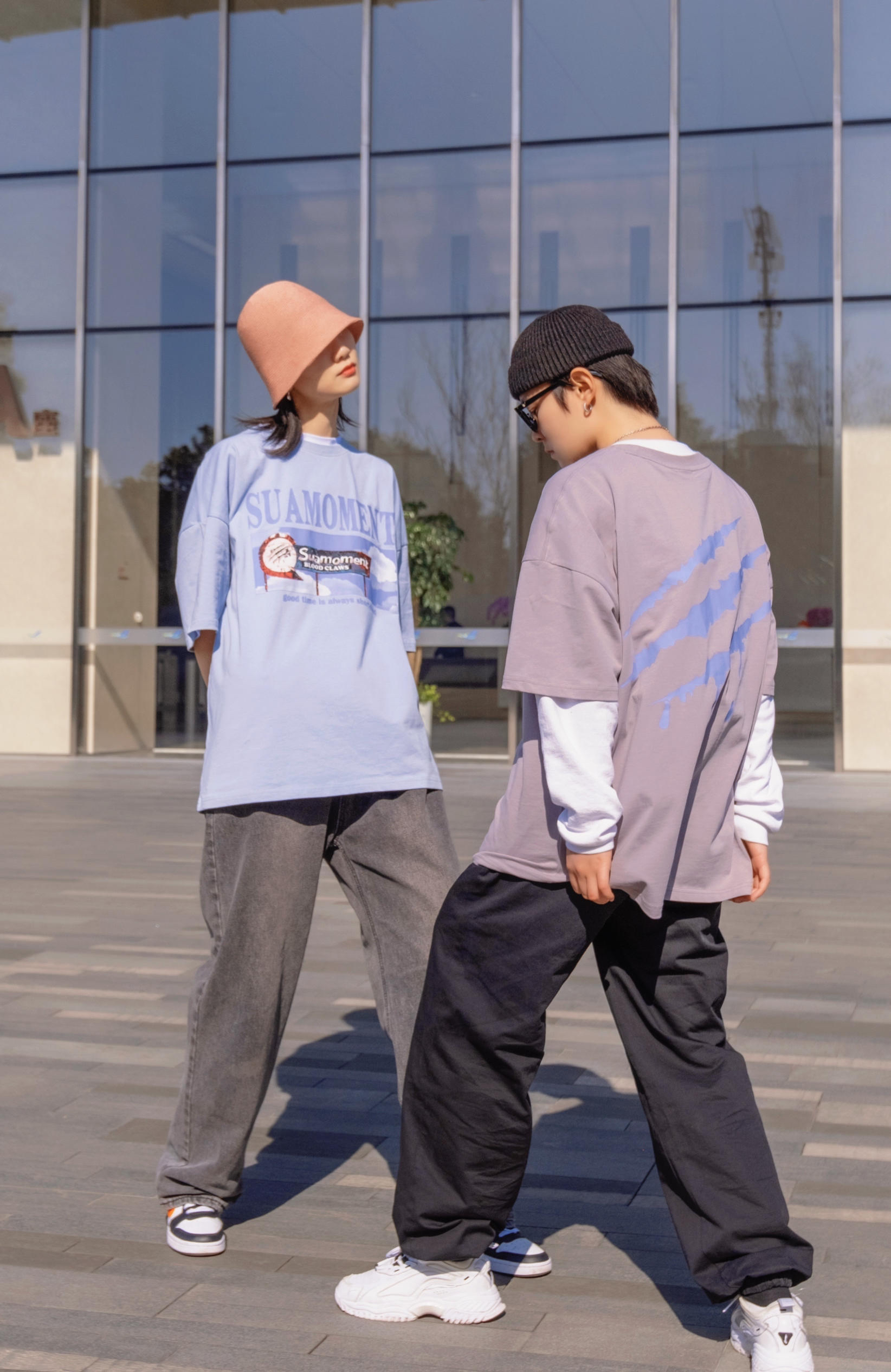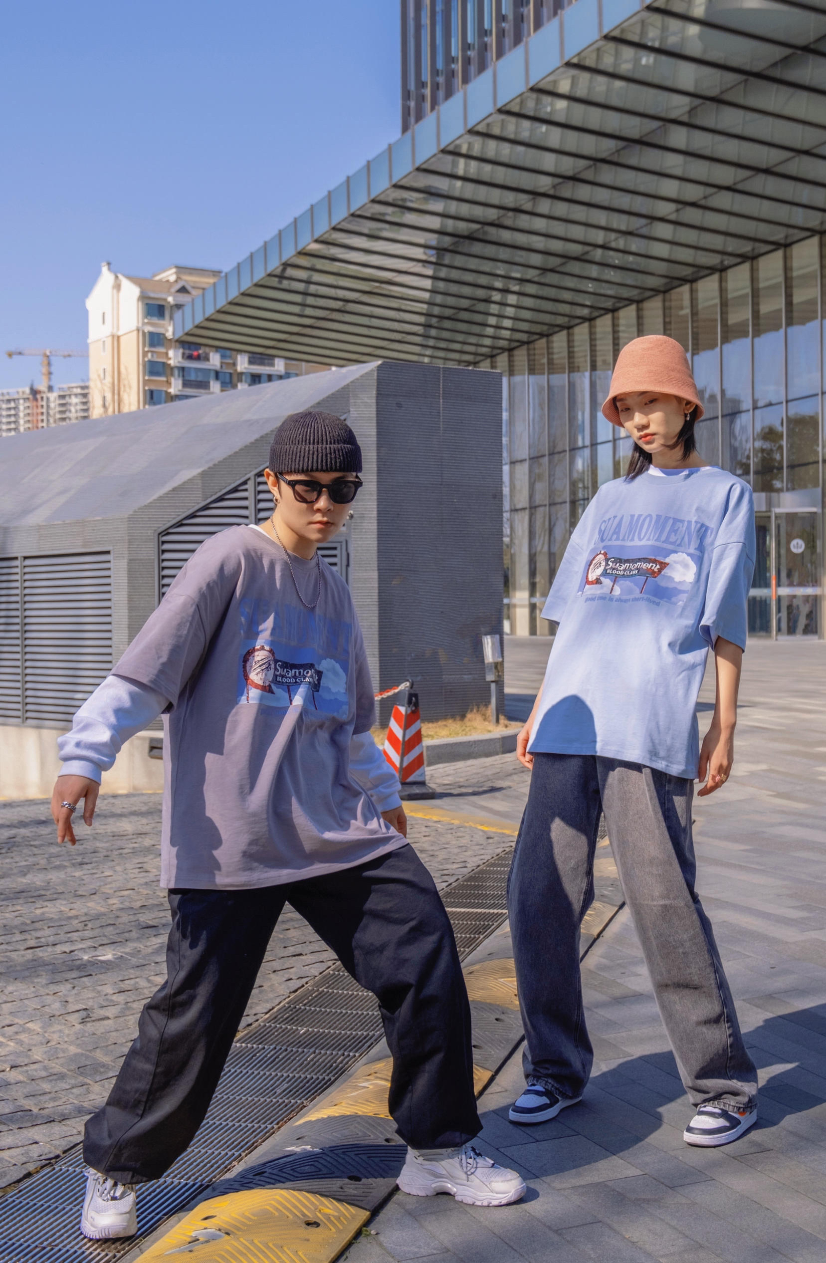 比起穿得一摸一样 情人节约会穿同款不同色也是个不错的选择 穿搭指南: 今天是低饱和的马卡龙色系 就跟色调一样 想马卡龙一样甜甜的太适合七夕来穿了 👧浅蓝色搭配水洗老爹牛仔裤 来顶亮色渔夫帽 👦浅灰色搭配黑色休闲裤 加顶黑色瓜皮帽 不同的搭配但都是偏街头休闲的 情人节出去玩 这样穿就够了
