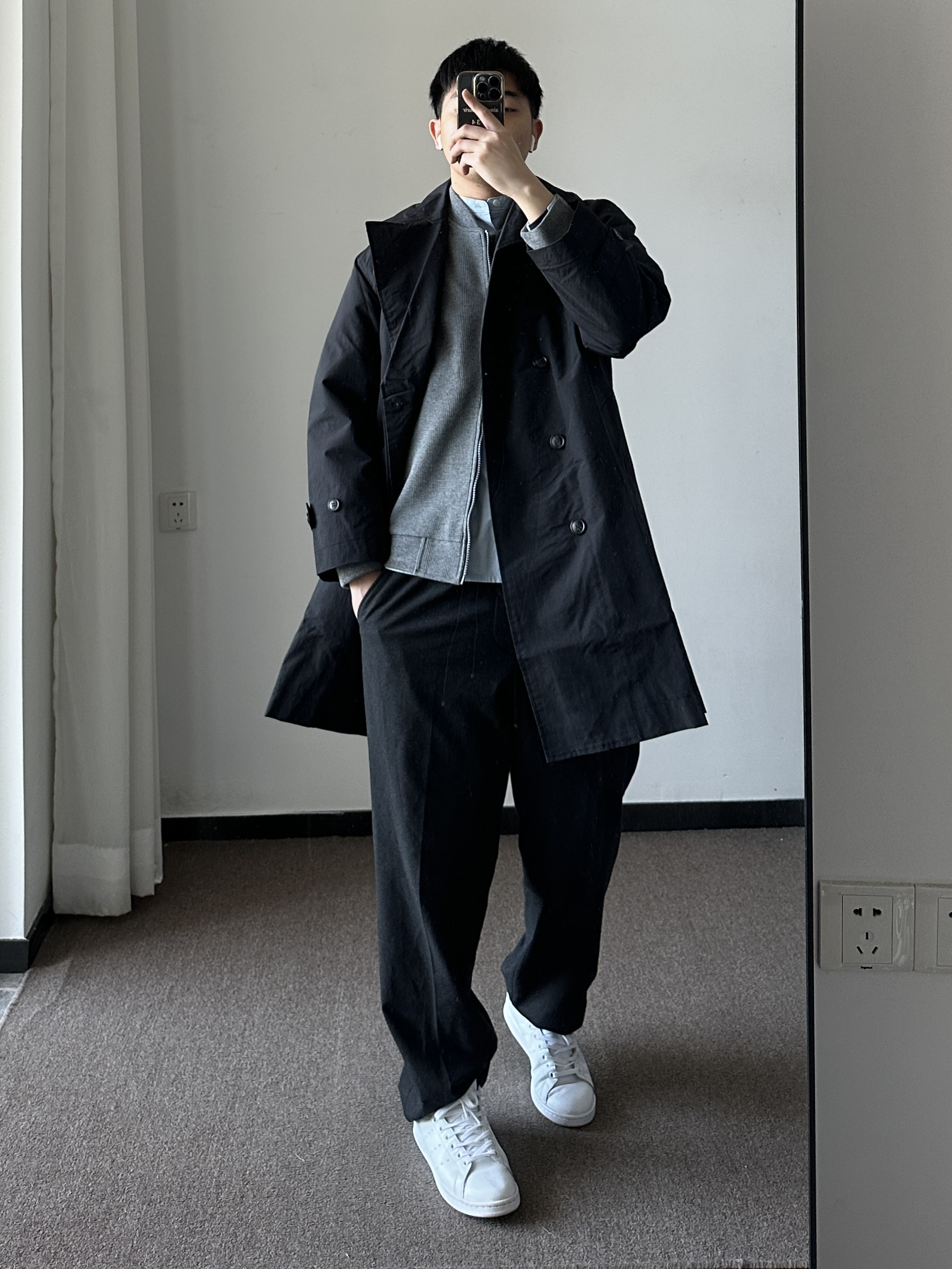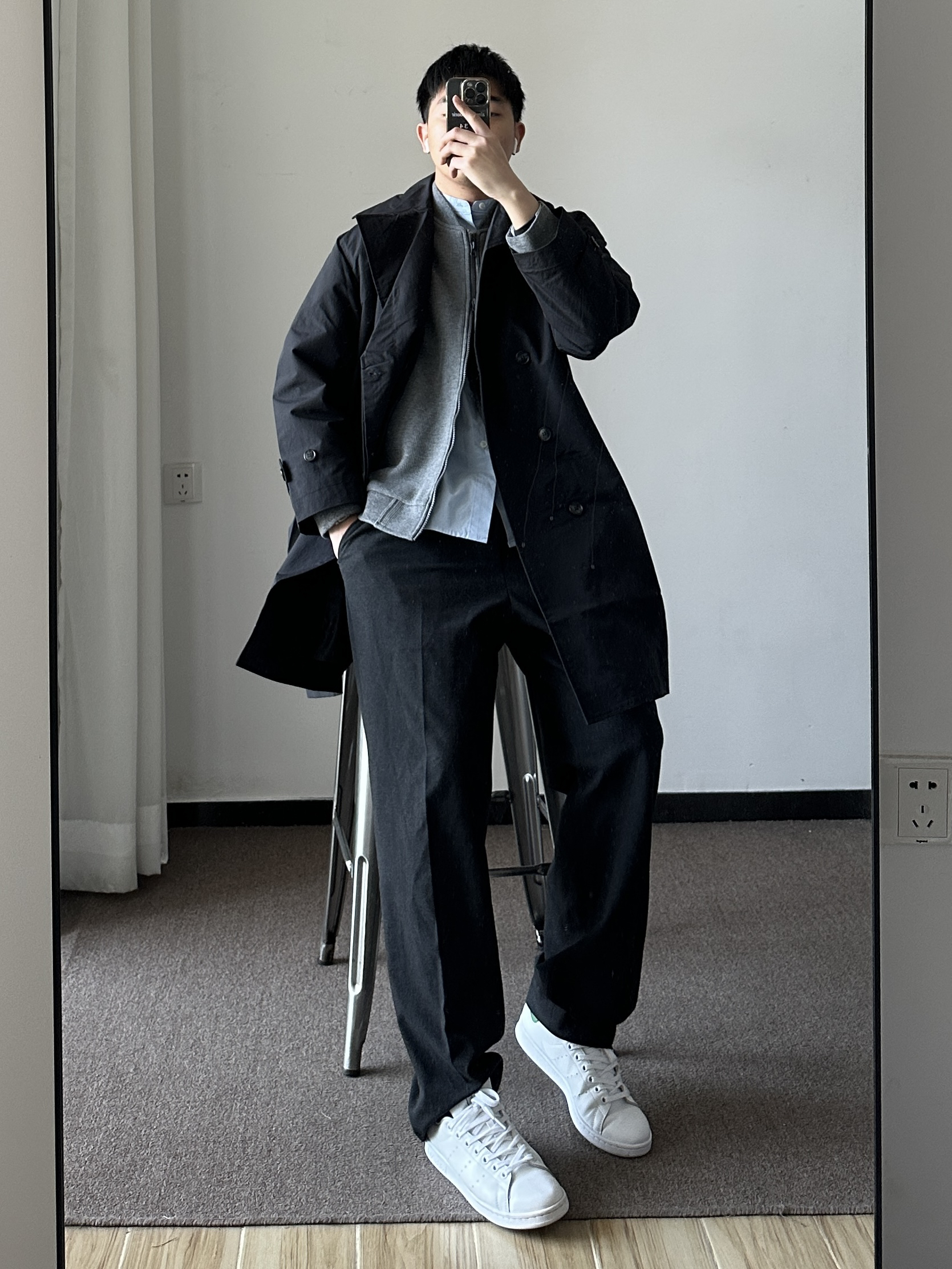 170男生穿搭 | 初秋百搭字母卫衣搭配分享 素人也能好看系列~ 174cm/65kg 🧥-经典的黑白灰,日常通勤、简约中性风~ 👖-折线深灰西裤。 👟- stan Smith