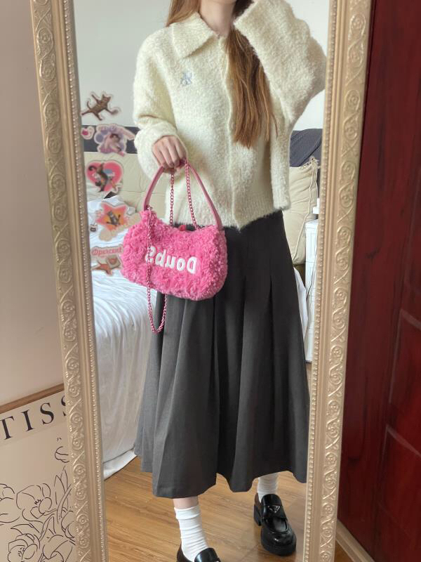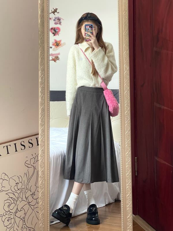 超爱🥰奶油白色针织开衫毛衣 毛衣胸口🈶️蓝色的字母刺绣🪡 搭配半身裙太显温润柔和气质了 圈粉了~软糯糯的毛衣质感好喜欢