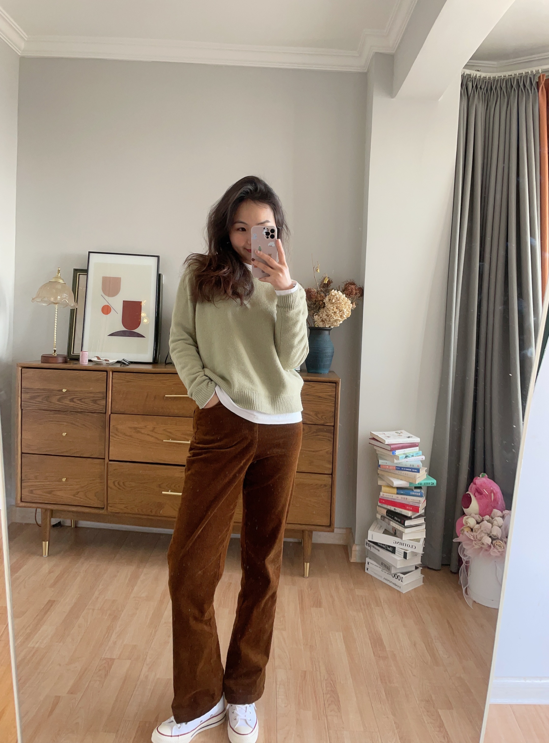 已经迫不及待的期待春天了, 入了一件奶绿色羊毛毛衣, 今天穿去单位,被同事夸了一天,显白显气色, 颜色就是很嫩的绿色, 仿佛闻到了春天的味道~ 百分百羊毛的,领完券到手204r💰 感觉价格也还可以😌 天气渐渐转暖,可以穿美美的出游啦😁 毛衣:🍑iWiNG用心做衣服 裤子:🍑法丝璐旗舰店 👟:匡威白色