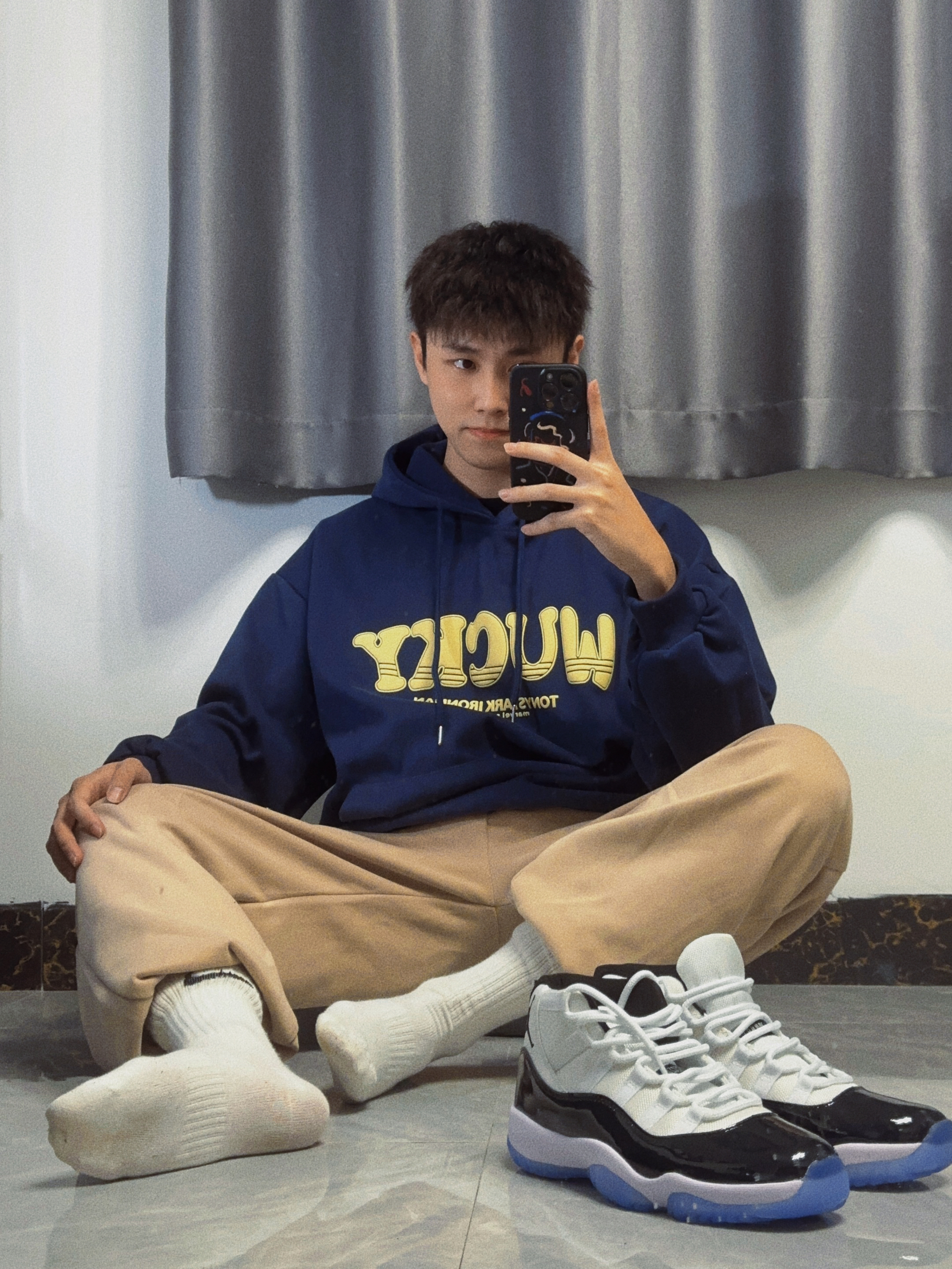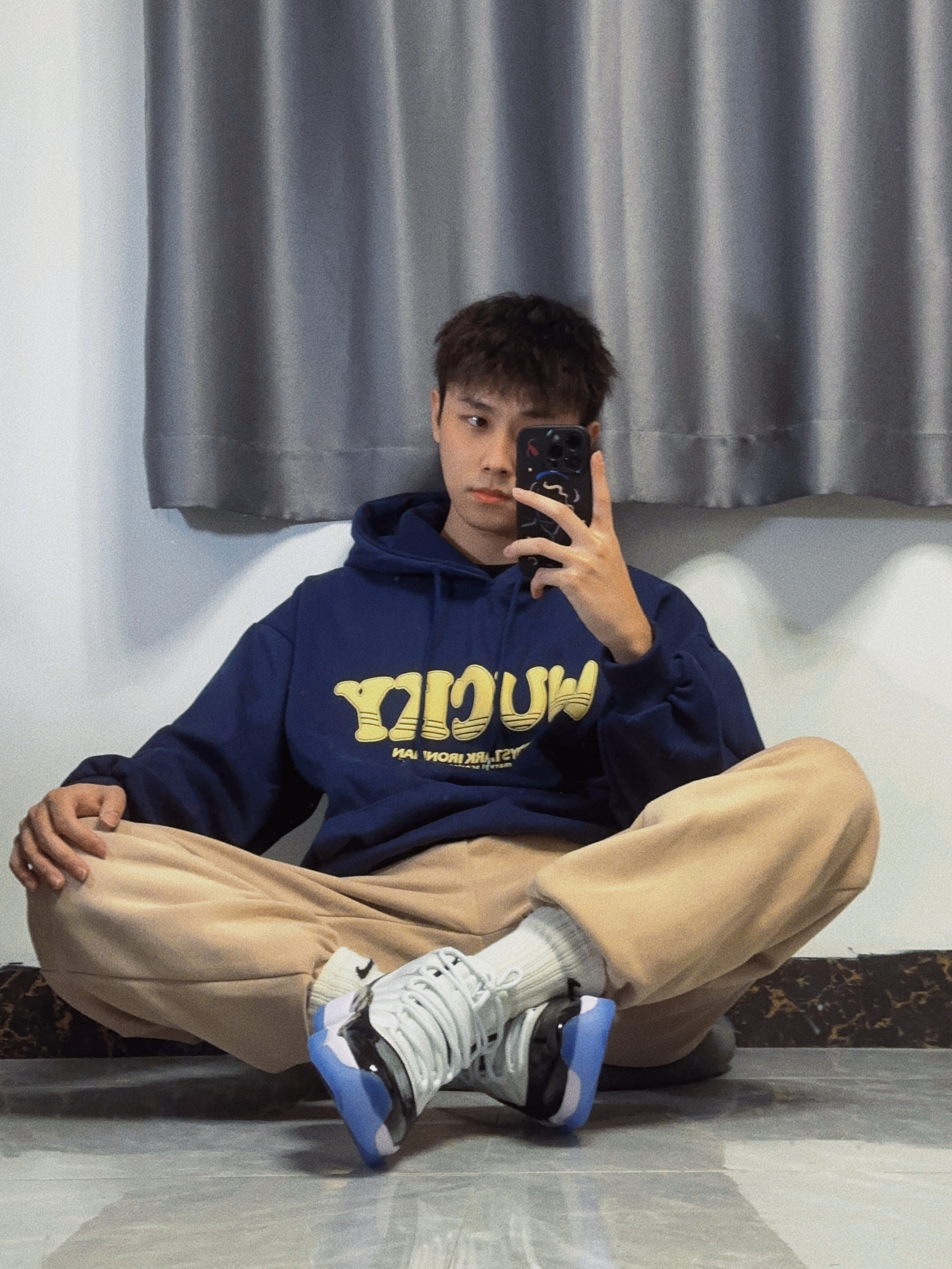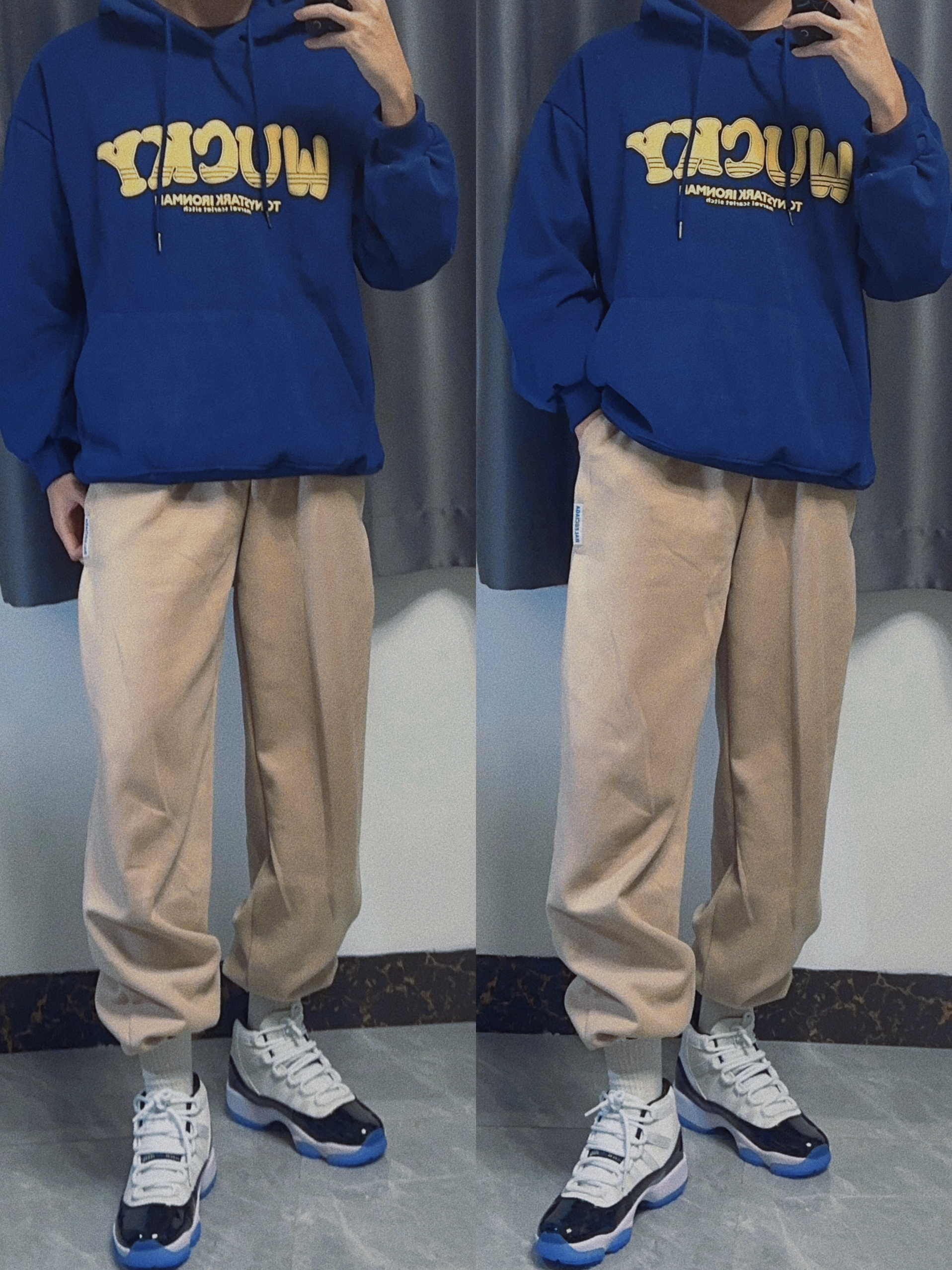 ✔️上衣:众山小 ✔️裤子:众山小 ✔️袜子:Nike ✔️鞋子:AJ11 —— ℹ️前段时间很火的少林寺穿搭我是学明白啦,但是很讲究裤子的搭配,搭得不好就会显腿短,这条卡其色裤子真的忒舒服!垂感很好,而且是束腿的,外面套上袜子也不会臃肿!重点很显腿长! ℹ️上衣搭了一件他们家的位置,深蓝色大logo,简约又高级,凸显少年感,学生党可冲哈