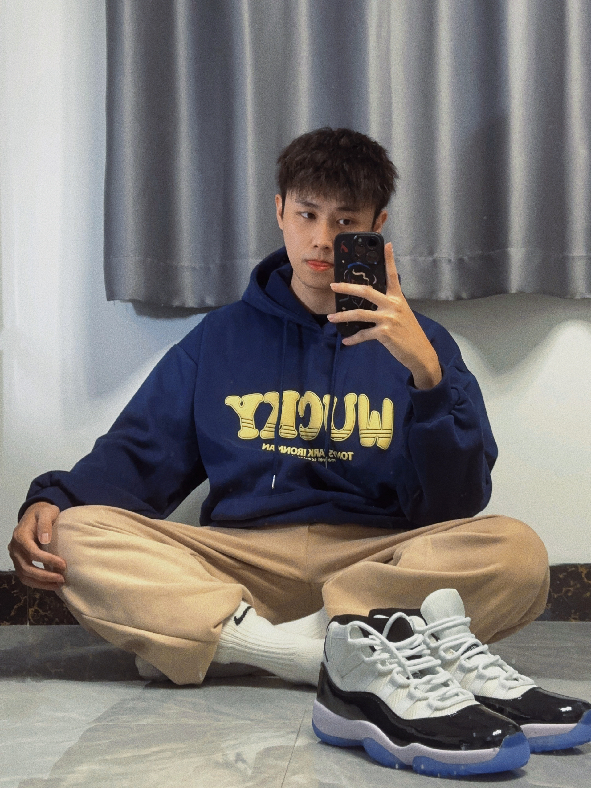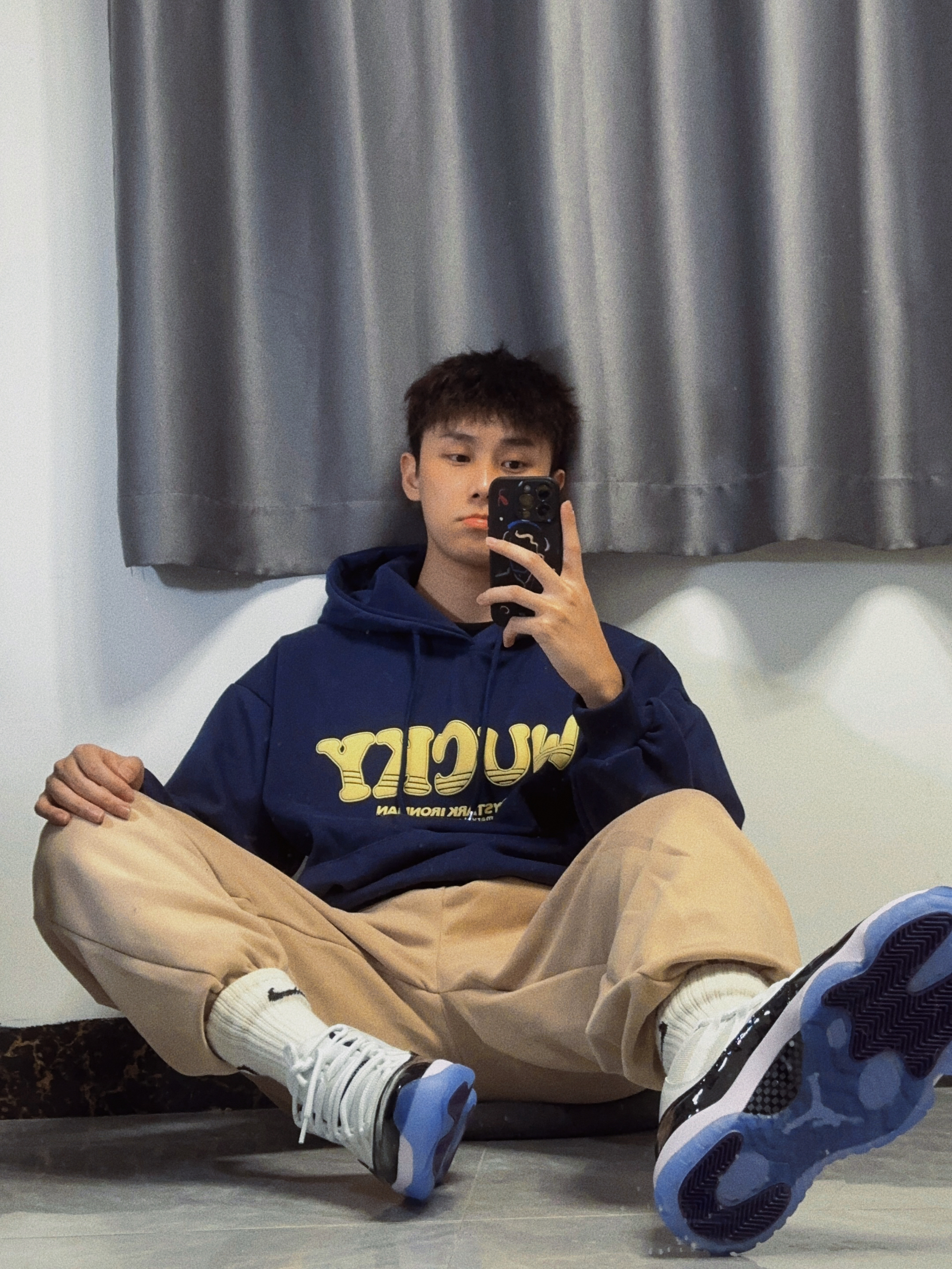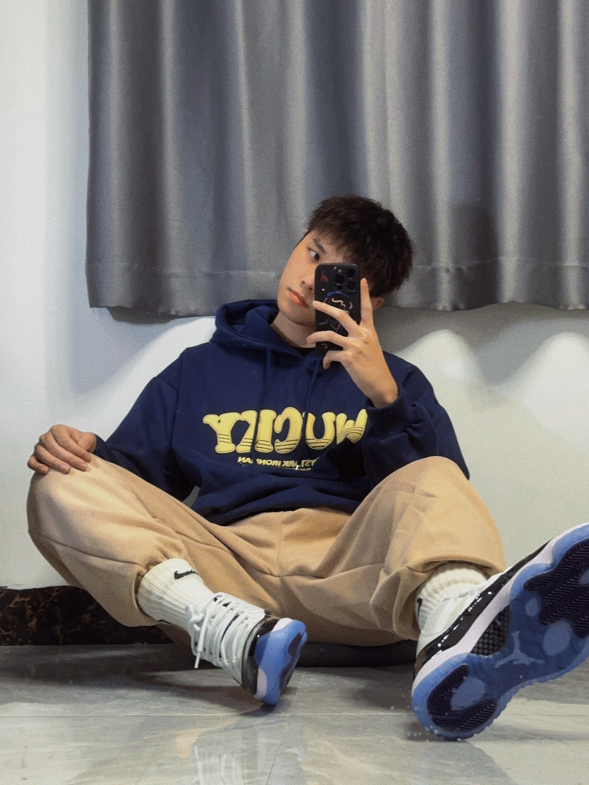 ✔️上衣:众山小 ✔️裤子:众山小 ✔️袜子:Nike ✔️鞋子:AJ11 —— ℹ️前段时间很火的少林寺穿搭我是学明白啦,但是很讲究裤子的搭配,搭得不好就会显腿短,这条卡其色裤子真的忒舒服!垂感很好,而且是束腿的,外面套上袜子也不会臃肿!重点很显腿长! ℹ️上衣搭了一件他们家的位置,深蓝色大logo,简约又高级,凸显少年感,学生党可冲哈