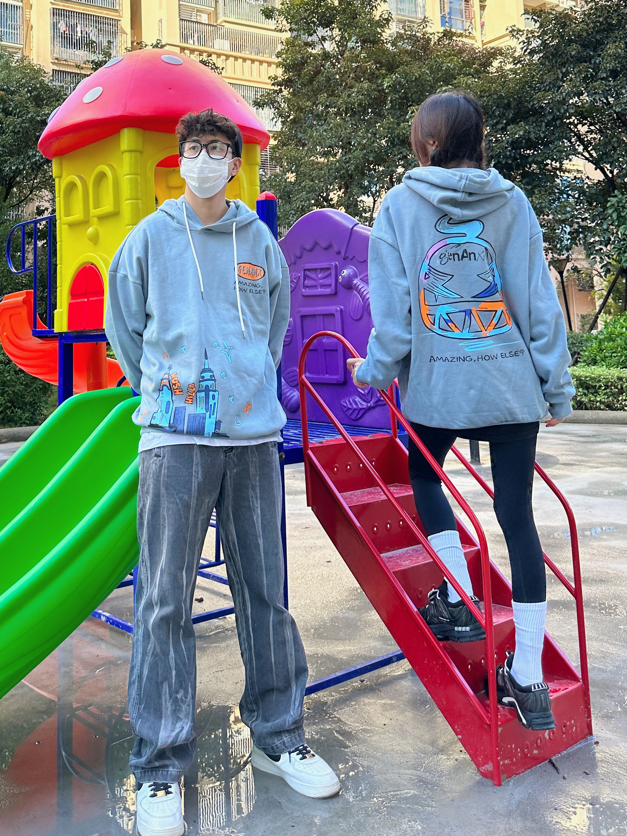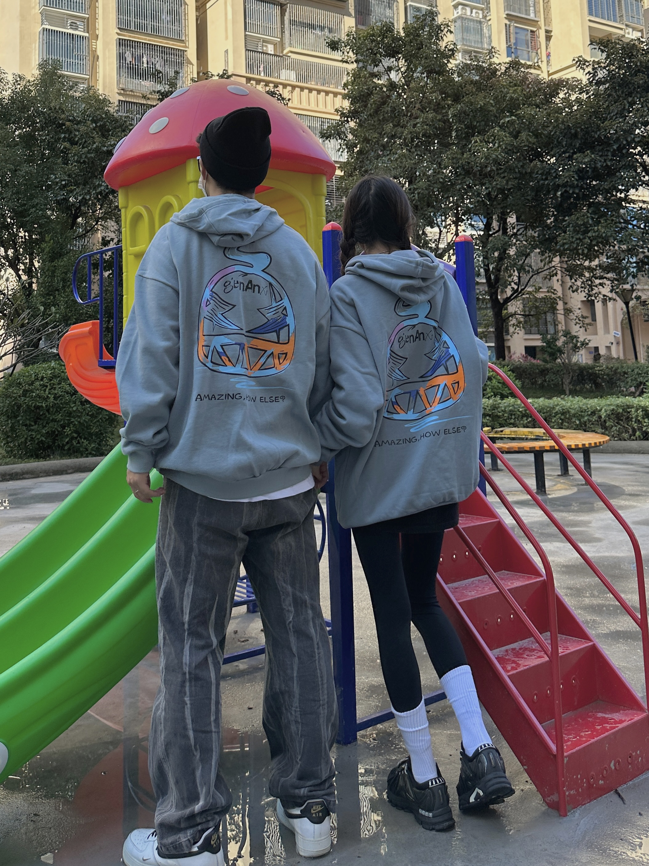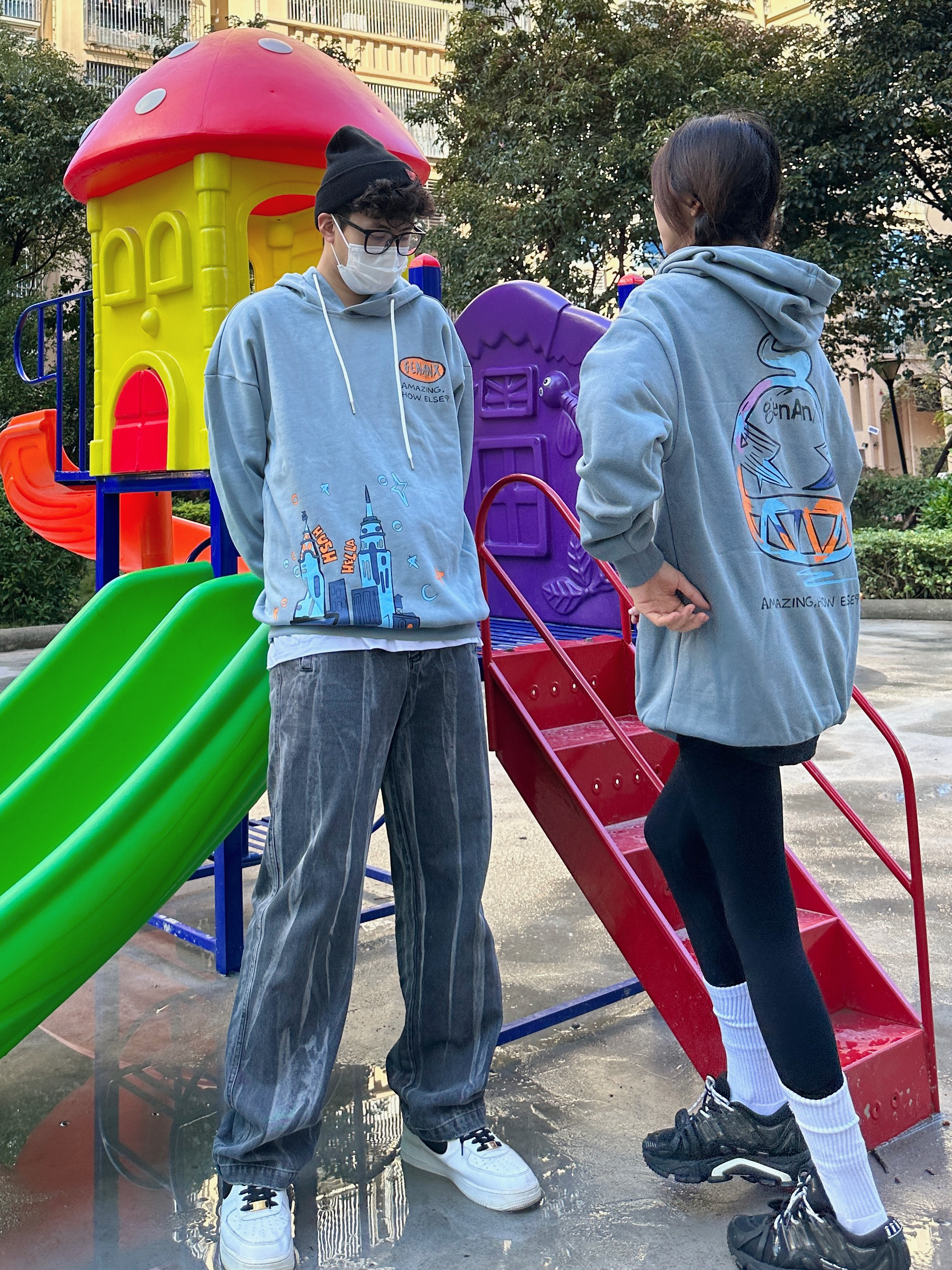 欢迎大噶来到我们情侣穿搭频道💗 👧:168/44 👦:182/70 冬天无论是内搭还是单穿都少不了连帽卫衣 最佳时尚单品~get到灰蓝色了耶 穿起来很🆒 卡通城堡🏯的图案 有点意思~ 喜欢版型好的卫衣 穿起来就很苏胡 加绒的设计在南方的冬天我觉得🉑️!