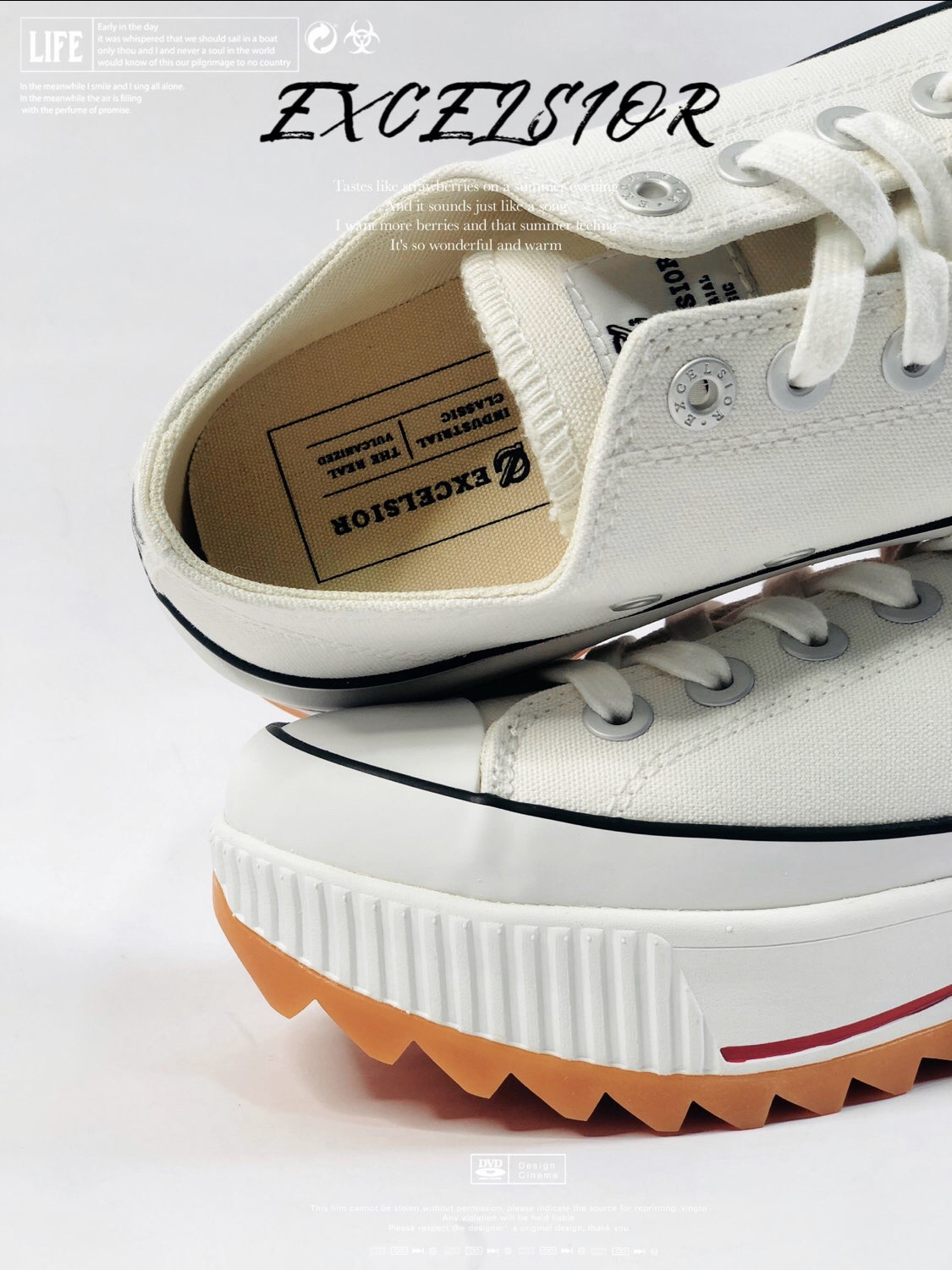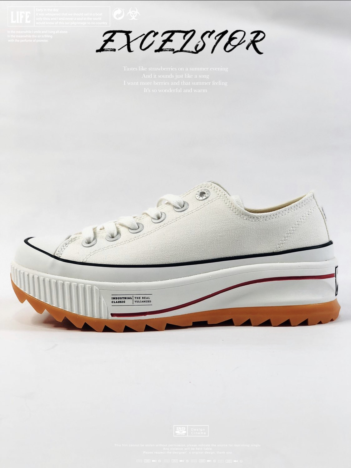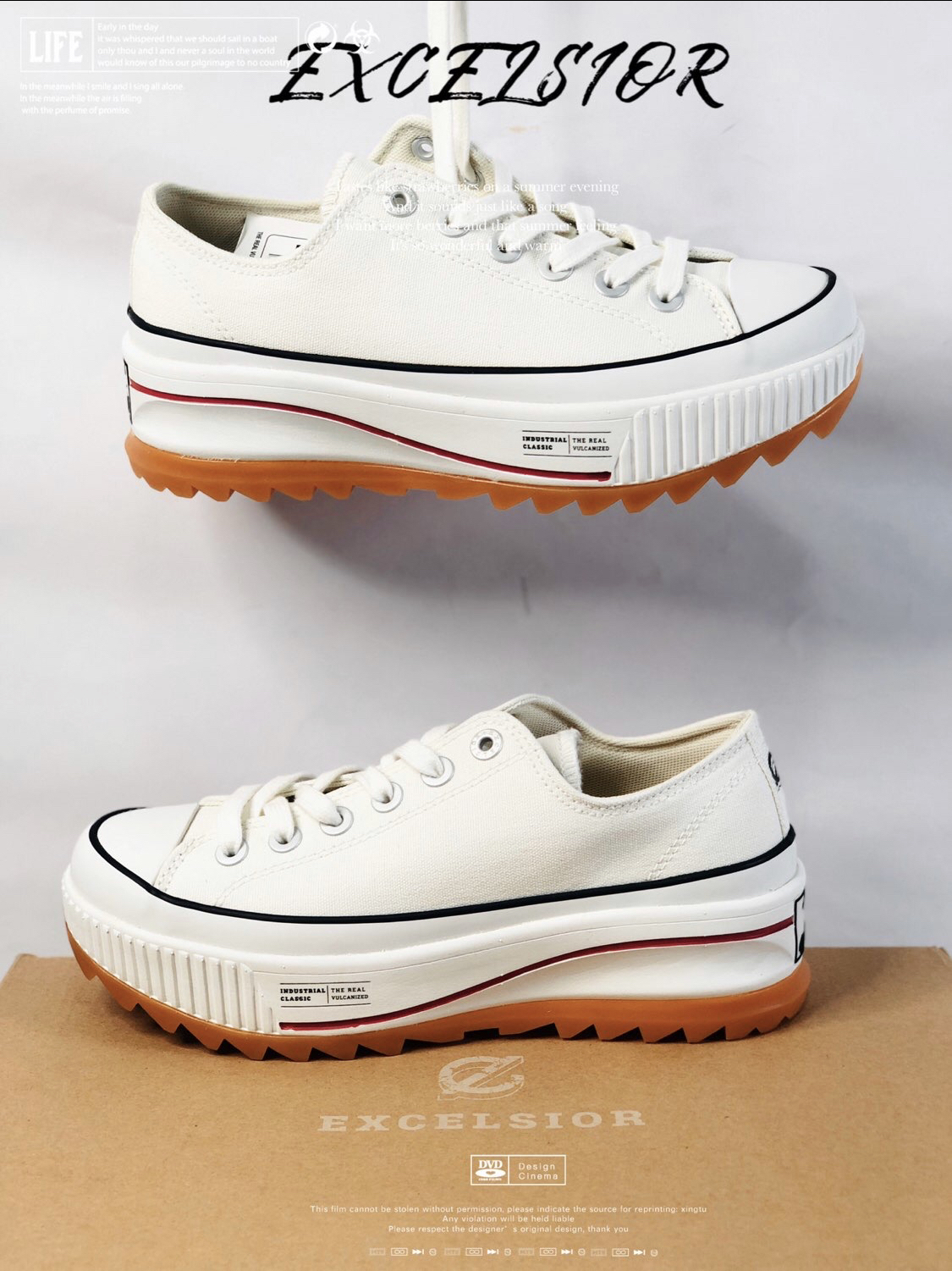 来自韩国🇰🇷EXCELSIOR 低帮厚底增高鞋 是这个夏季的新宠儿 以硫化工艺 为饼干鞋开山始祖 呈现的帆布鞋 此次 在设计规格上 加厚的后跟 提升脚部呵护 延续帆布鞋面提升透气舒适性能 加厚的 生胶大底 宽厚的齿痕 大幅度提升防滑属性 增高后的 大底 让女生脚更加显瘦显长