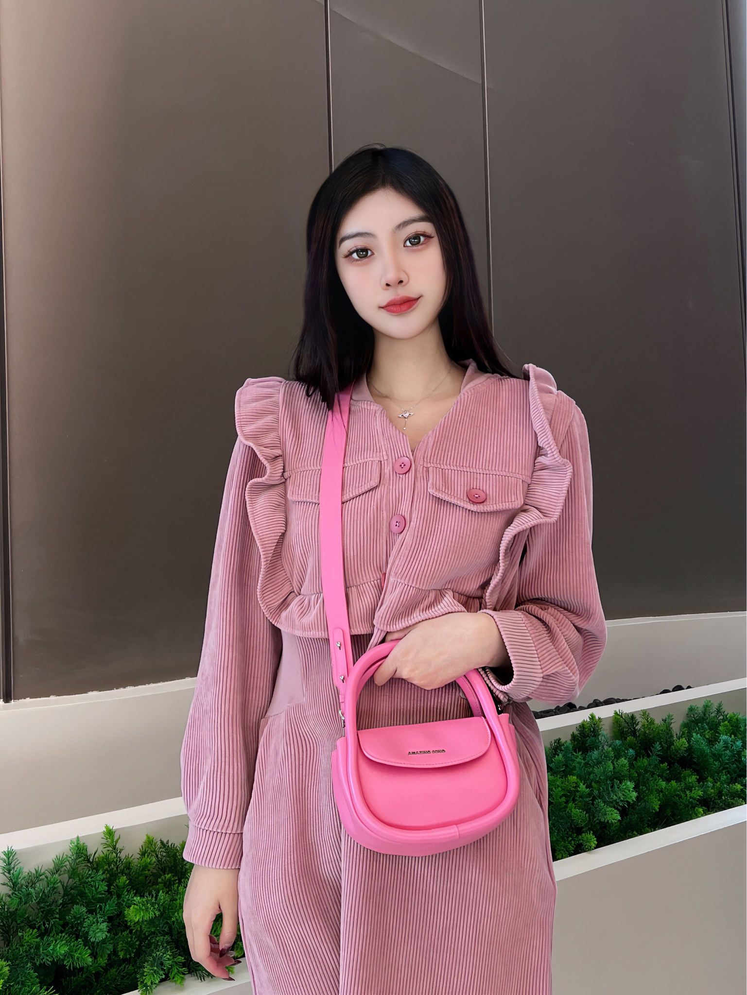 👜:AMAZING SONG软欧包真皮斜挎包 ⭐️来分享一下今日份的约会穿搭吧,情人节穿这身拿下他,粉嫩非常少女,穿了一件浅粉色的连衣裙,搭配了这款软软糯糯的软欧包,配色超级得多~ ⭐️最近很喜欢背它颜值高又吸睛,而且很日常,能装的东西也很多,不只可以装可爱哦,容量真的蛮大的,斜挎手拎都可以背,平时搭配同色系的穿搭或者是撞色搭配都很好看。情人节入手或送npy包治百病哦~