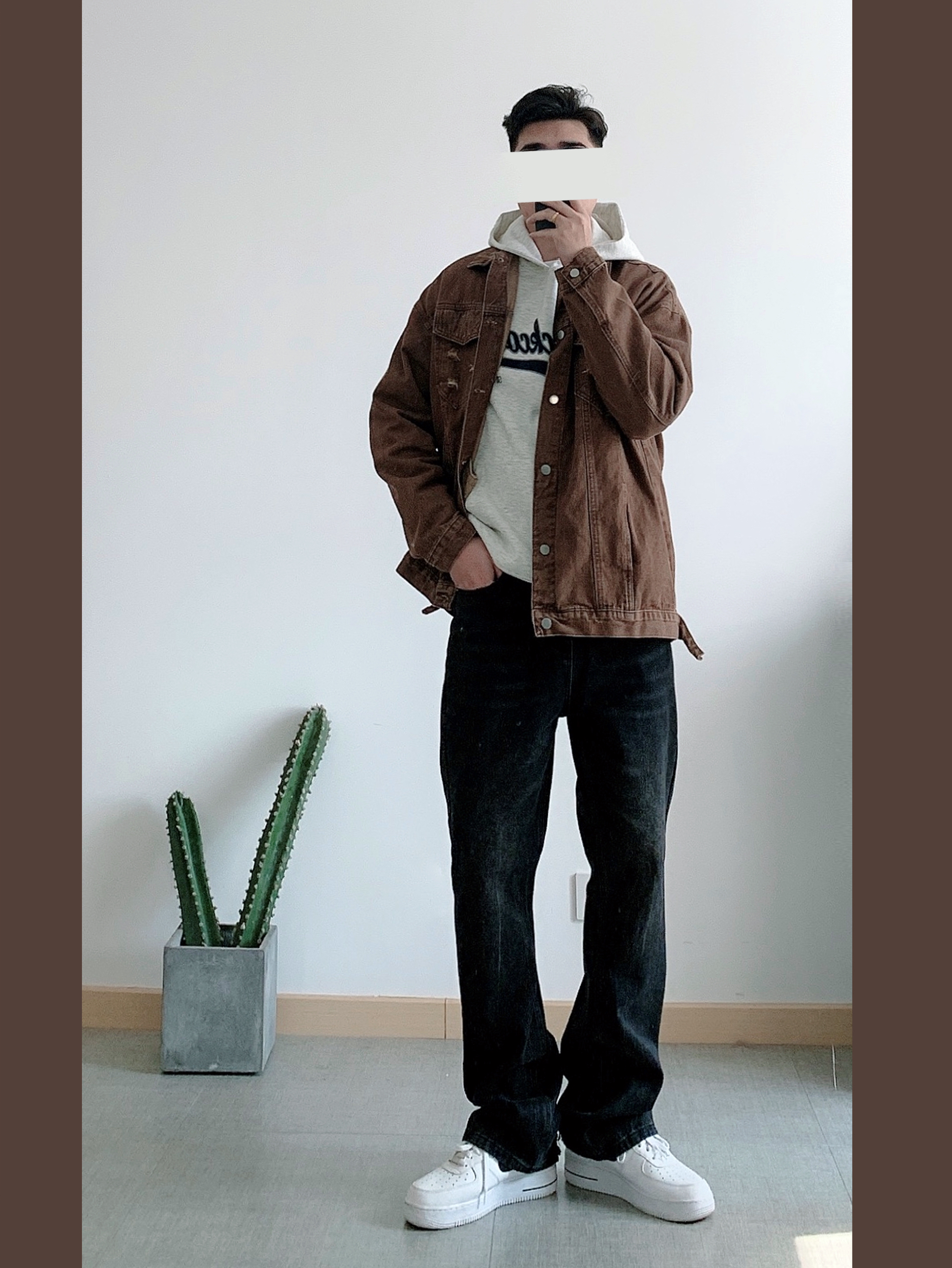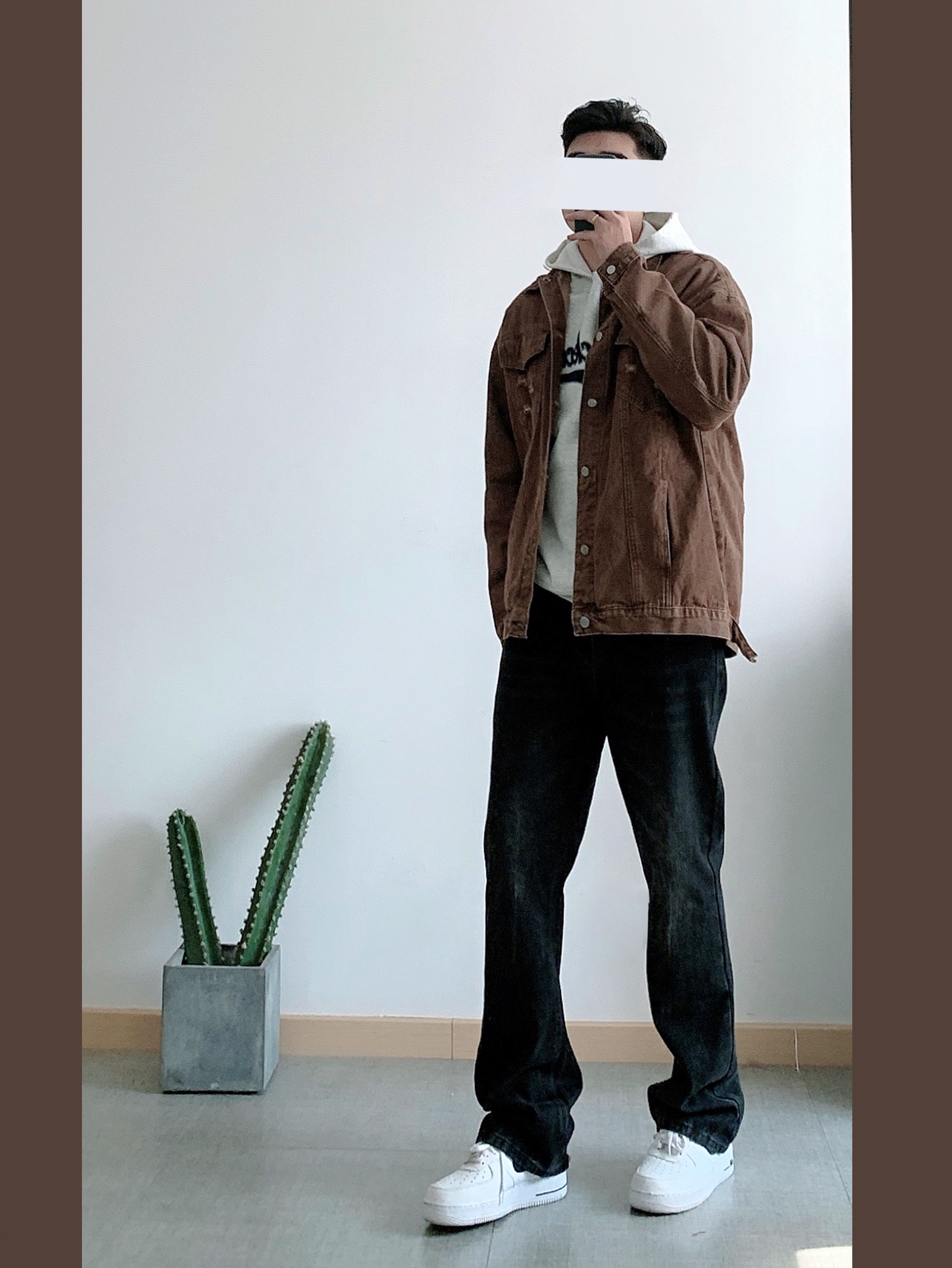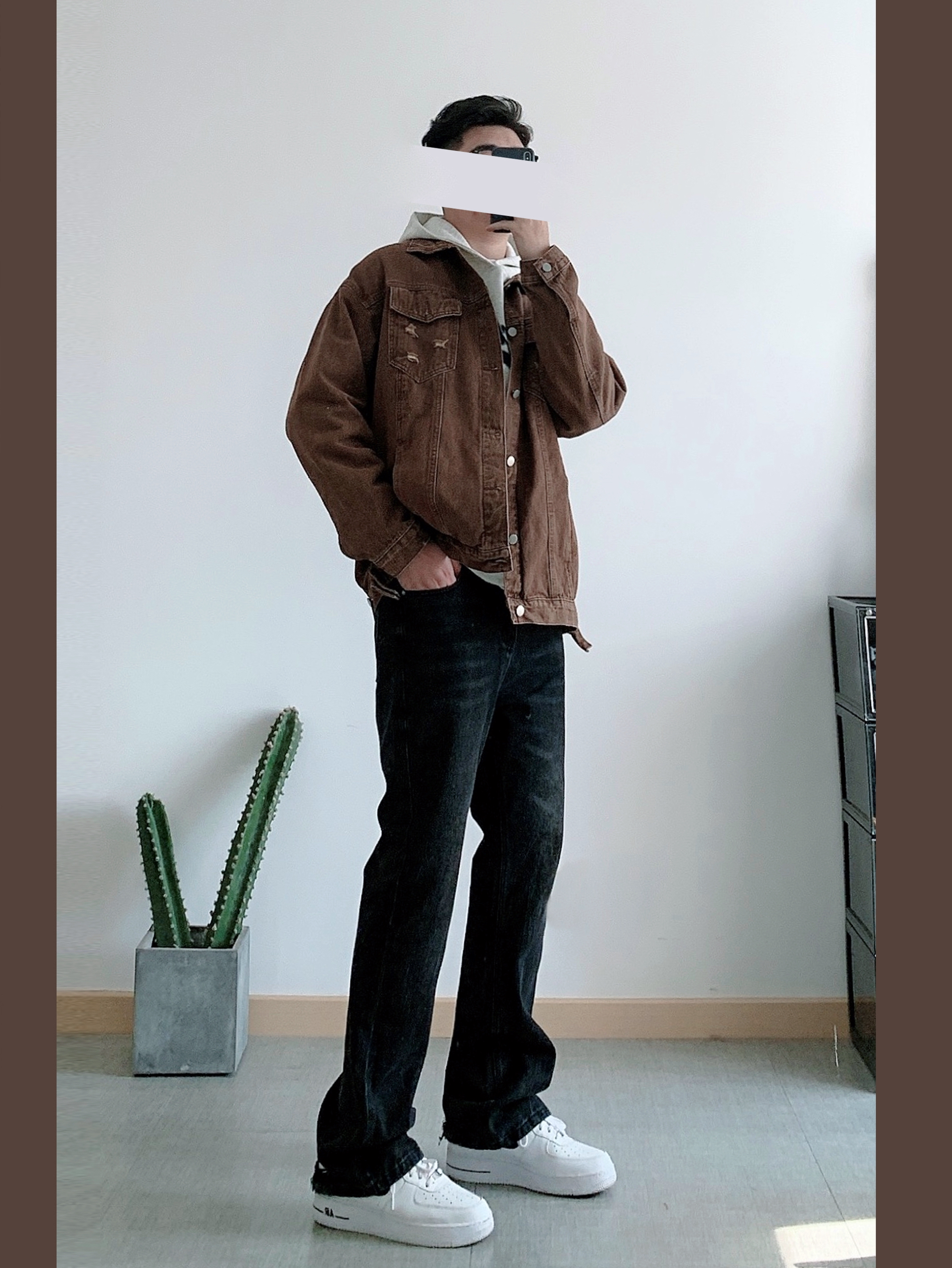 初春搭配牛仔外套确实帅! 咖色复古风 带点水洗做旧 质感满满~