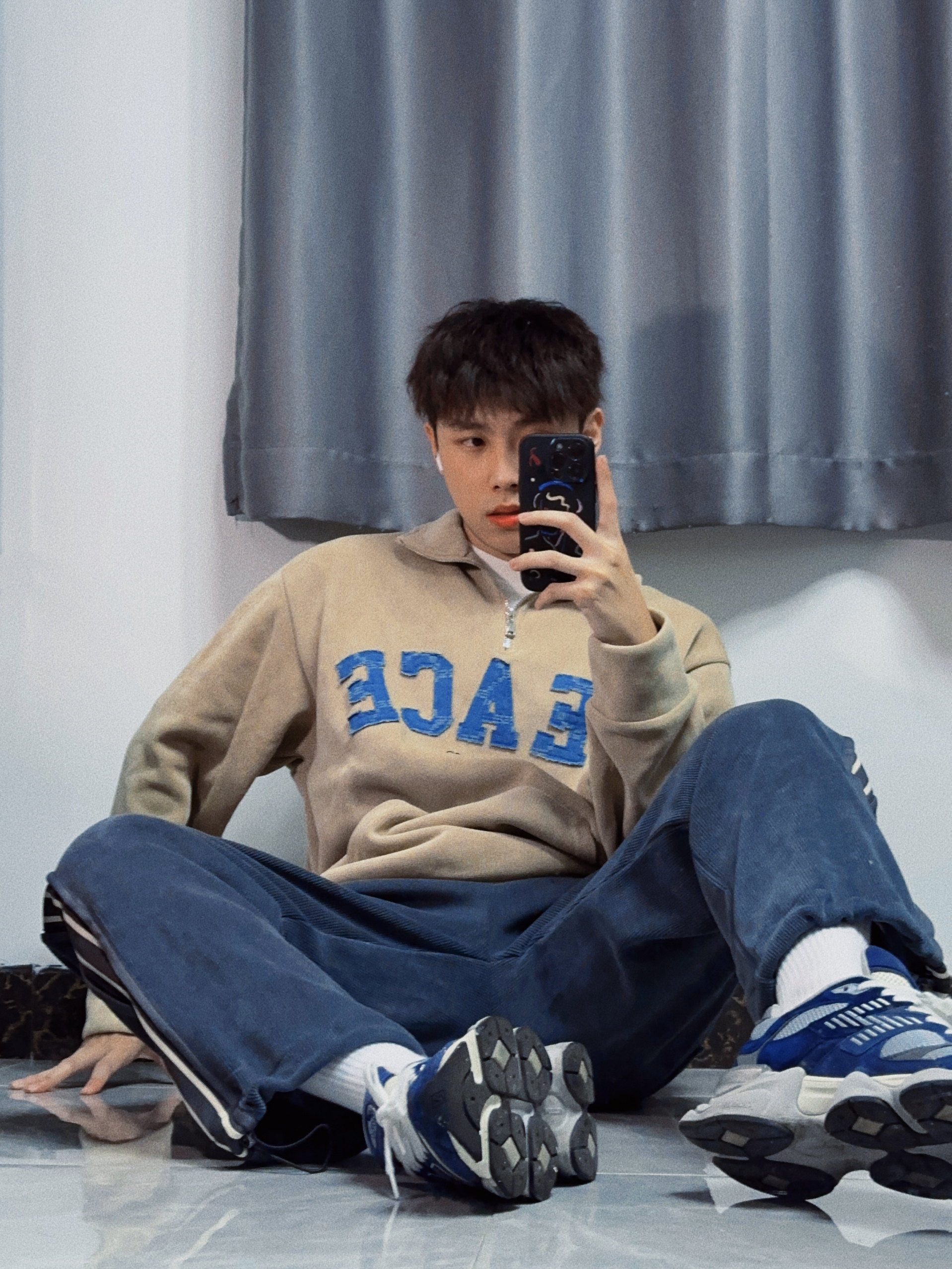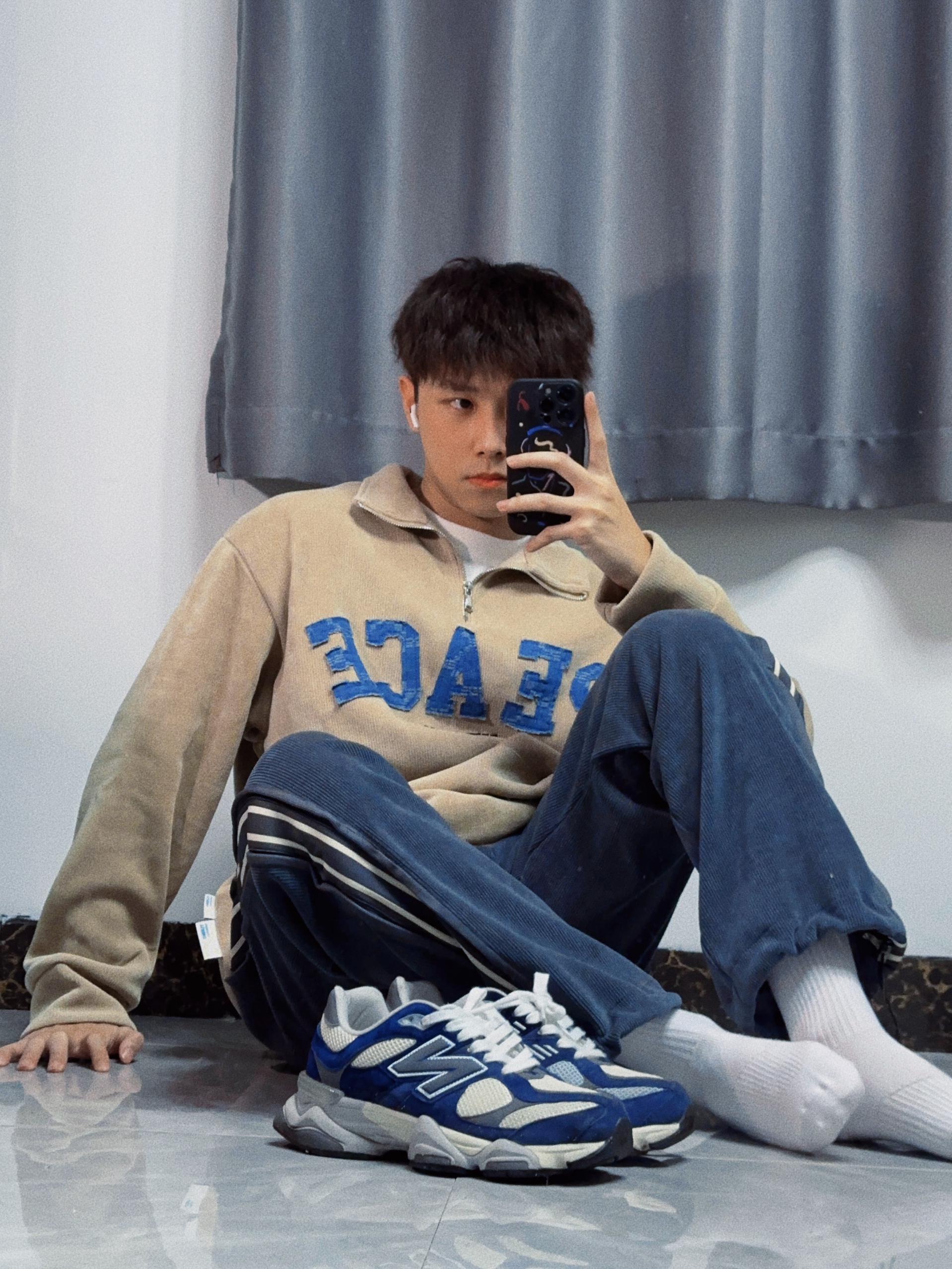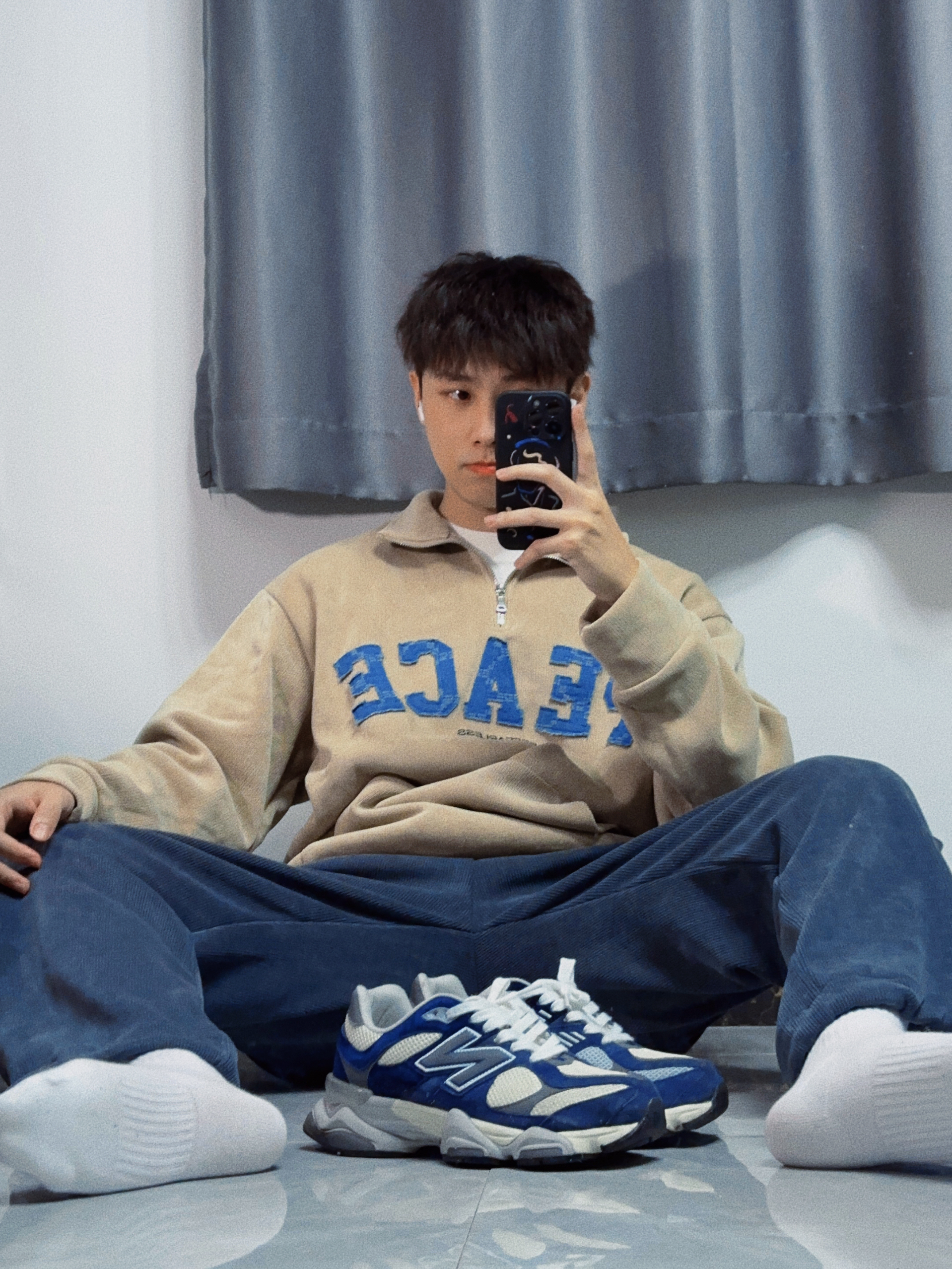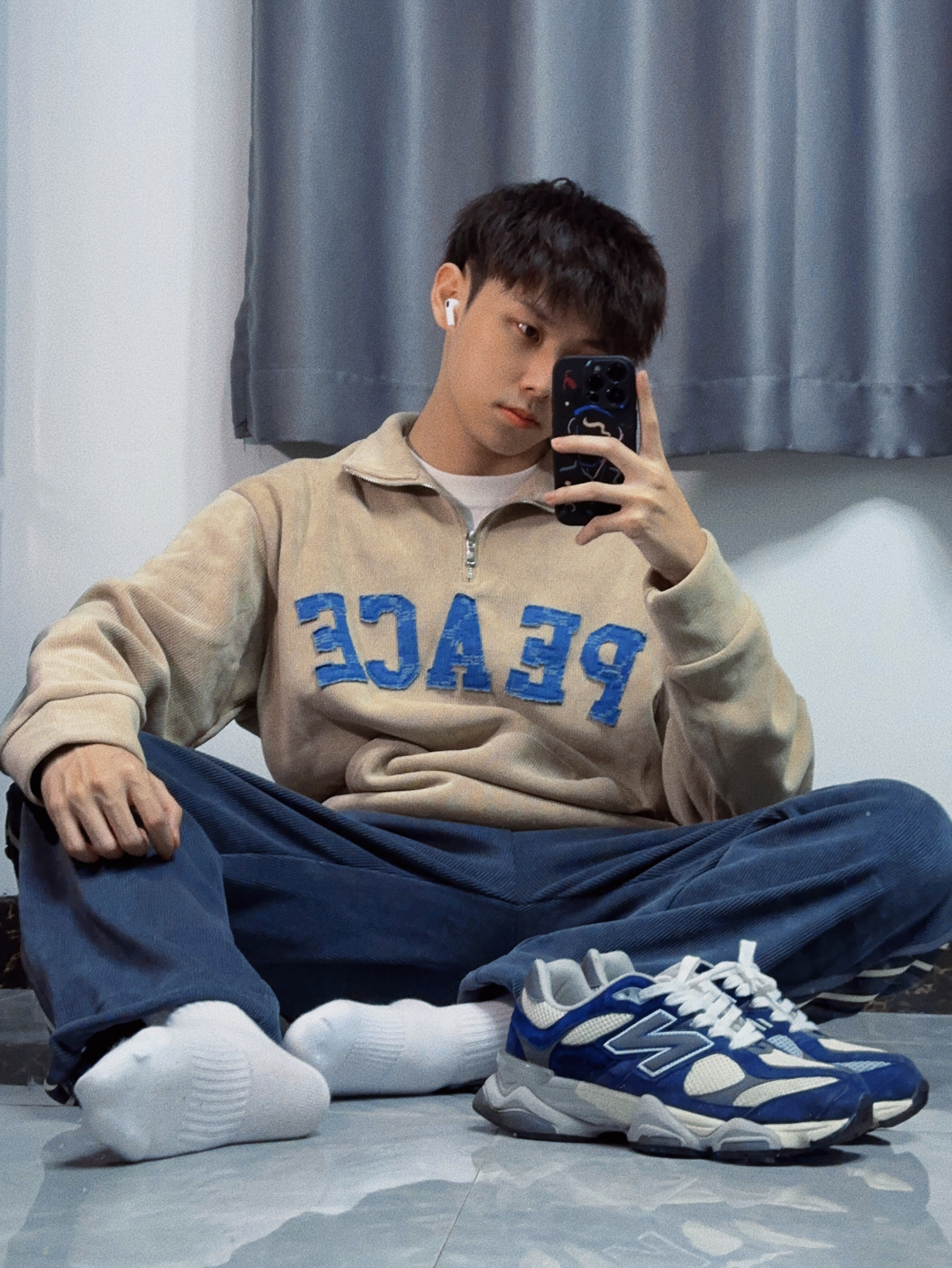 ✔️上衣:NBKY ✔️裤子:NBKY ✔️袜子:nike ✔️鞋子:new balance 9060 —— 🥰这是我新年新战衣!上身很休闲,很好看。 🥰泥黄色卫衣搭配蓝色大logo印花,高级又耐看,上身妥妥潮男,搭配蓝色系裤子,看起来像是牛仔裤,实际上是很舒服的运动裤,给人邻家大男孩的感觉~整一套偏莫兰迪色系,高级不老气~ 🥰新年你们都买了什么新衣服啊