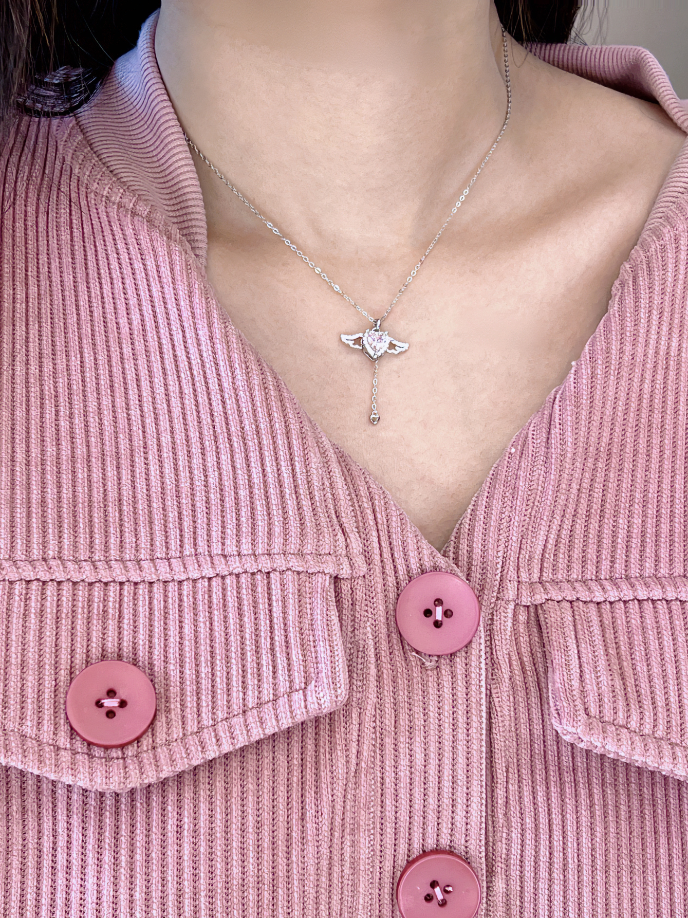 💎:ZEGL怦然心动甜美少女项链 ⭐️来分享一下今日份的穿搭吧,今天穿的粉粉嫩嫩十分少女可爱,很适合情人节约会的甜妹穿搭,配饰更加甜,带了让人一眼心动的爱心项链~ ⭐️粉色的爱心宝石,两边还有小翅膀,下面坠着长长的流苏,十分精致,情人节礼物必须有它,或者和闺蜜一起带,百搭又好看~