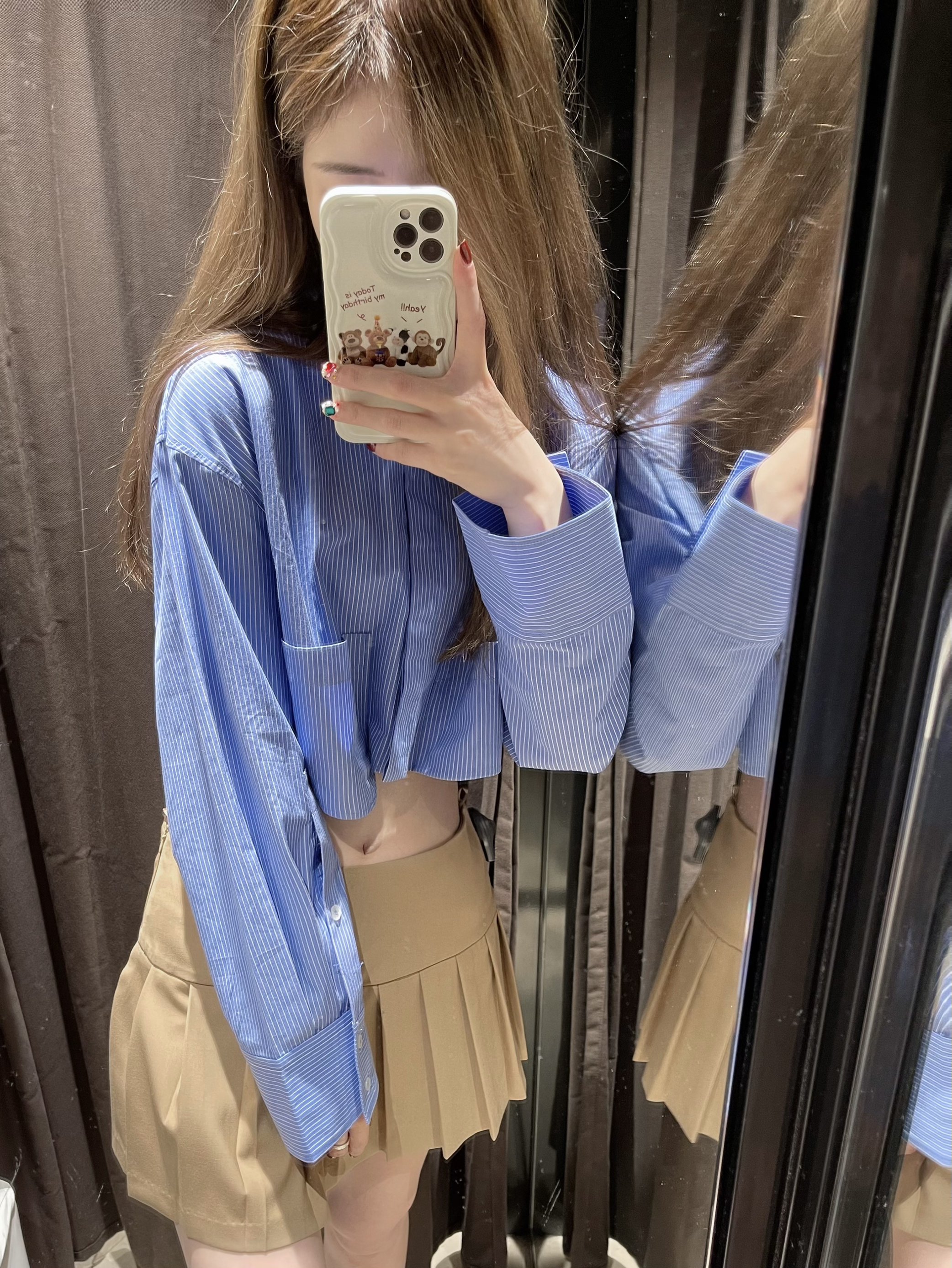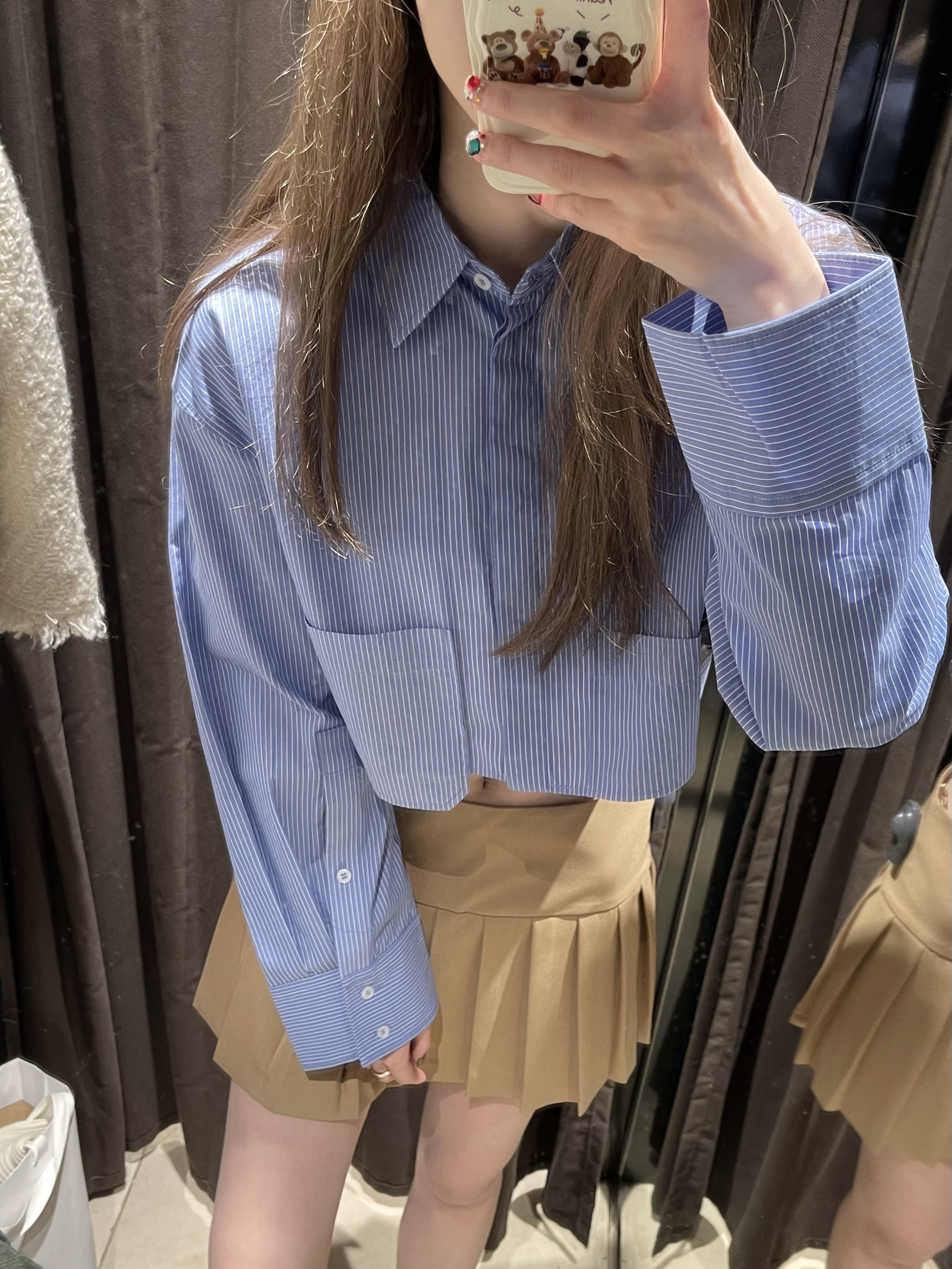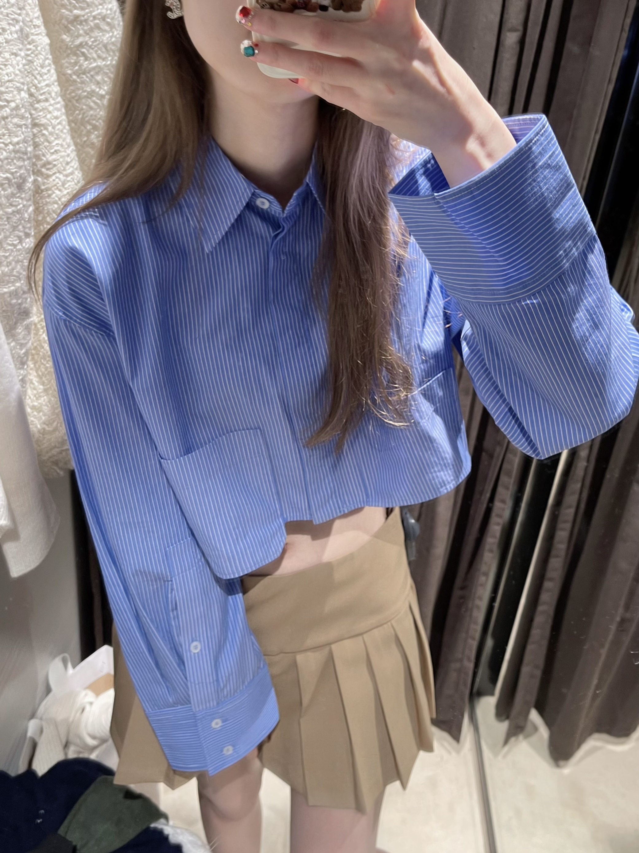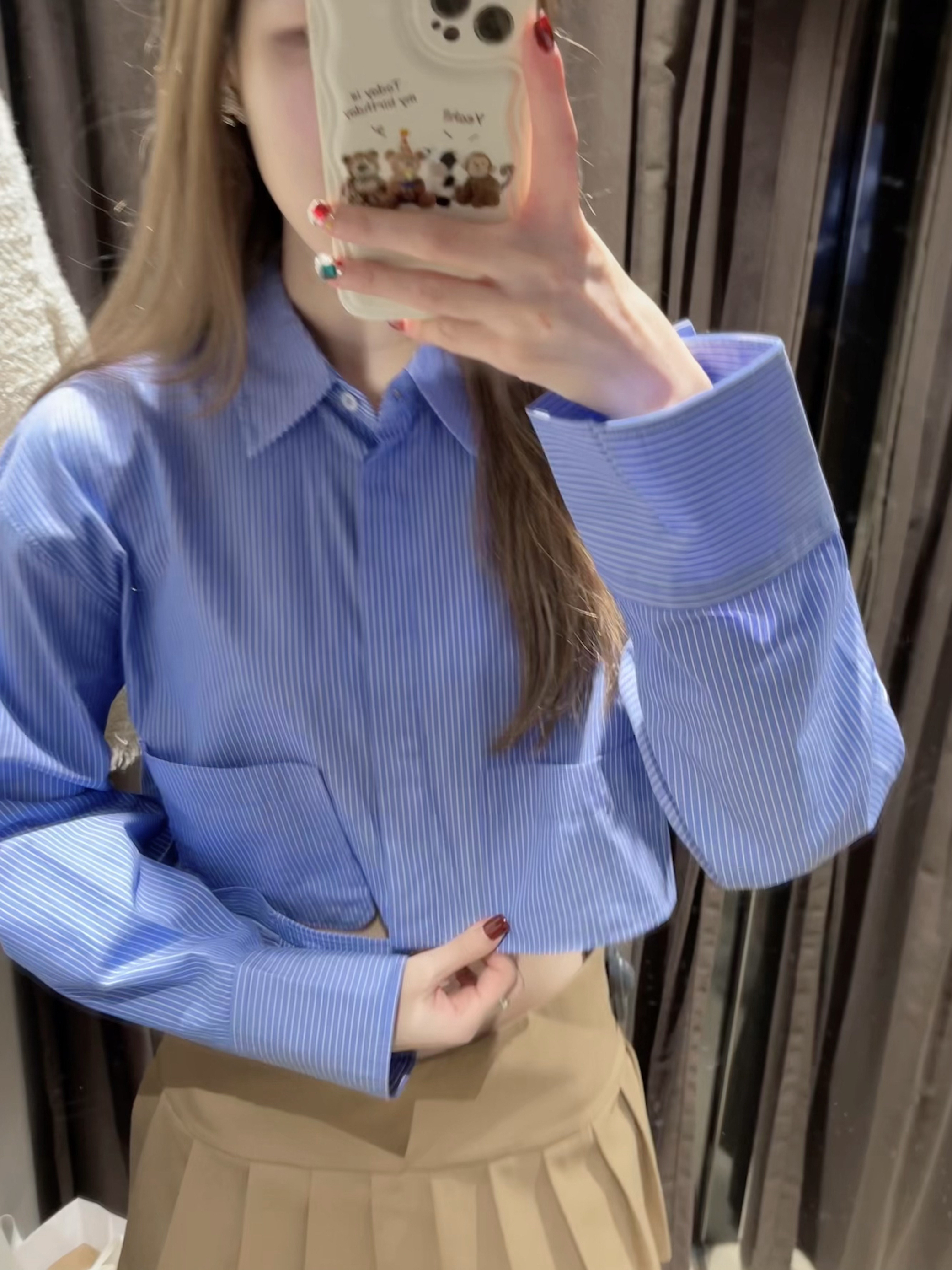 这套早春小套装元气满满,特别是短款小衬衫, 很好的拉高了身材比例,即使是条纹也完全不会死板沉 闷,蓝白两色都好喜欢。因为没有蓝色衬衫最后入手 了蓝色这件 鸭鸭|172 100 衬衫 5427/005m 短裙 7385/403 xS