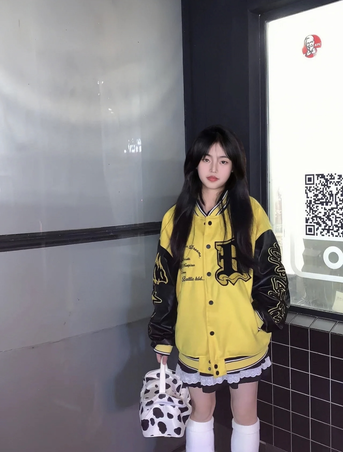 生活费1500女大学生酷酷穿搭哈哈棒球服比较有设计感亮眼的感觉 还可以配裤子短上衣拽拽姐哈哈哈哈哈情侣衣也阔以!!!拍照比较出片~袜子一般般 真实感受希望对大家有帮助 出镜:我妹