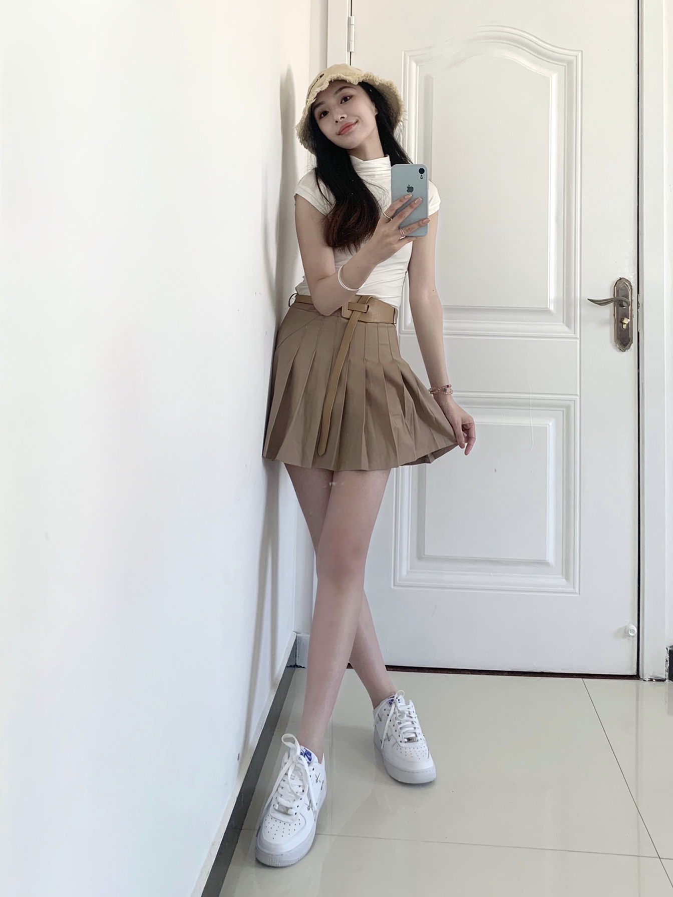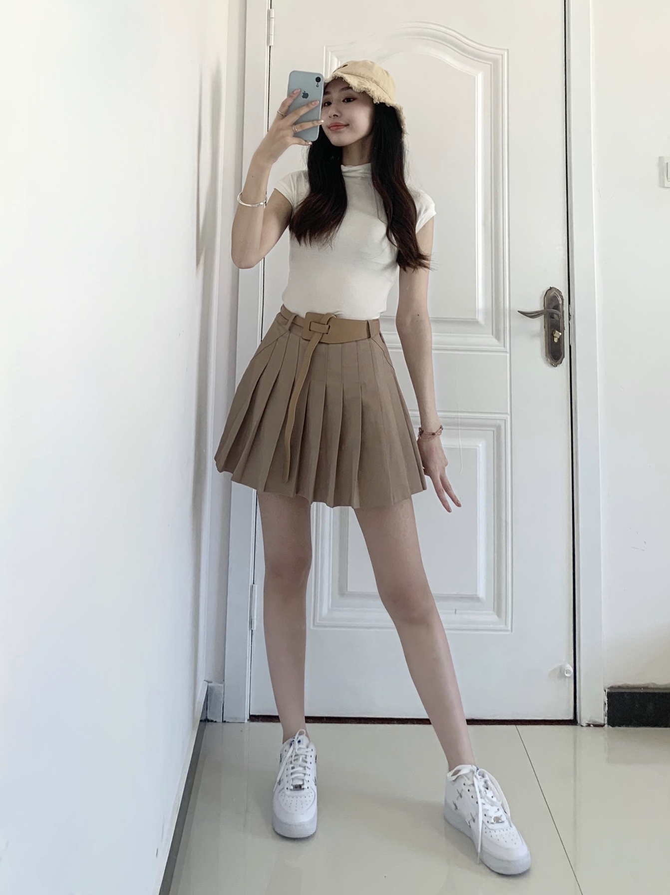 ❣乖乖甜甜的学妹穿搭!❣️ 🔎白色高领T恤 纯欲又性感 超软的布料像婴儿的衣服也非常透气 虽然现在刚刚初春 但是谁又不期待夏天呢? 🔎驼色百褶裙就是甜妹的必备单品!这个颜色最百搭了 学生们选衣服一定以百搭为前提去选 百褶裙搭配体恤 卫衣 等等都非常精彩~ 🔎蔻斯琦的足银手镯非常漂亮 两个环很有设计感 情人节送女友非常合适 一个是素圈 一个是字母印花两个圈叠在一起显得手腕 很纤细 修长 百元...