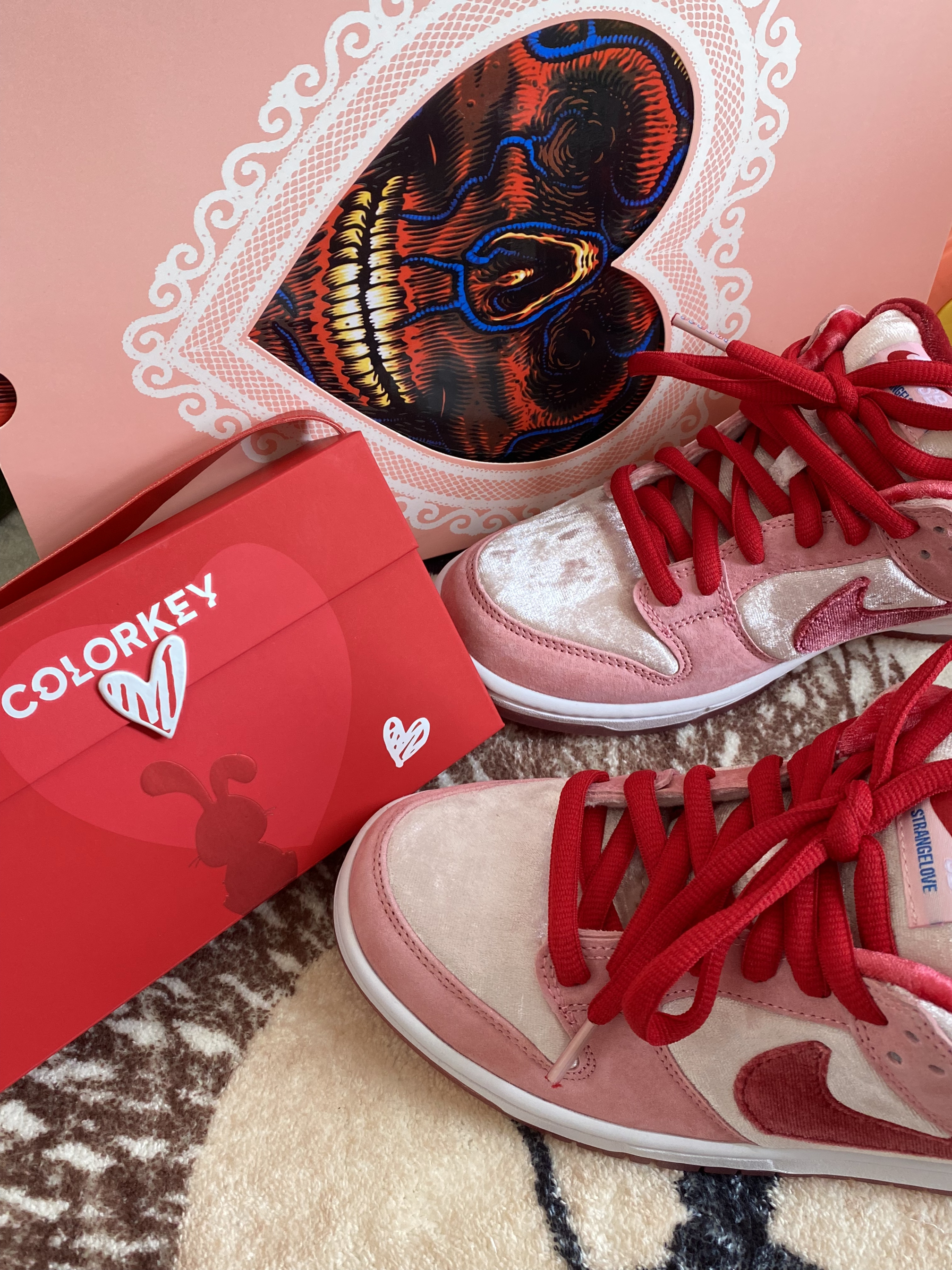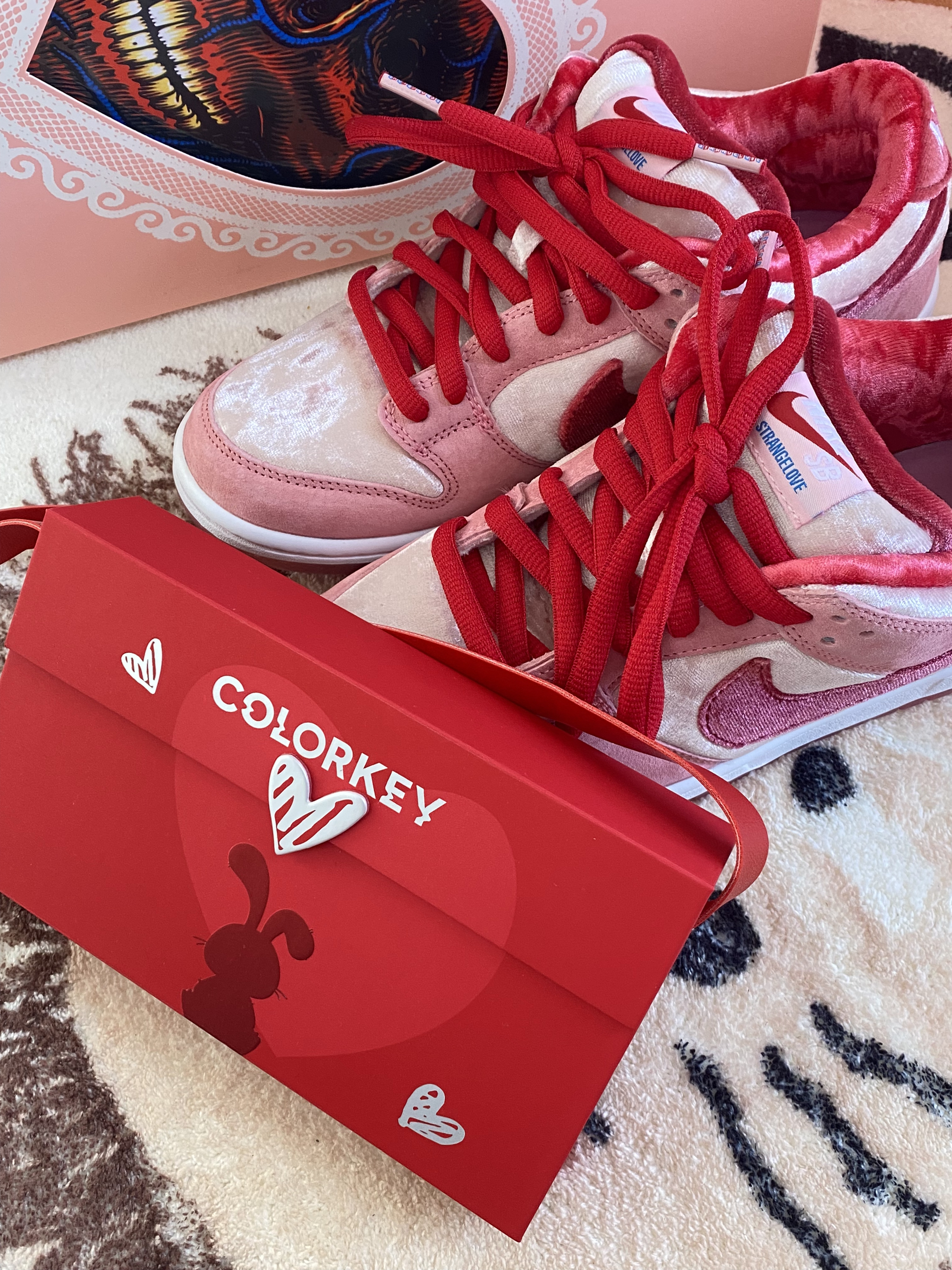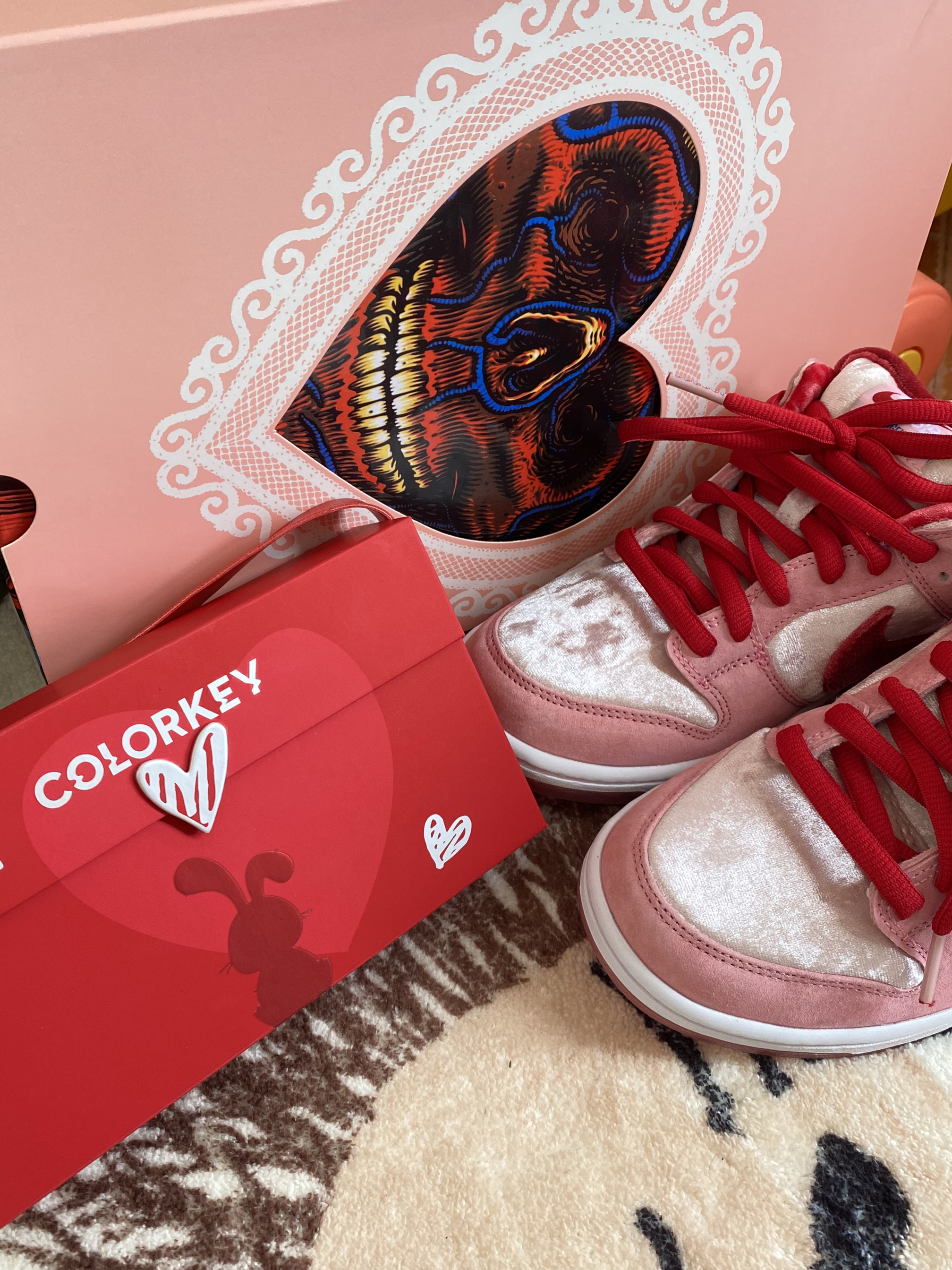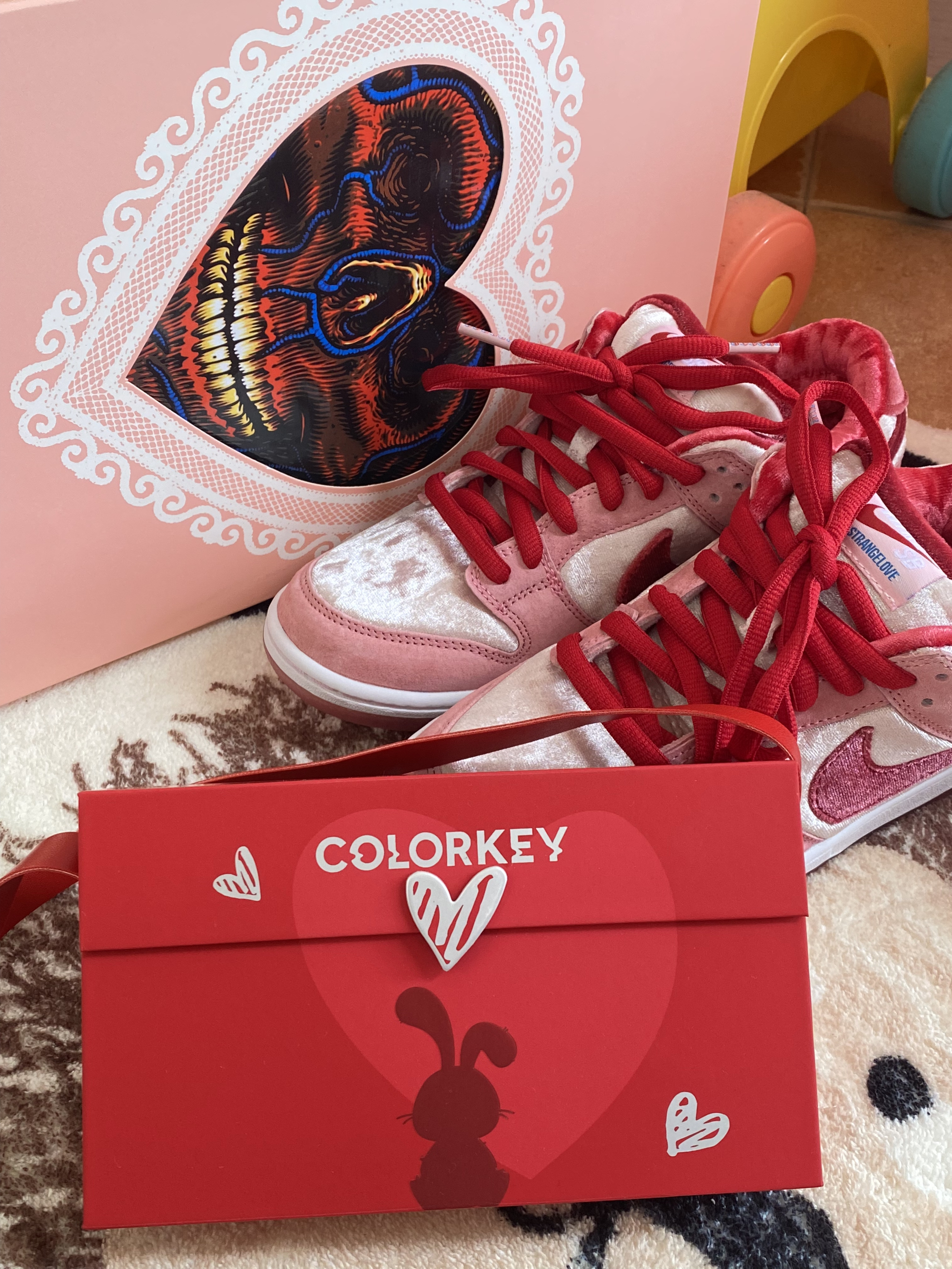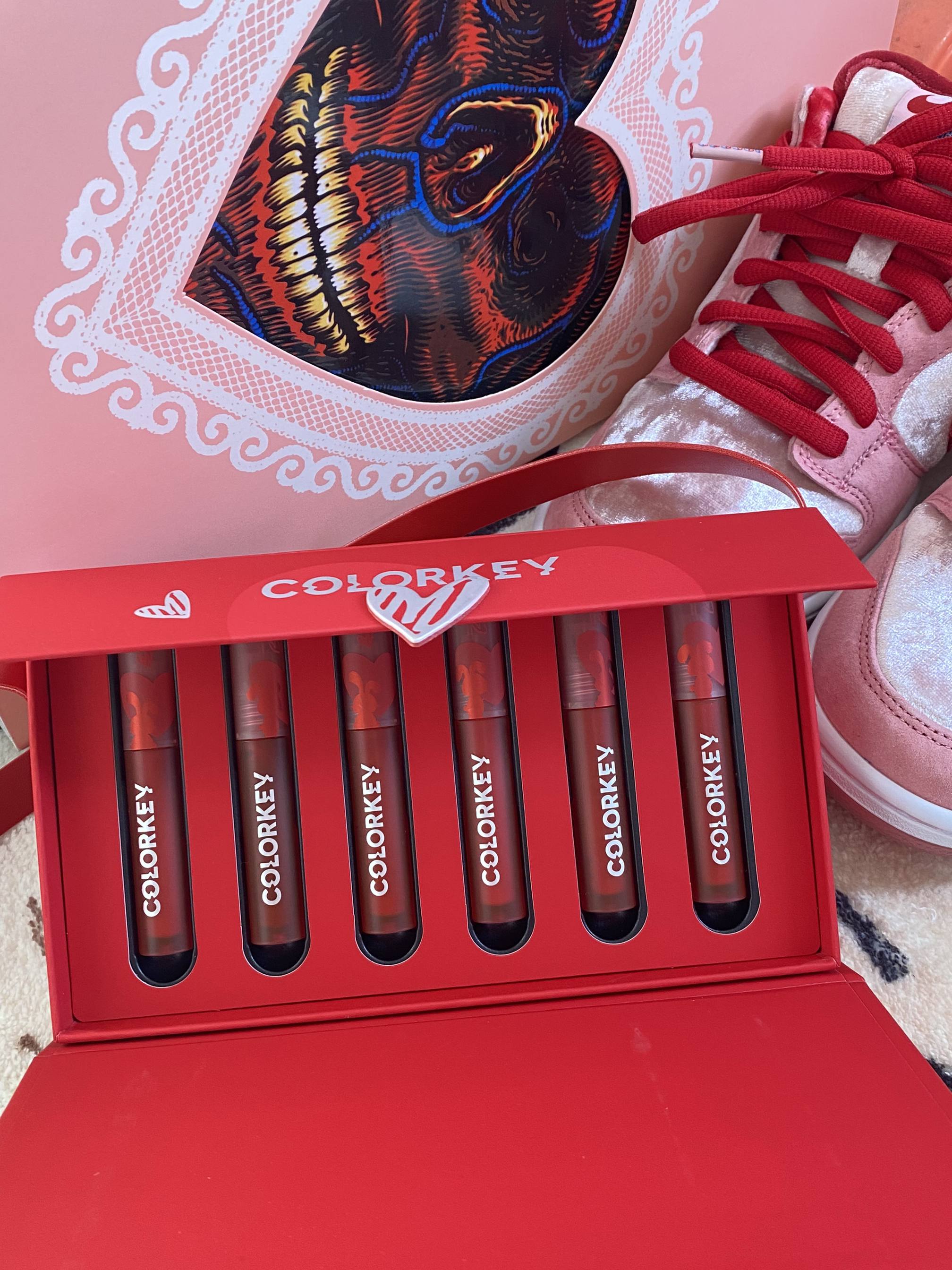 收到了男朋友送的珂拉琪兔年限定心愿🐰礼盒和Nike Dunk情人节限定! 唇釉都是mini版的小小的超可爱☺️! 颜色感觉都不会踩雷!属于日常都可以涂的~ 一共有六支!三支哑光三支镜面! 我更喜欢哑光的三支!颜色真的太好看啦! P221我真的很喜欢!温温柔柔的杏粉肉桂色🥰 🧧小巧的礼盒新年送人真的超级合适! 💗Nike Dunk 情人节限定真的好少女喔!白粉丝绒的质感好好!怎么搭都好...