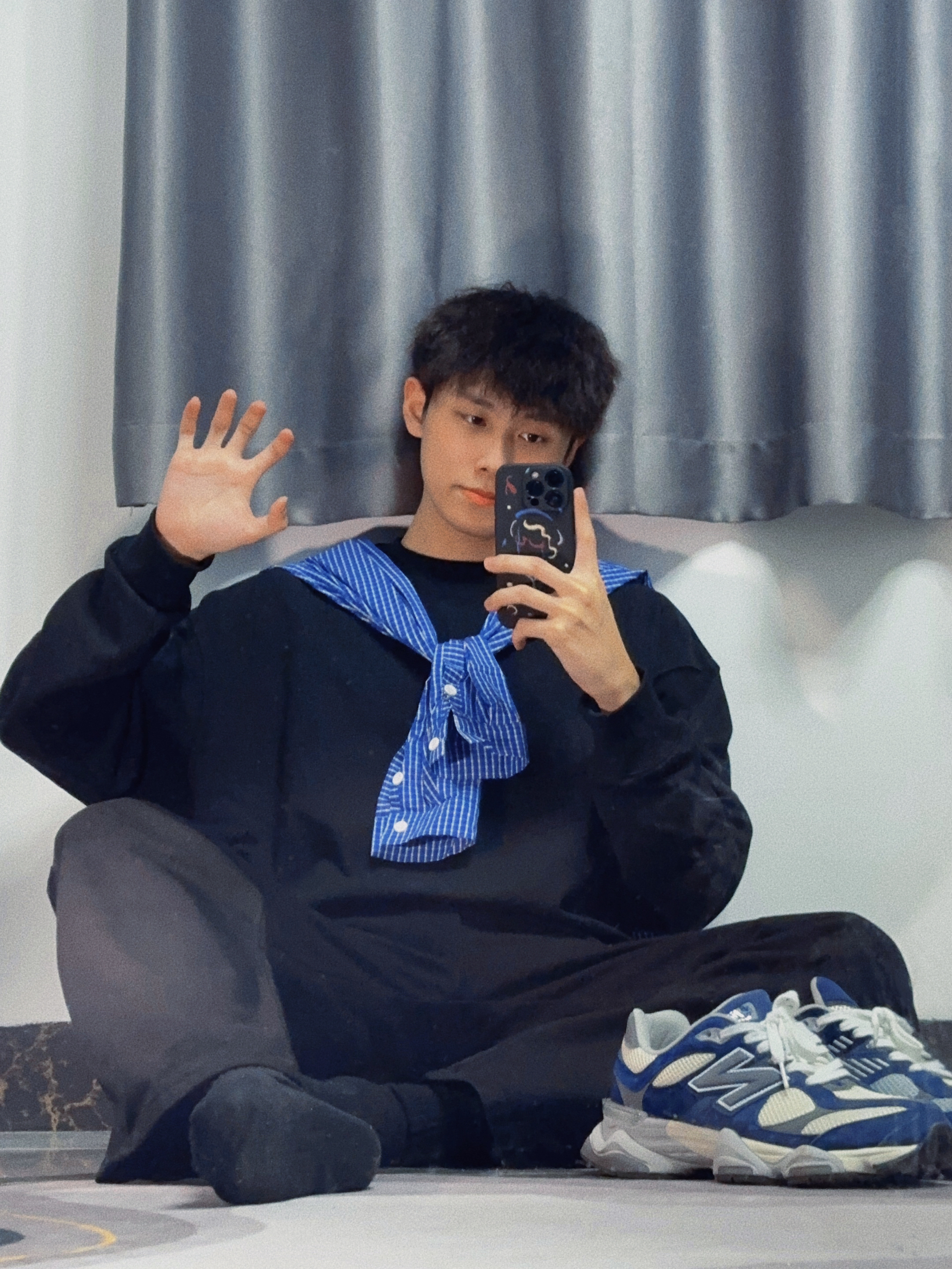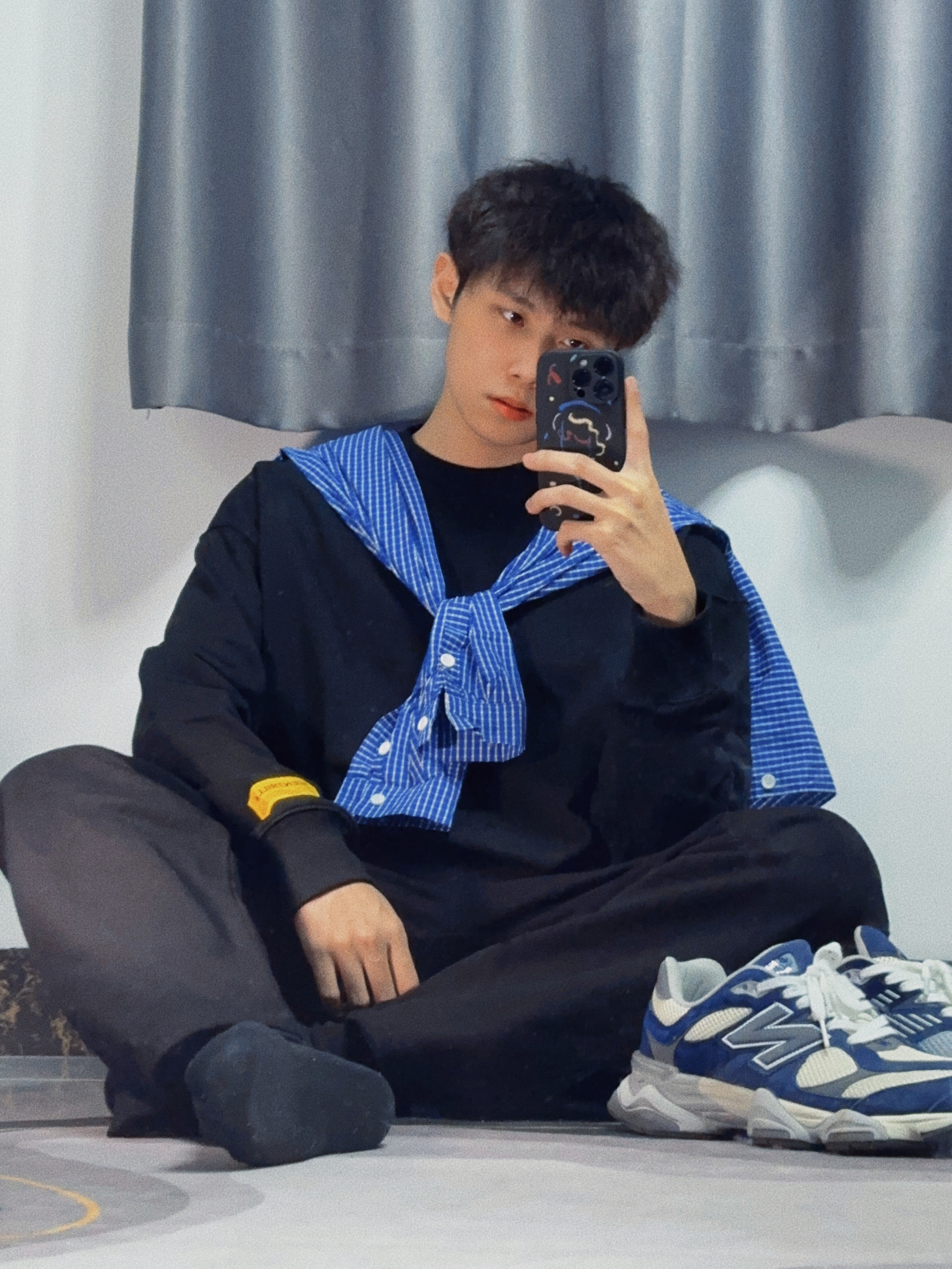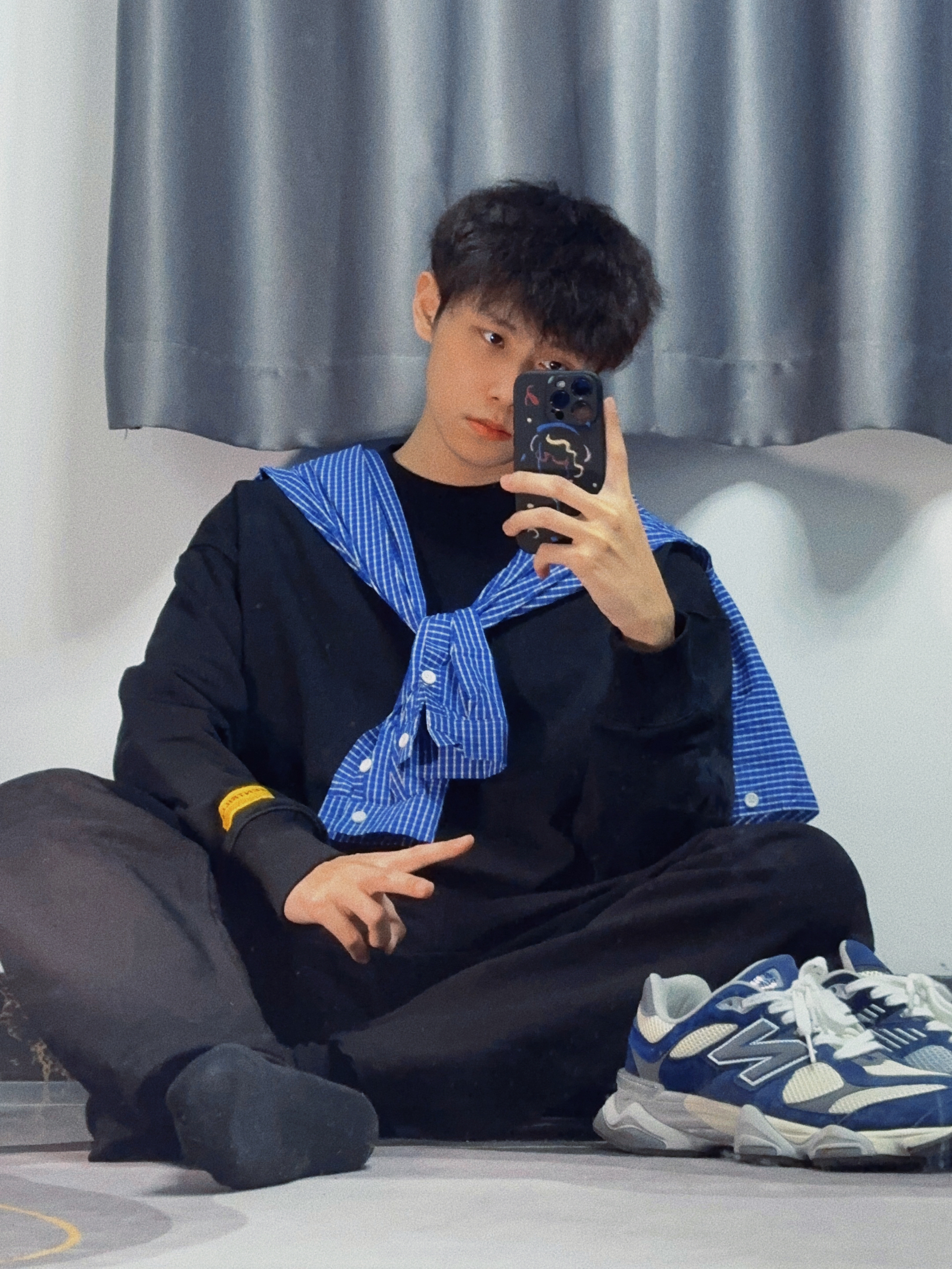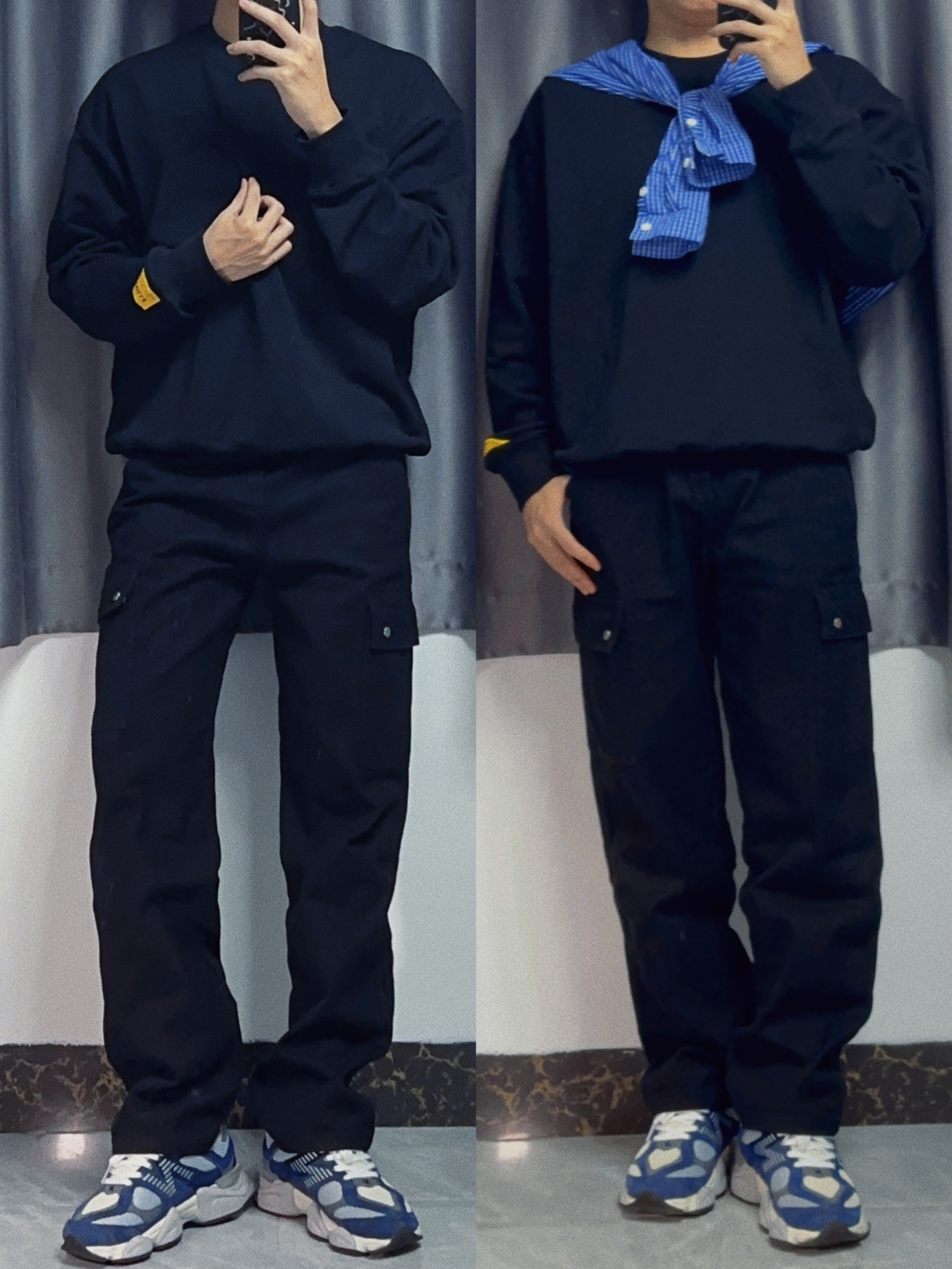 ✔️上衣:BEENTRILL-KR ✔️裤子:FTFW ✔️衬衫:hzone ✔️袜子:佐印 ✔️鞋子:new balance —— 🚎黑色系穿搭,上衣亮点在背标~很有调性哈,搭配黑色直筒长裤,裤子还有两个大口袋,有点点美式风格,搭配起来不会太单调,而且很修饰腿型 🚎全黑色系就要搭点亮眼的叠穿啦,蓝色格子长袖衬衫当披肩非常不错哦