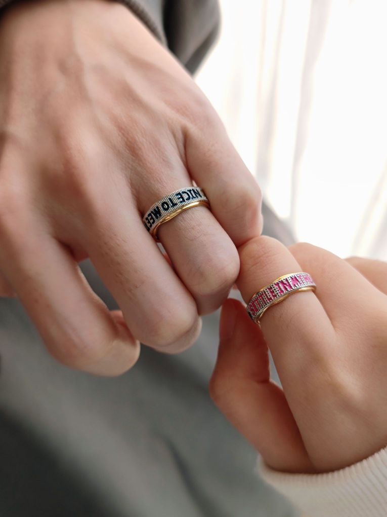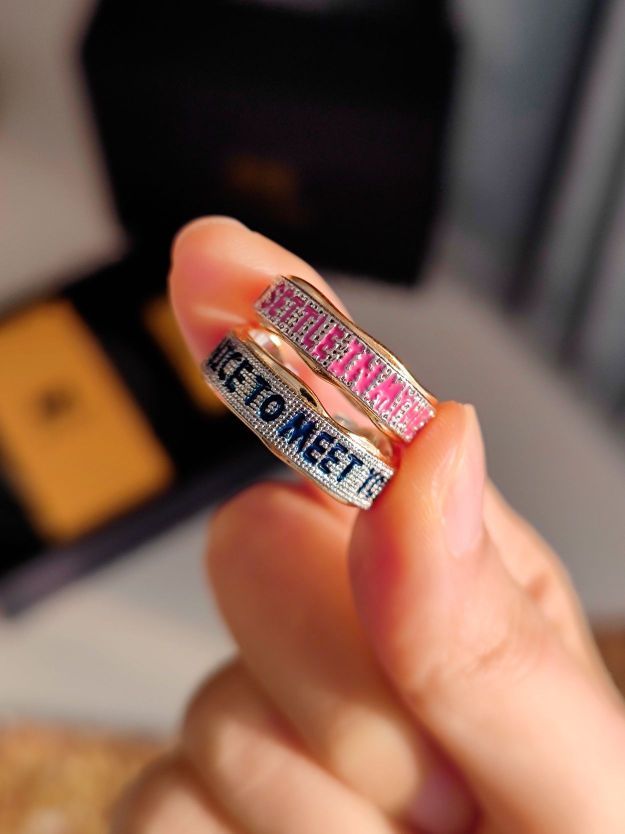👫来撒狗粮啦! 二月是我的幸运月, 而且马上又是甜蜜的214情人节❤️, 所以要和男朋友拍情侣照呀~ 相片可以记录📸恋爱中点点滴滴的小幸福, 太甜咯~ 新买了一款魔吻对戒, 从包装到戒指细节都满满的✨精致感, 开口戒指还不担心尺寸不好戴, 很适合做表白礼物! 👦🏻男戒上是:Nice to meet you 👧🏻女戒上是:Settle in my heart 翻译过来就是“一见钟情,久居我心” 真...