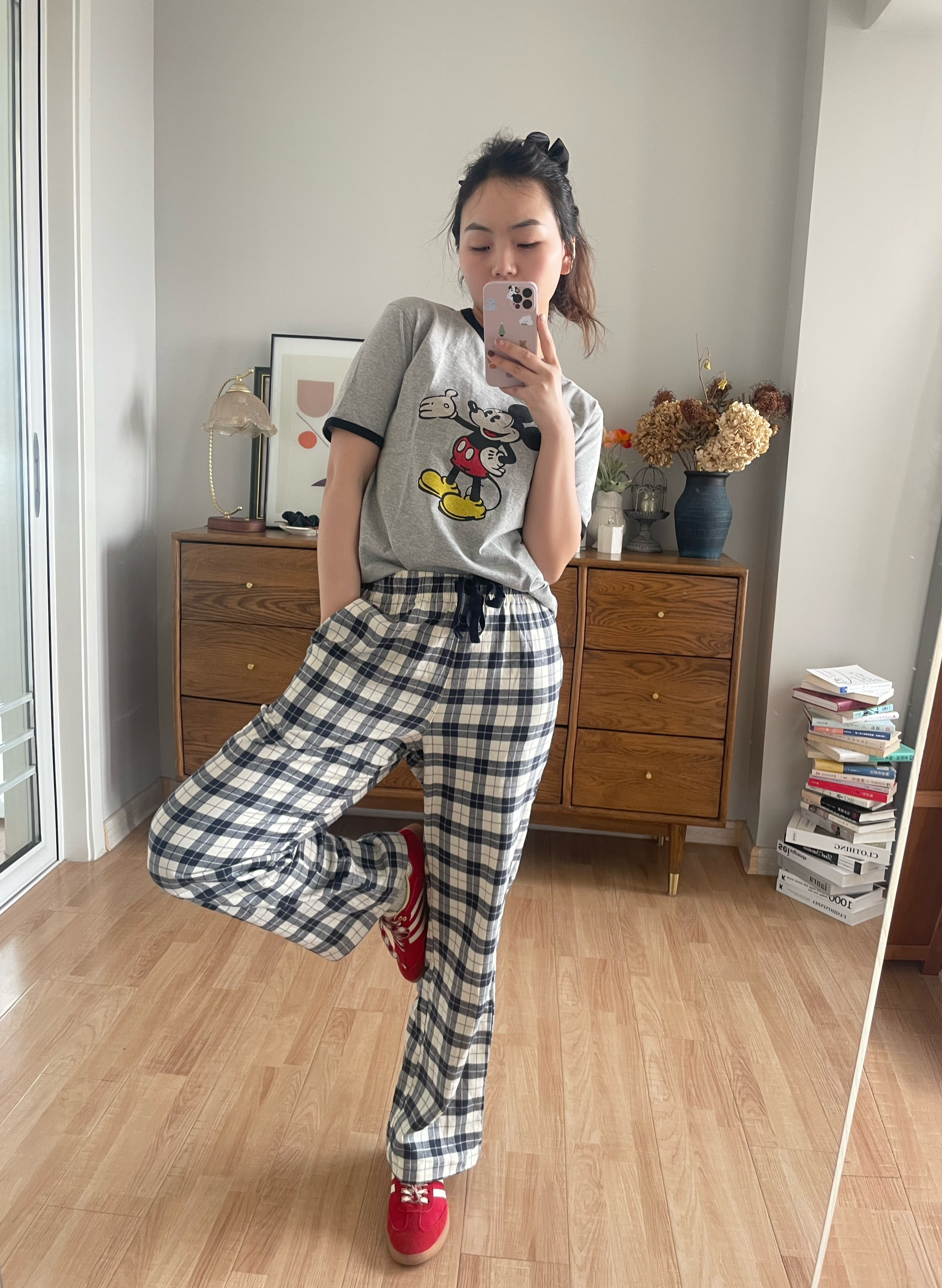 最近购入了很多优衣库 薅羊毛太开心啦 优衣库灰色米色联名T 复古感十足 搭配优衣库格纹家居裤 慵懒风拿捏住🫴 短袖:优衣库 454494 格纹裤:优衣库 449736