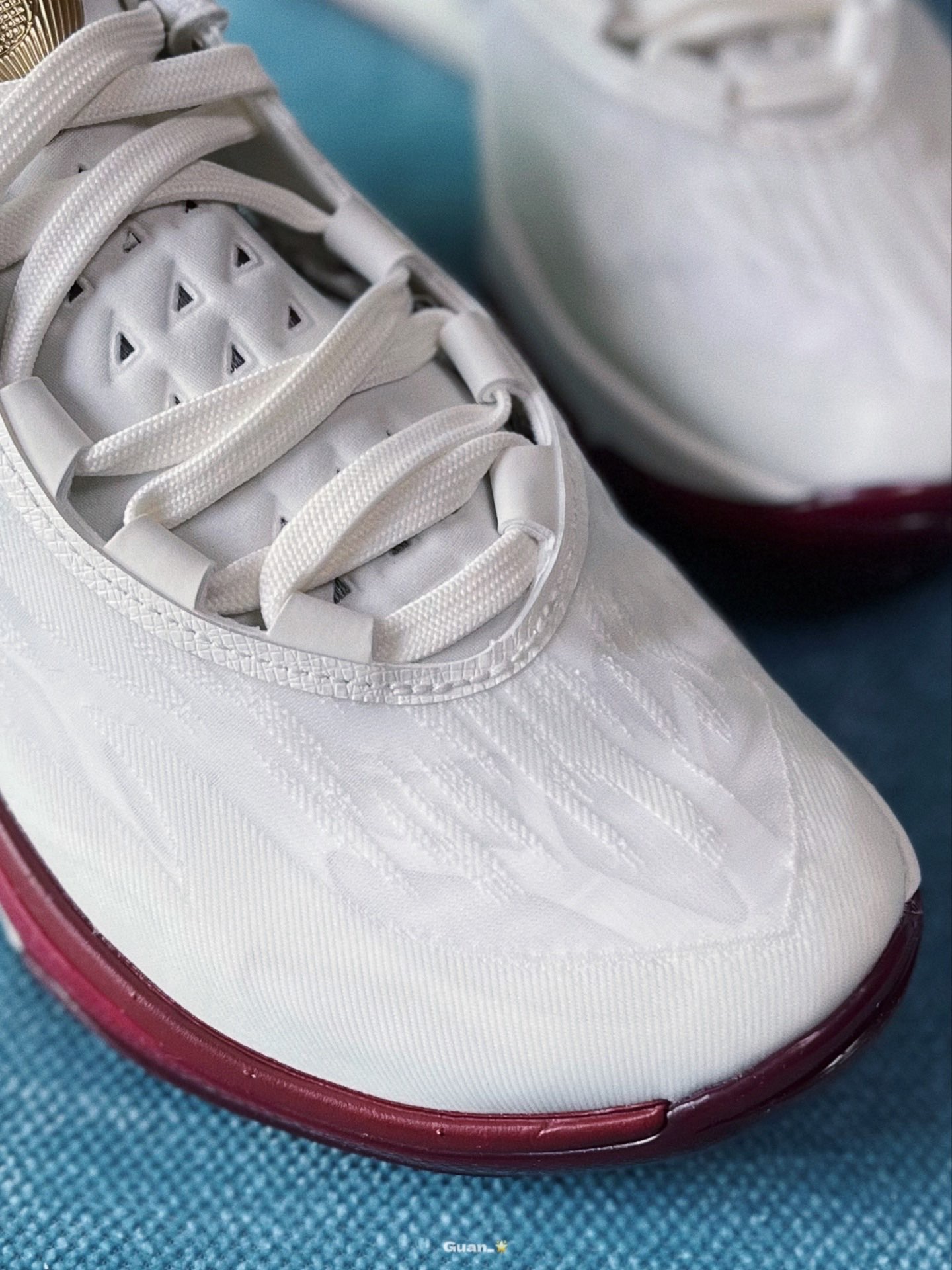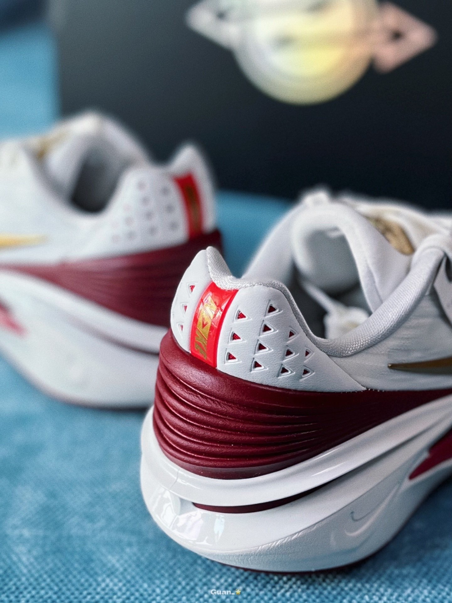 ~GT cut2又出新配色了! 这次是非常好看的红白金钢铁侠配色 鞋子以大面积白色为主 网纱编织鞋面减重效果明显 金色部分光泽闪耀 非常好看!