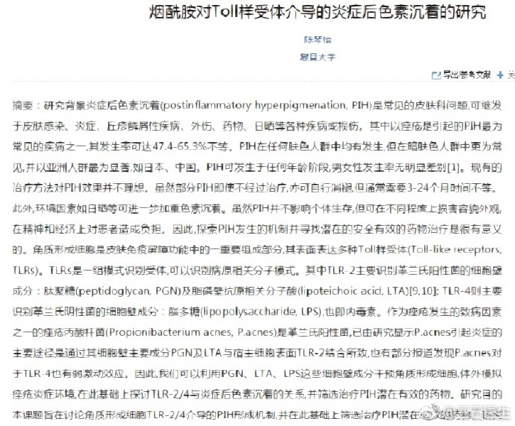 烟酰胺不能美白!!!口服烟酰胺最大的功效是祛色沉和对皮肤屏障的改善(图三),尤其是对有口服异维A酸,使用维A酸、他扎罗汀涂抹类制剂的人群尤为合适,但临床偏少,目前都是国内的项蕾红教授和赖维教授在进行研究(图四至图六)