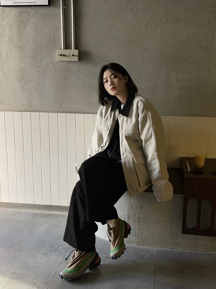 今日份是盐系女孩穿搭 酷酷的工装休闲风~ 爱啦 外套/Stussy 卫衣/Spelledit 鞋子/MM6 x Salomon