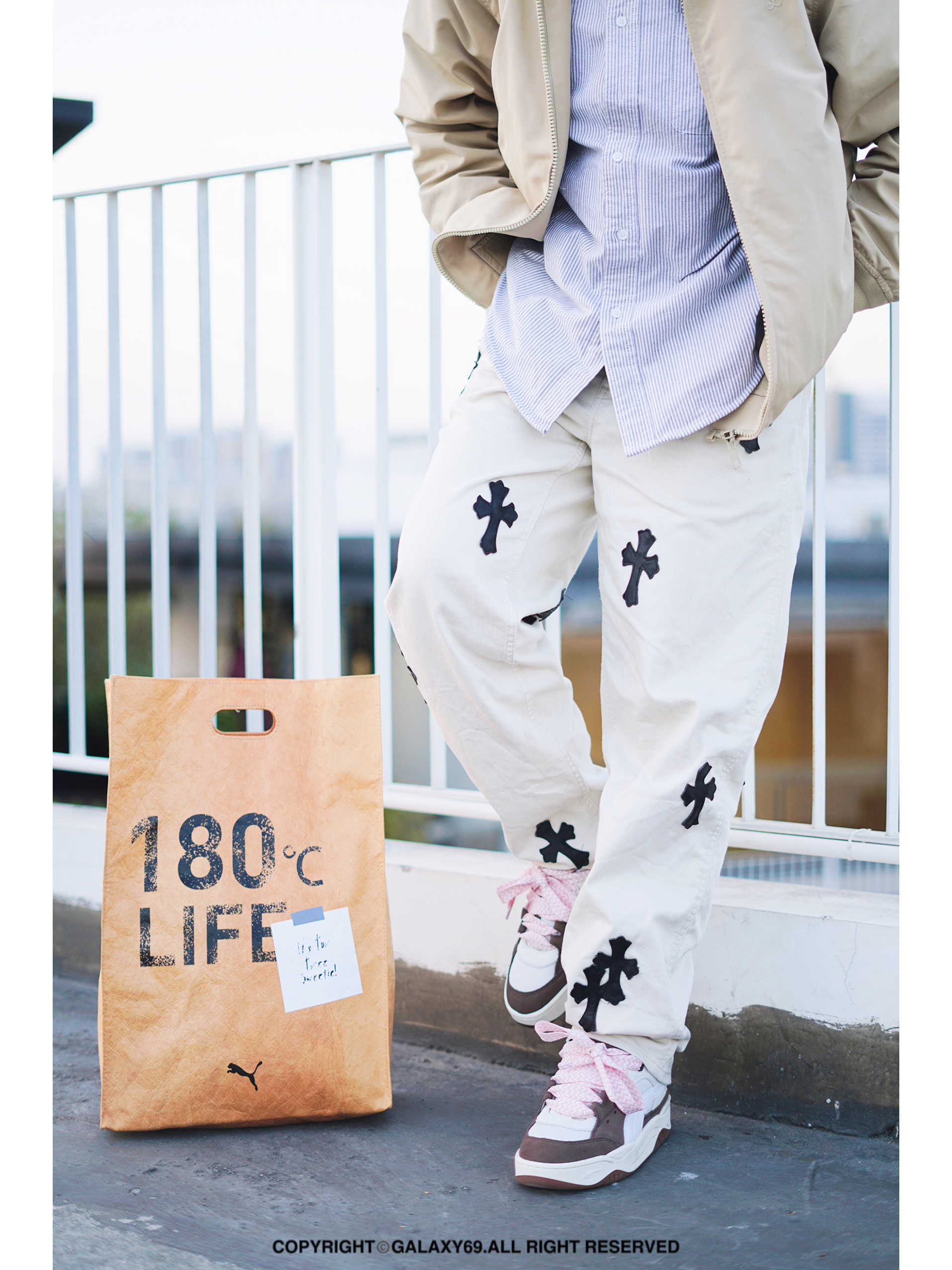 很多人会觉得黑色很百搭,的确。但是不能掉栗子色系也就是大地色系。利用不同深浅的栗子色来穿搭,百搭不挑人。 - 晴天来了,气温回暖不少,哈灵顿立领夹克是近期的热门搭配,内搭长款衬衫,层次感设计满满 裤子是上镜很多次的Remake之后的工装牛仔裤 鞋子是我新的宠儿PUMA180,棕色与白色拼接,整个外观都很时尚高级,做工相当细腻,90年代滑板鞋复古感满满,厚实的内里包裹感舒适。